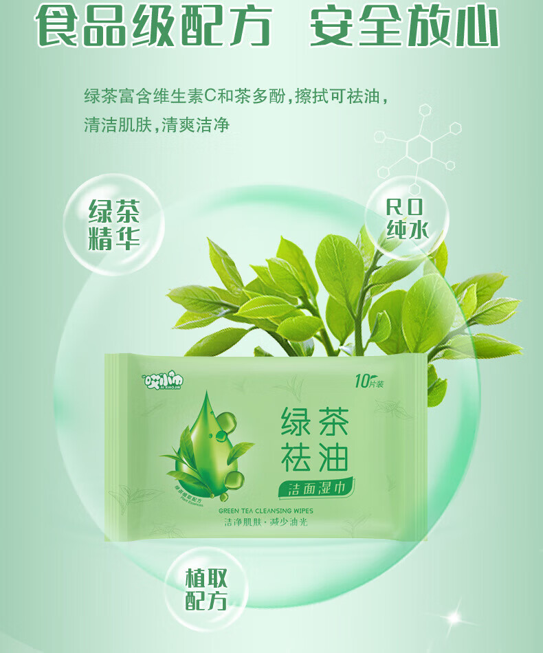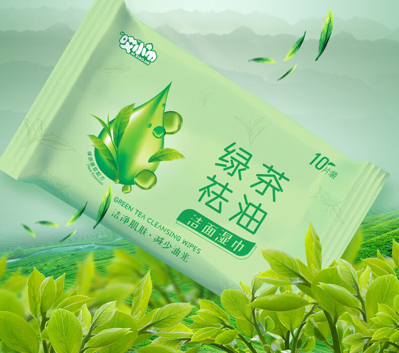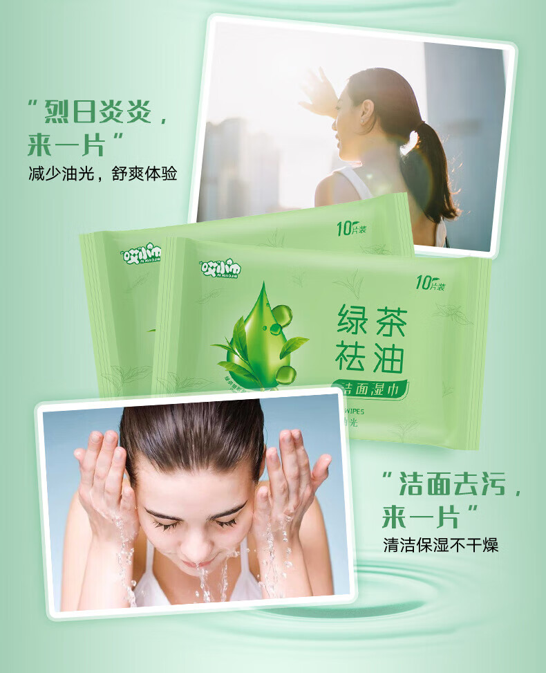 绿茶湿纸巾擦脸去油男女清凉洁面湿巾旅游学生军训免洗便携装随身 清凉湿巾-绿茶味-1片装