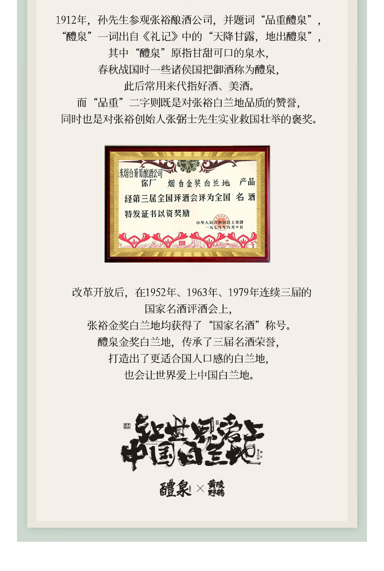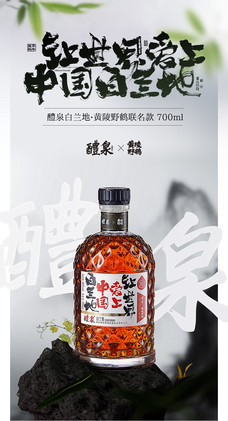 张裕醴泉金奖白兰地 单支礼盒装700ml 黄陵野鹤联名款 洋酒葡萄蒸馏酒 700mL 1瓶