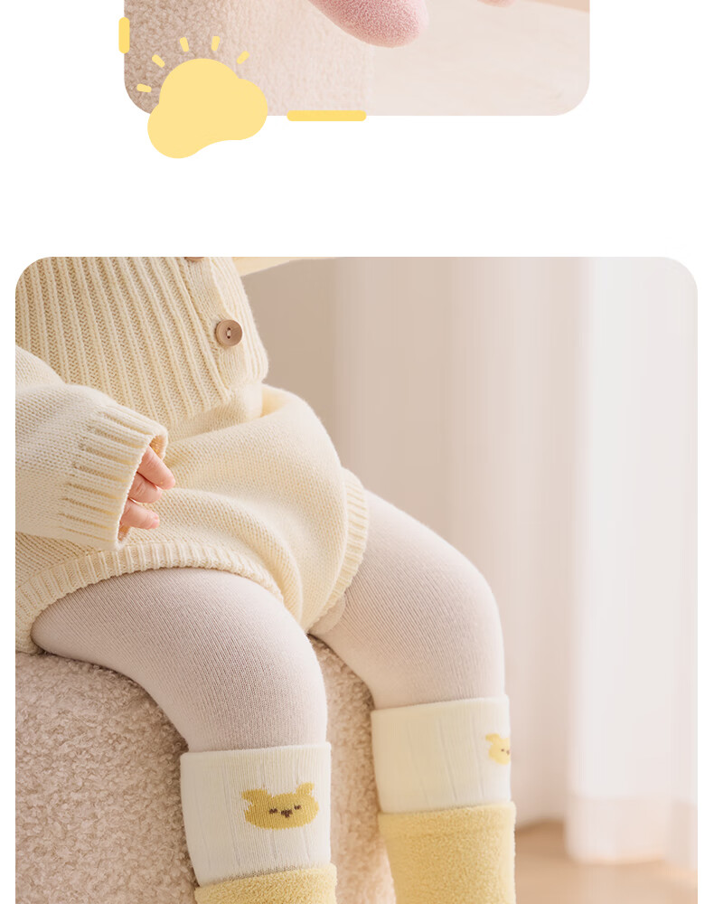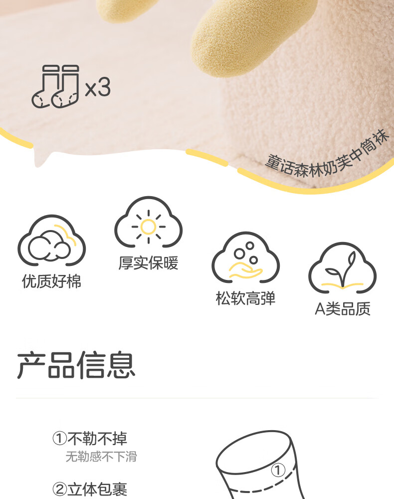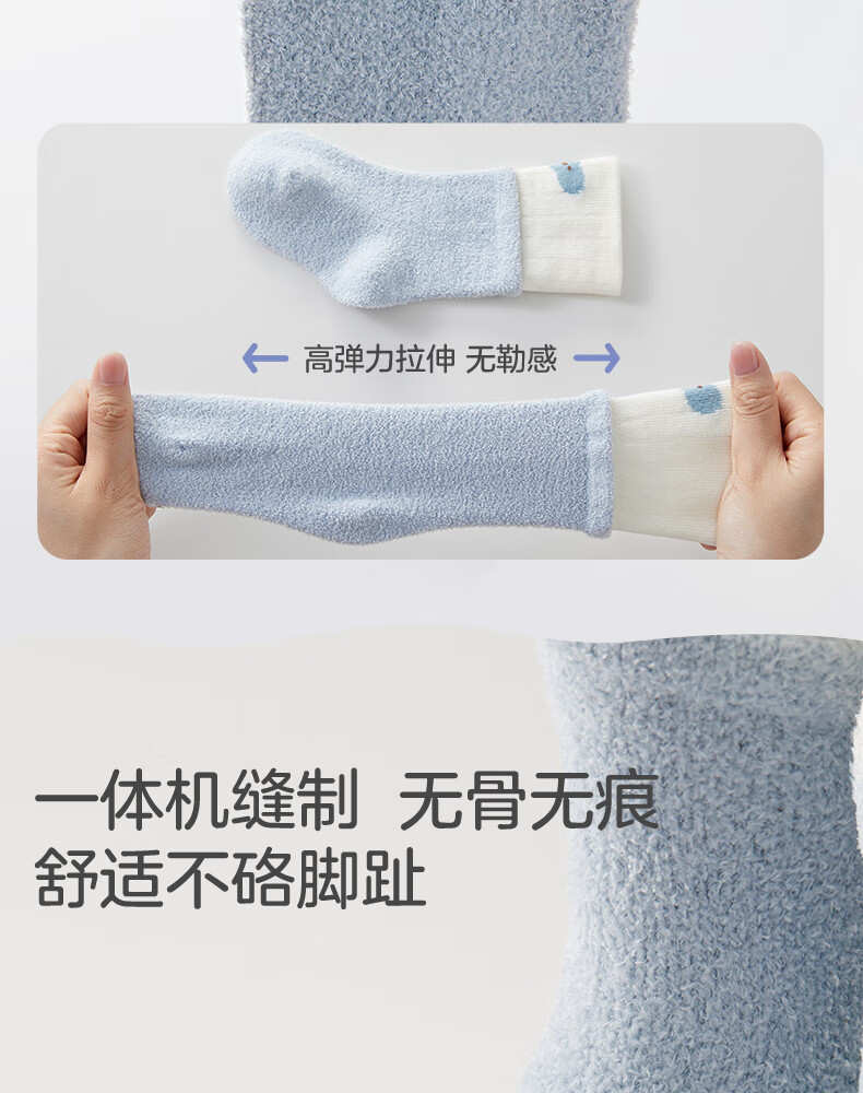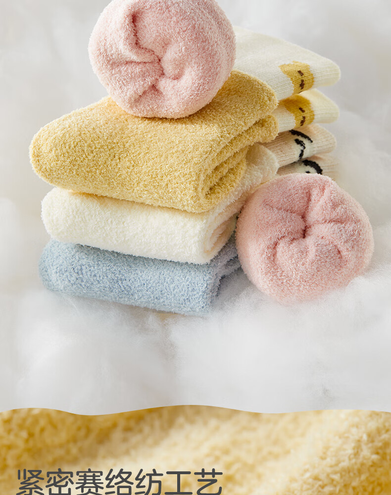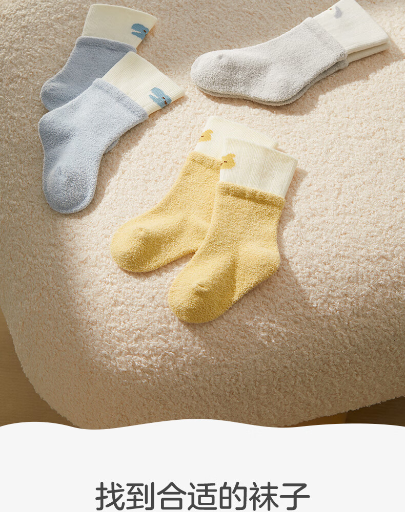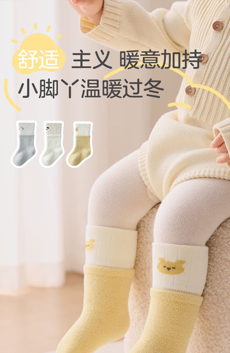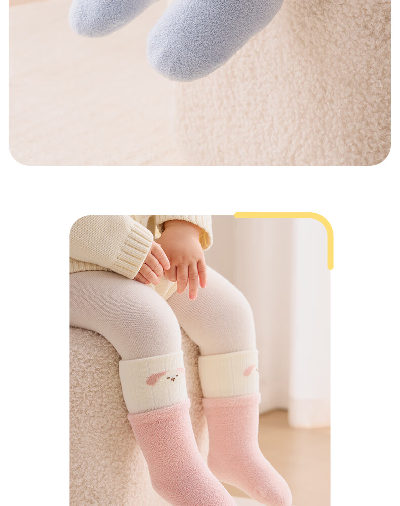 十月结晶粒粒阳光婴儿加厚保暖儿童中长筒袜3双袜子长袜儿童袜子秋冬鞋袜 粉嘟小兔 6-12月