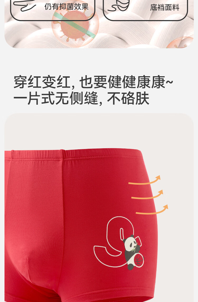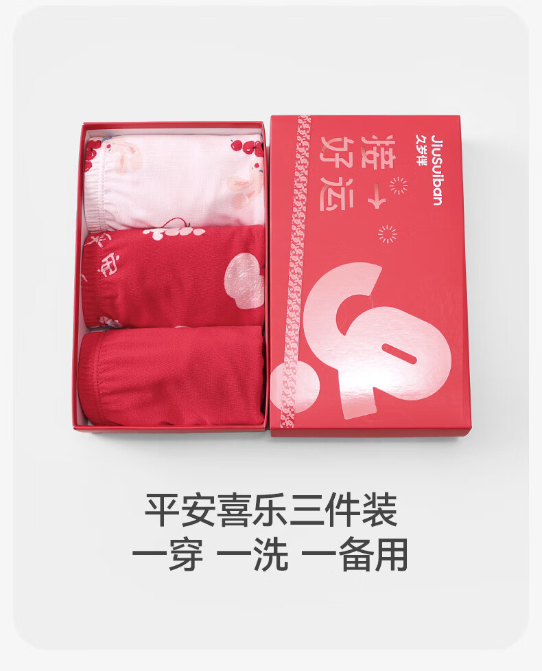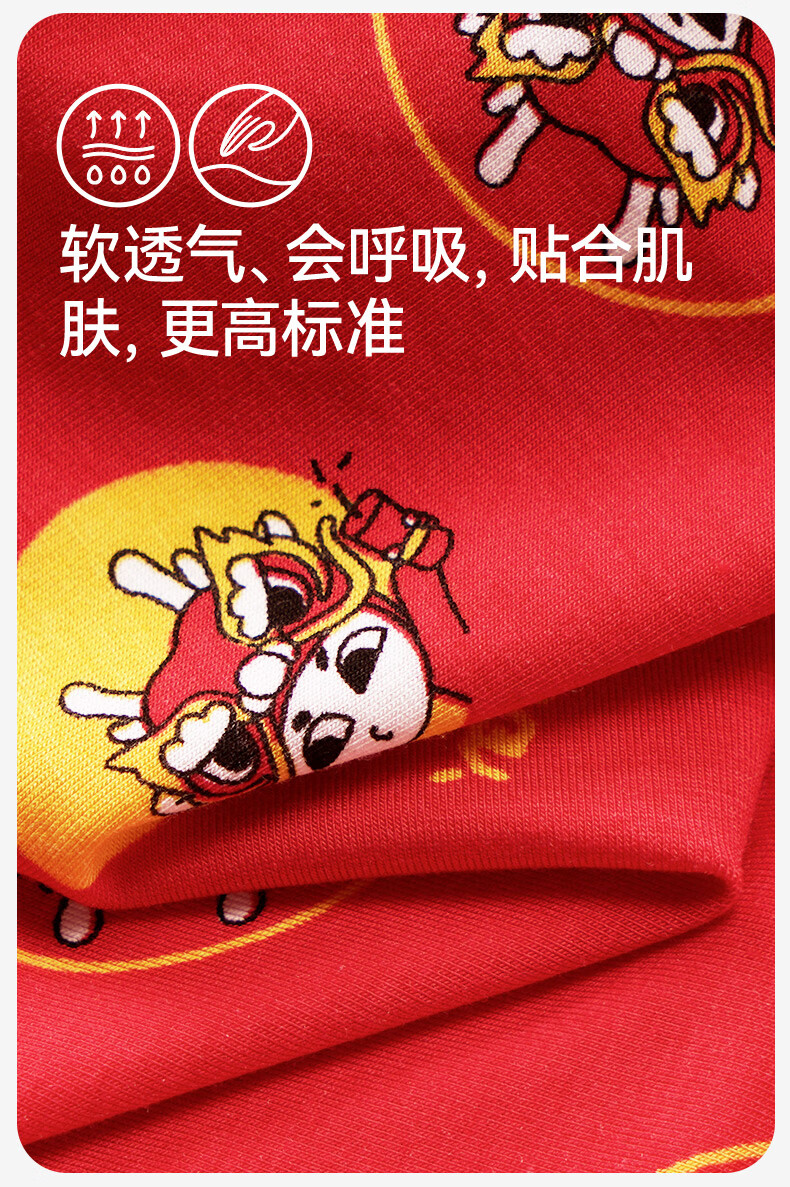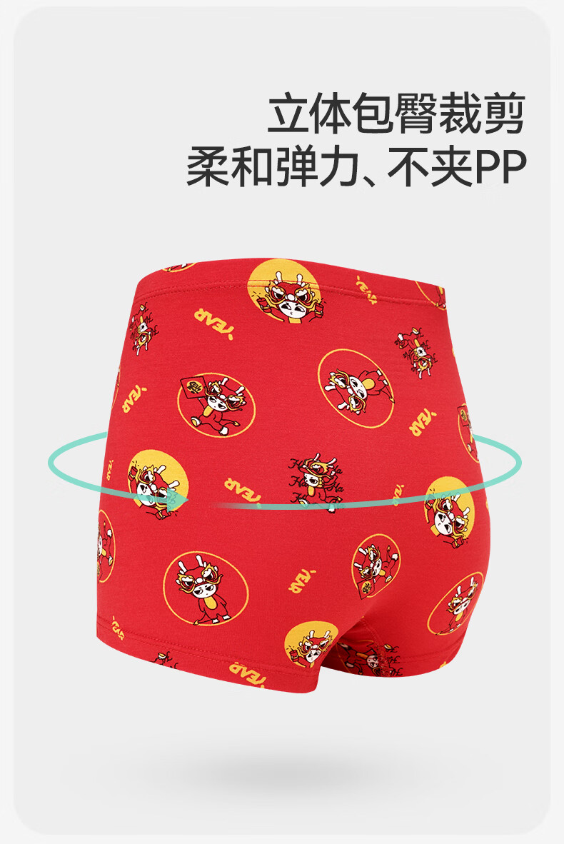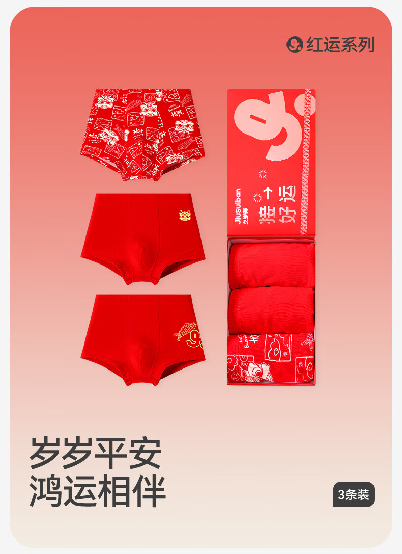 久岁伴儿童内裤新年大红色本命年男女童平角裤50支优可丝中大童6-12岁 男童【岁岁平安】内裤 3条 160 /身高150-162体重90-105斤
