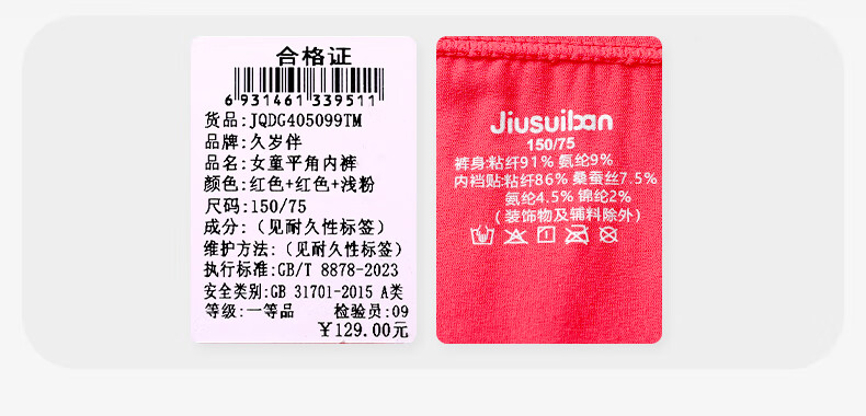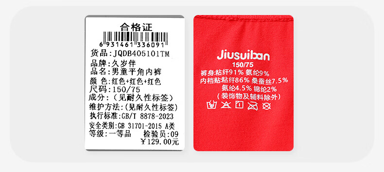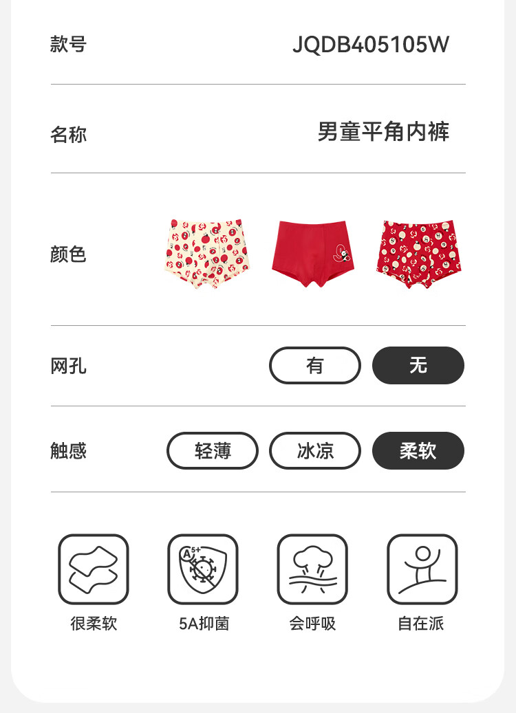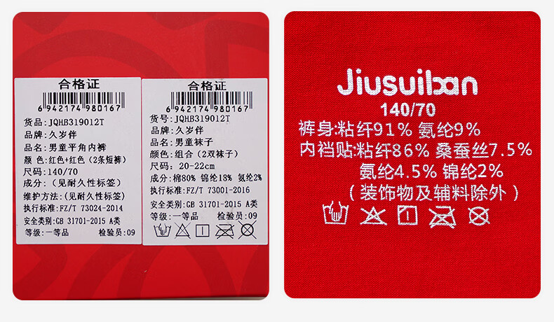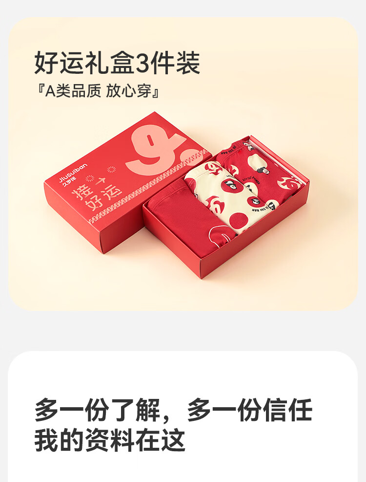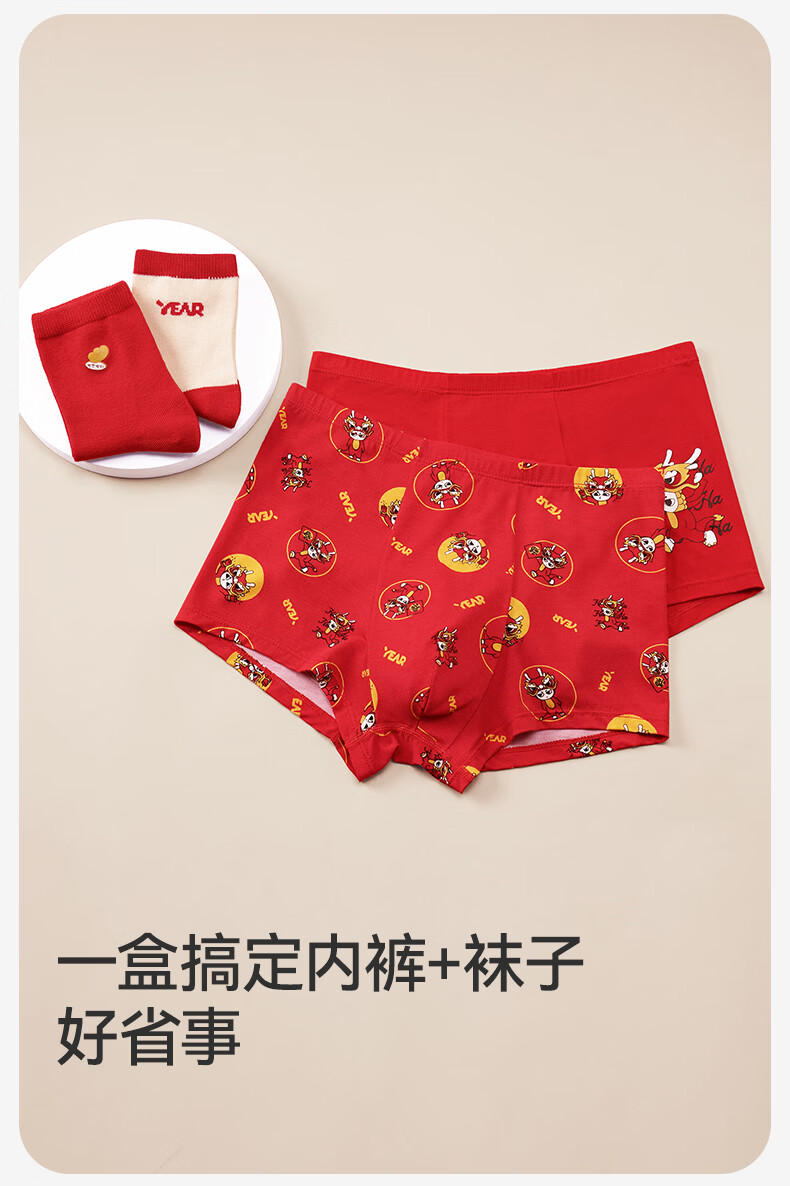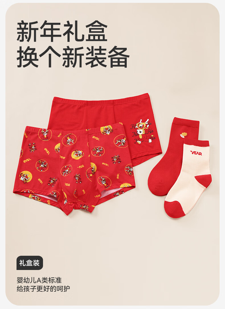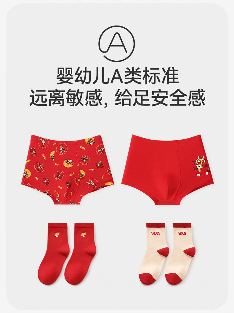 久岁伴儿童内裤新年大红色本命年男女童平角裤50支优可丝中大童6-12岁 男童【岁岁平安】内裤 3条 160 /身高150-162体重90-105斤