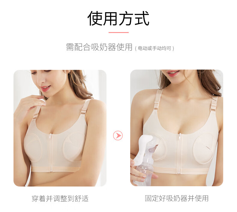 免手扶吸奶器文胸哺乳内衣产后妈妈喂奶大胸显小胸聚拢无钢圈文胸 粉色经典款 均码
