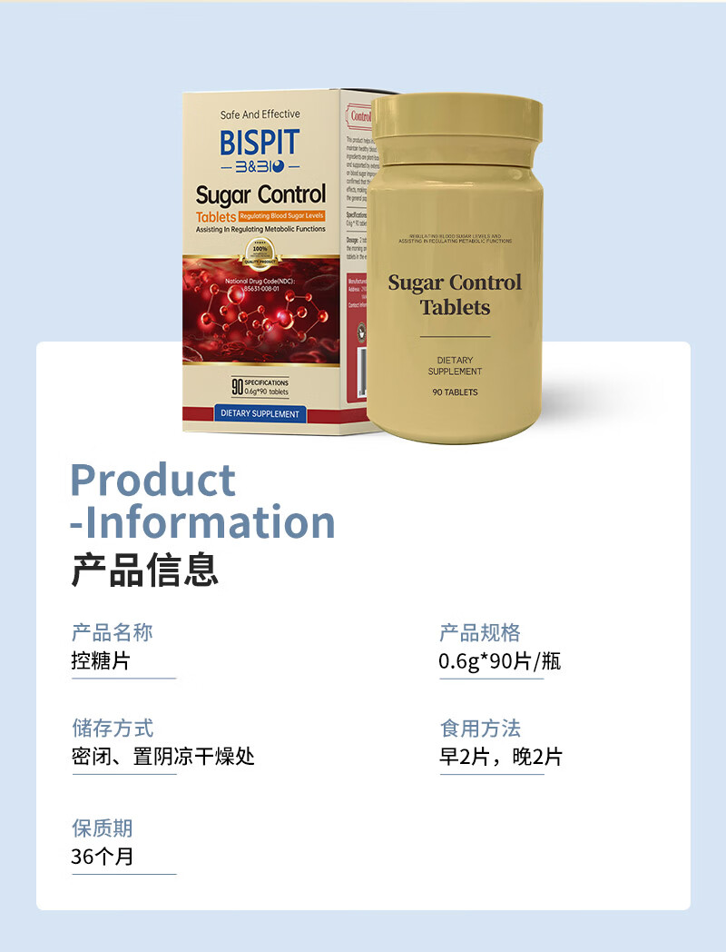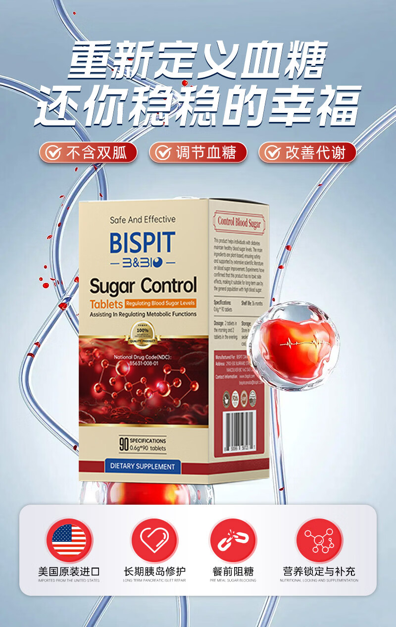 BISPIT进口降糖片 苦瓜三价铬元素降控高血糖尿口服胰岛糖尿病保健品 90片*2瓶