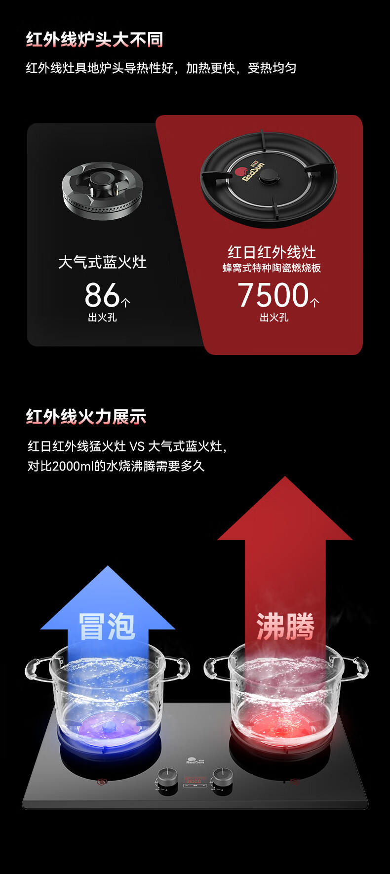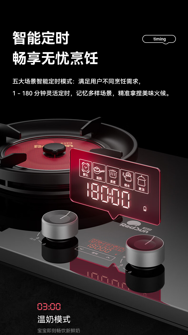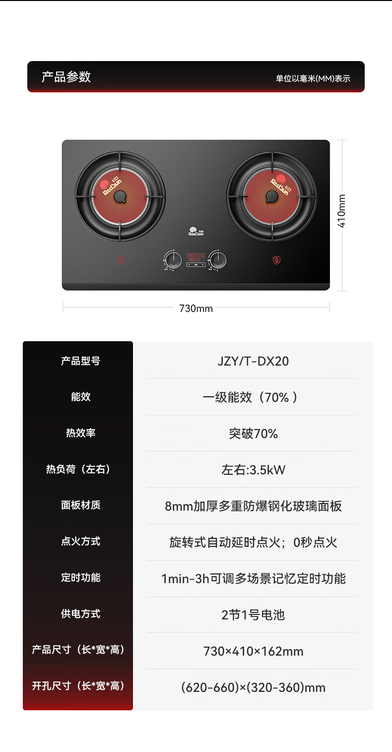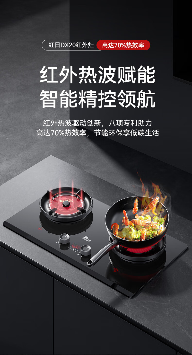 红日(RedSun)定时免改孔小底壳猛火70%热效率DX20聚能红外线灶具加厚防烫双灶 70%高热效率免改孔定时爆炒红外灶 DB10 天然气