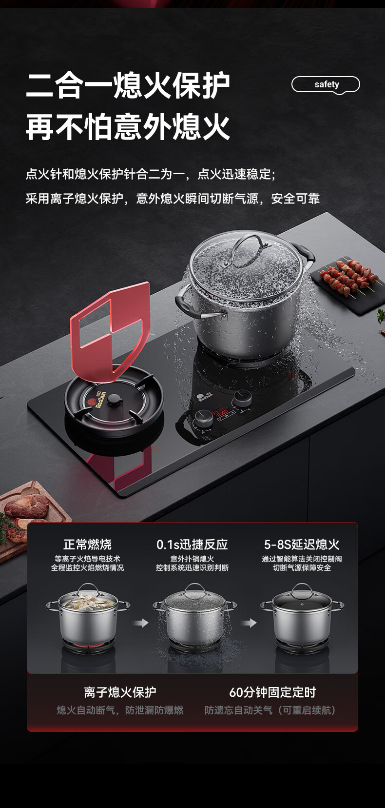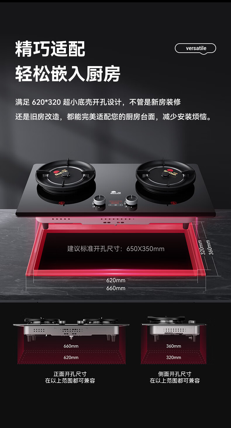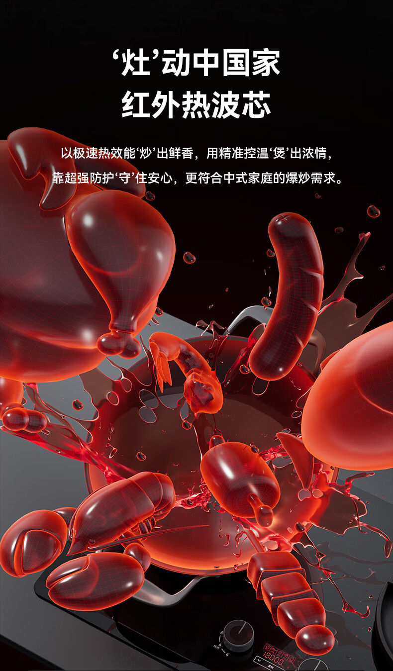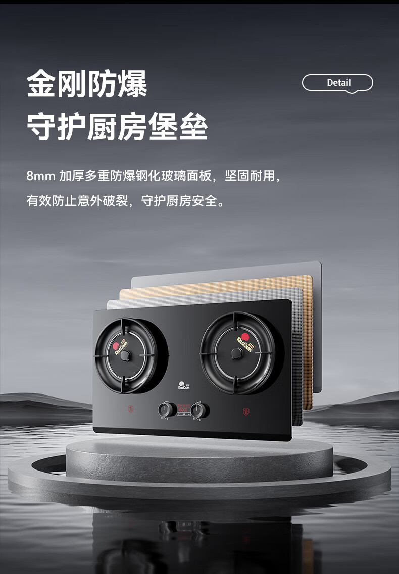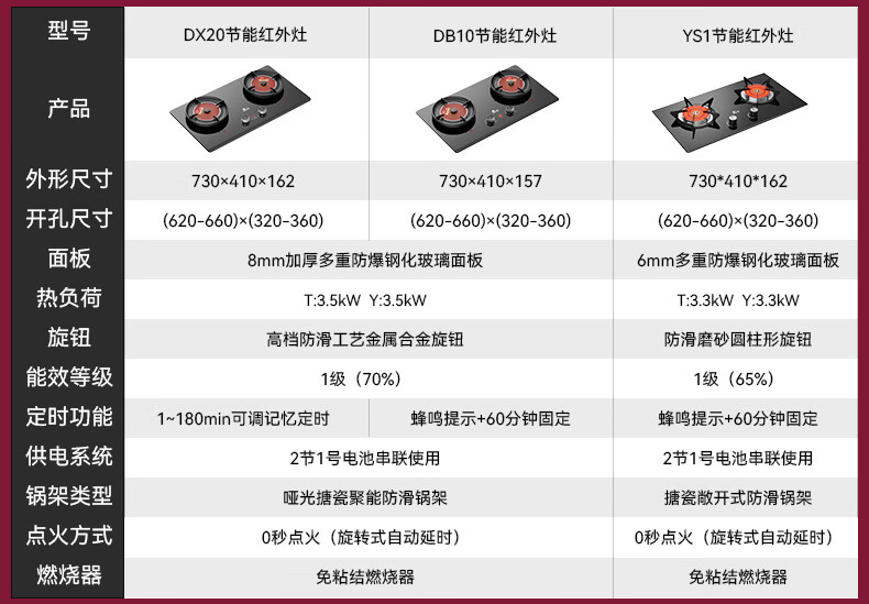 红日(RedSun)定时免改孔小底壳猛火70%热效率DX20聚能红外线灶具加厚防烫双灶 70%高热效率免改孔定时爆炒红外灶 DB10 天然气