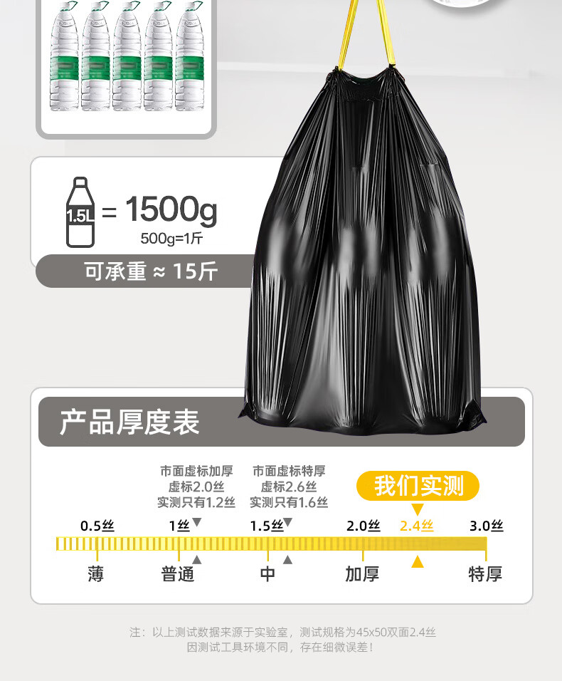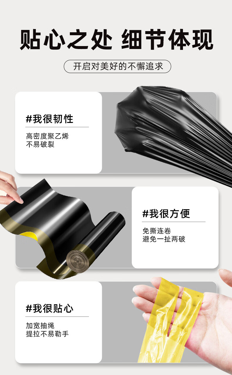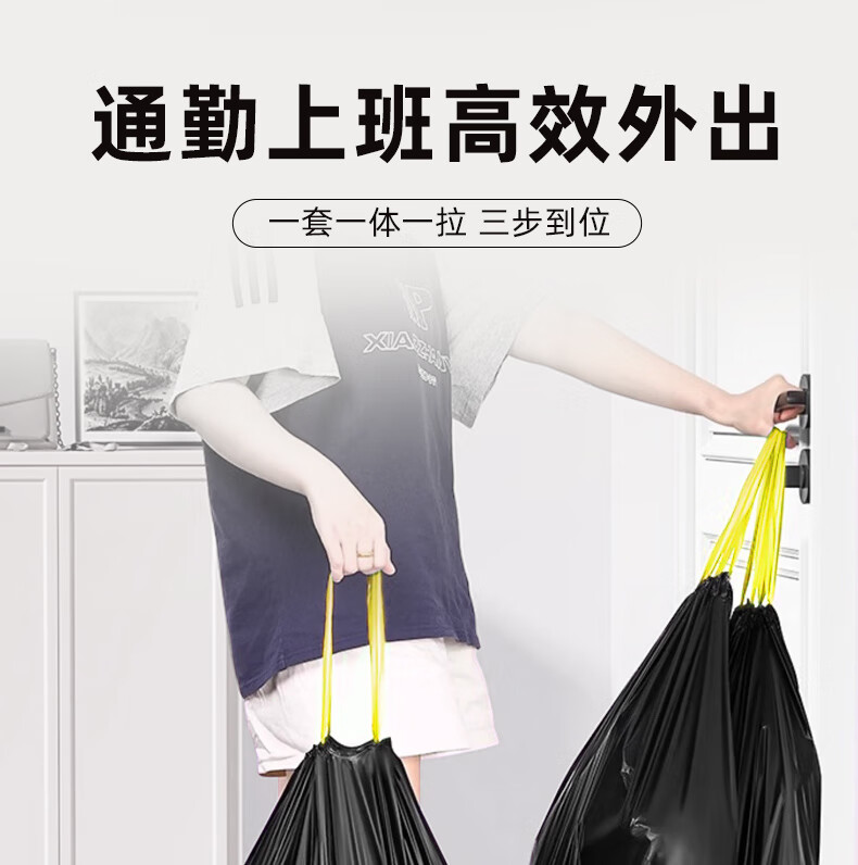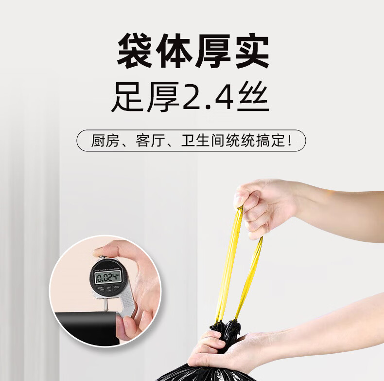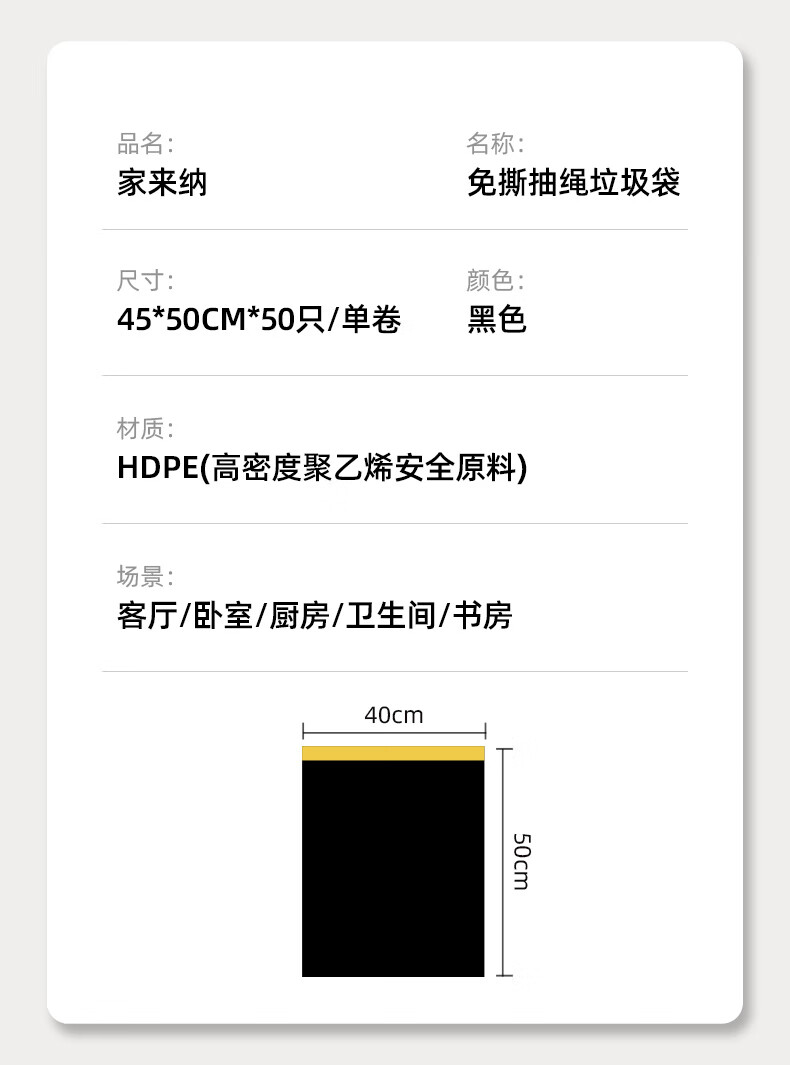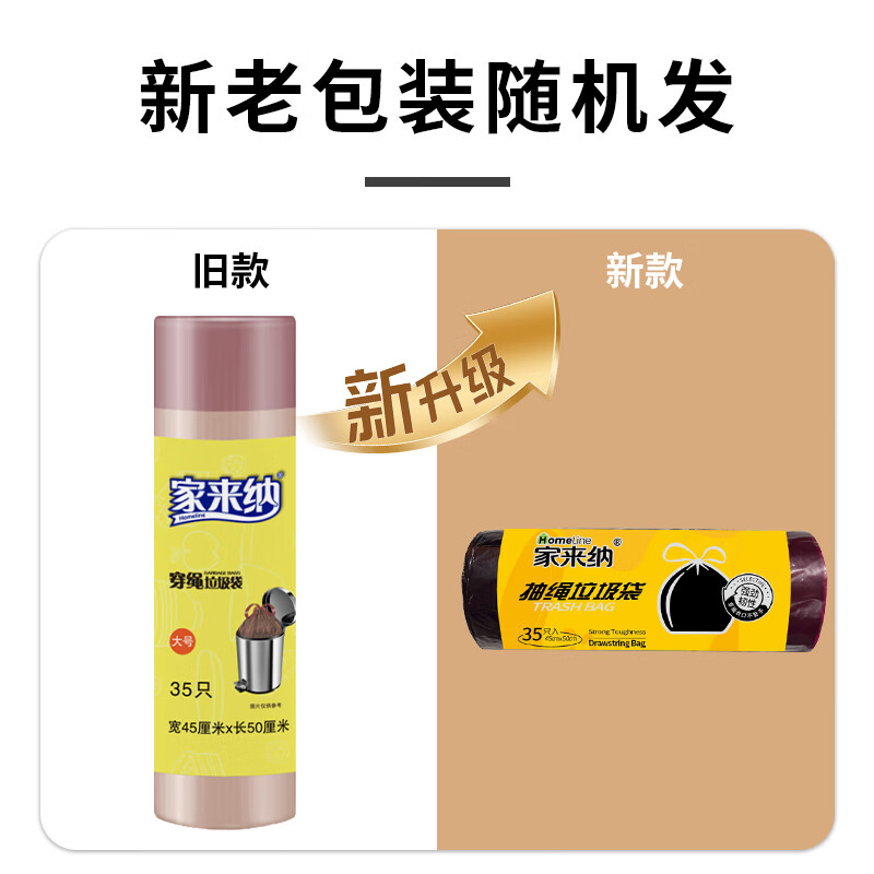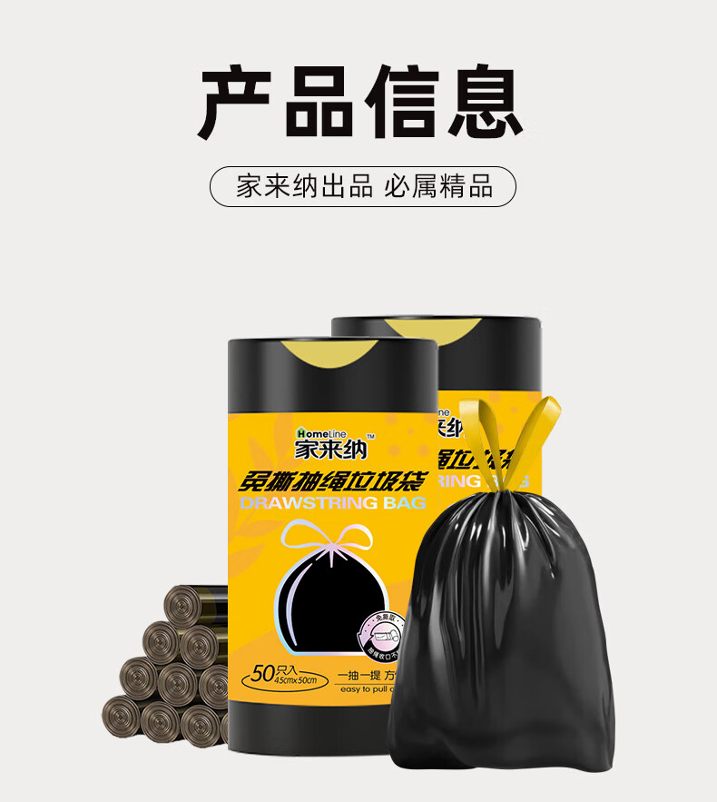 家来纳免撕抽绳拉垃圾袋手提式自动收口加厚双面2.4丝 45*50cm 棕色抽绳140只中号45*50cm(赠一次性手套100只)