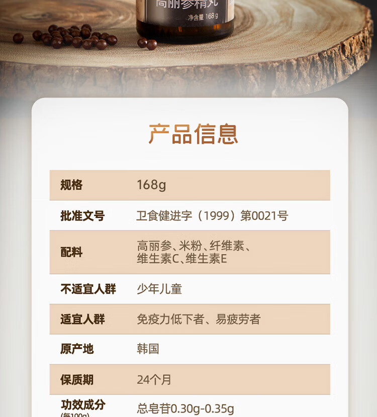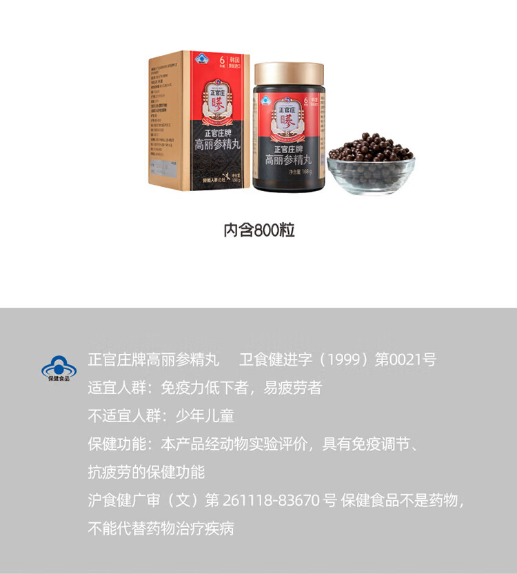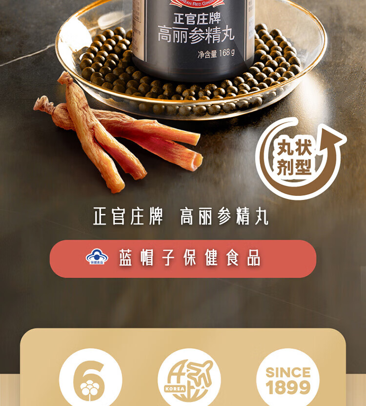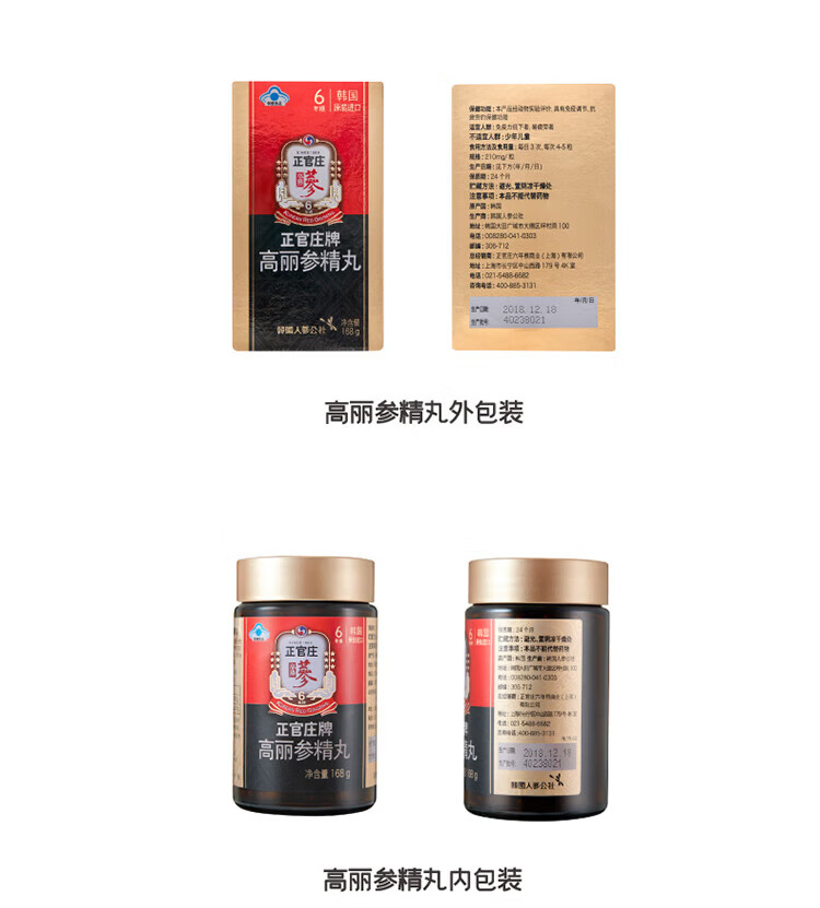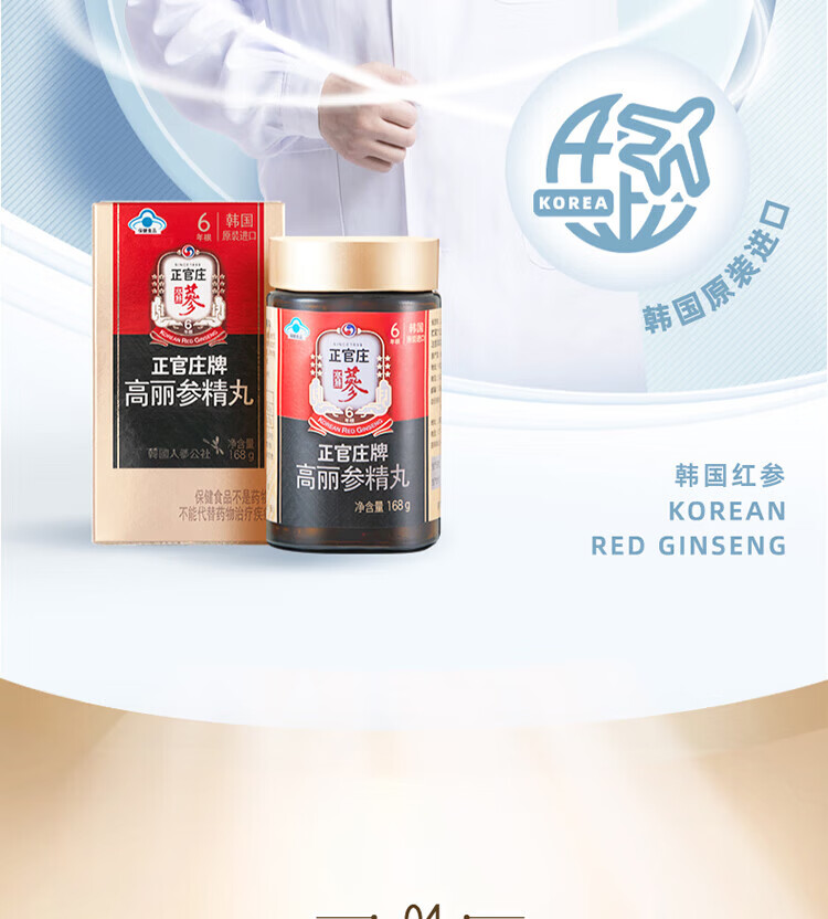 正官庄(korean red ginseng)韩国高丽参精丸168g 保健食品免疫调节原装进口【效期2026年6月】
