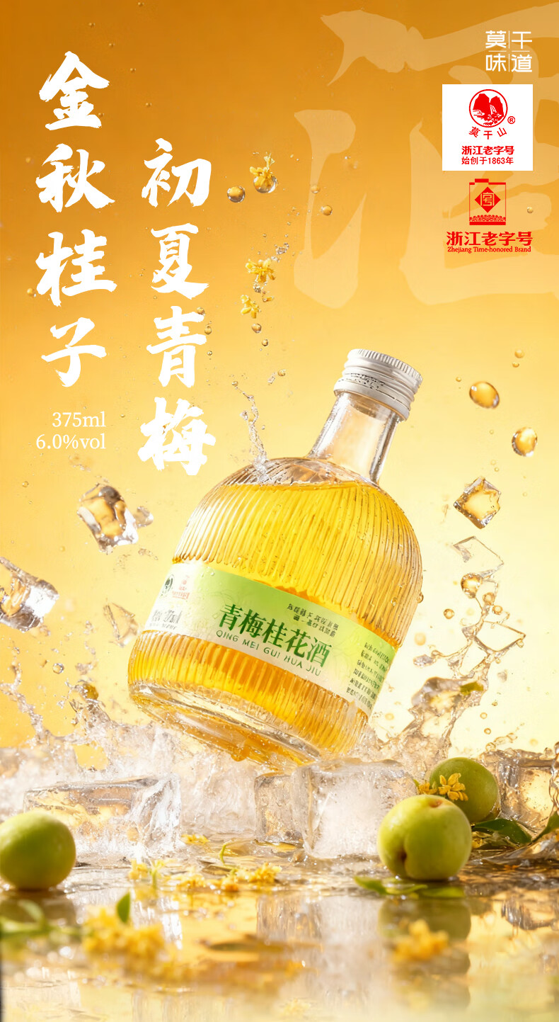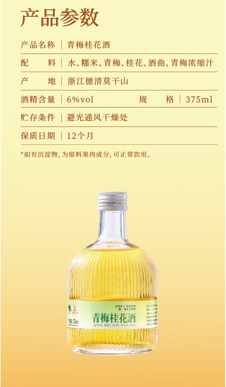 莫干山金桂梅酒青梅桂花酒果味米酒微醺女士低度甜酒6度梅子酒 青梅桂花375mlx6瓶