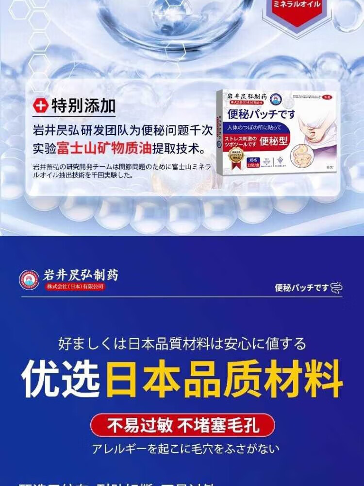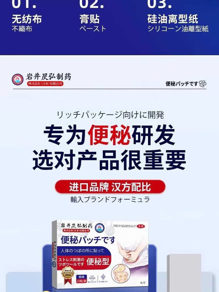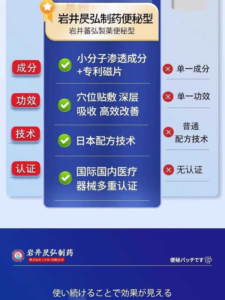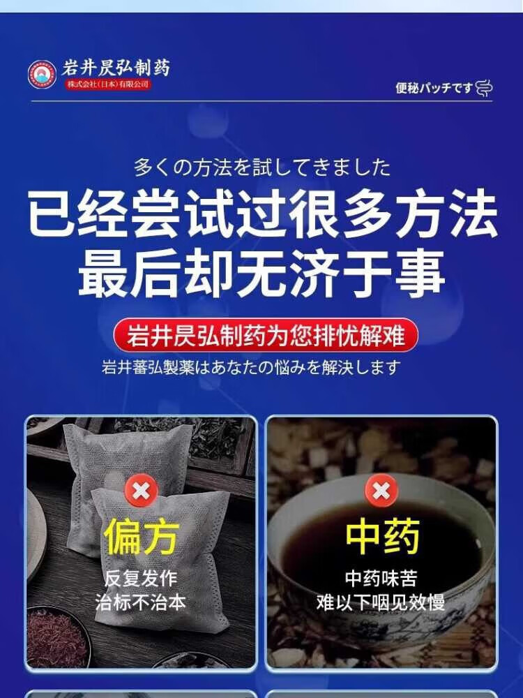 岩井昃弘便秘贴清肠排毒通便减肥排宿便困难大便干燥拉不出专用贴药老年人 一盒特效贴【日本技术】 治疗便秘最好的