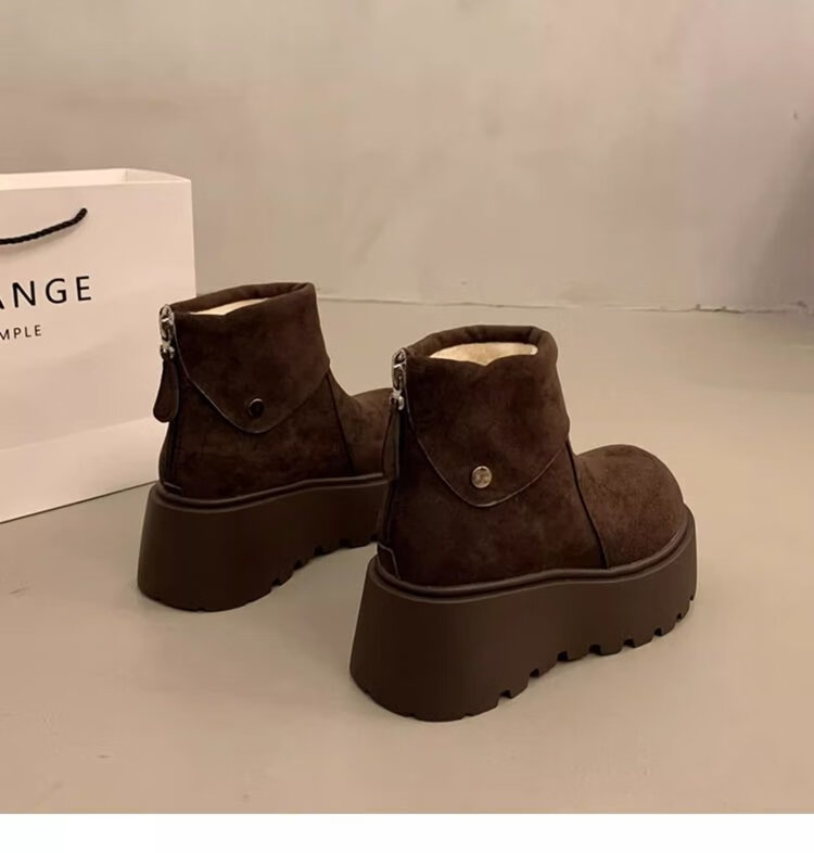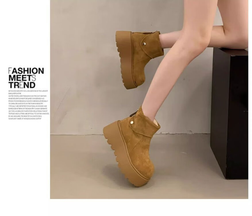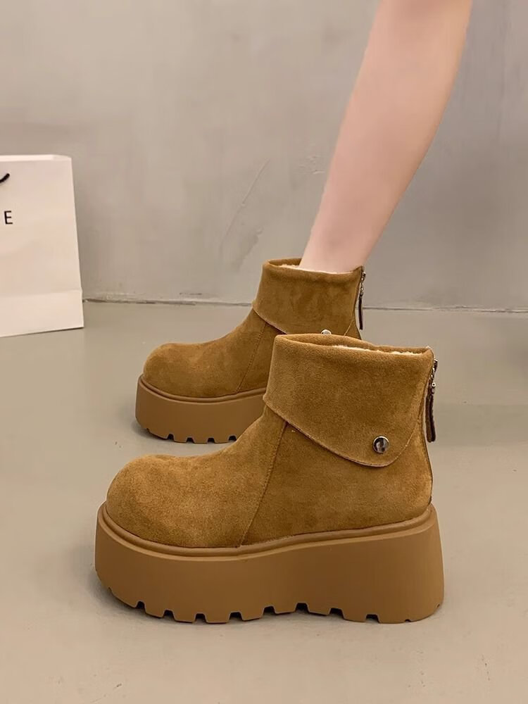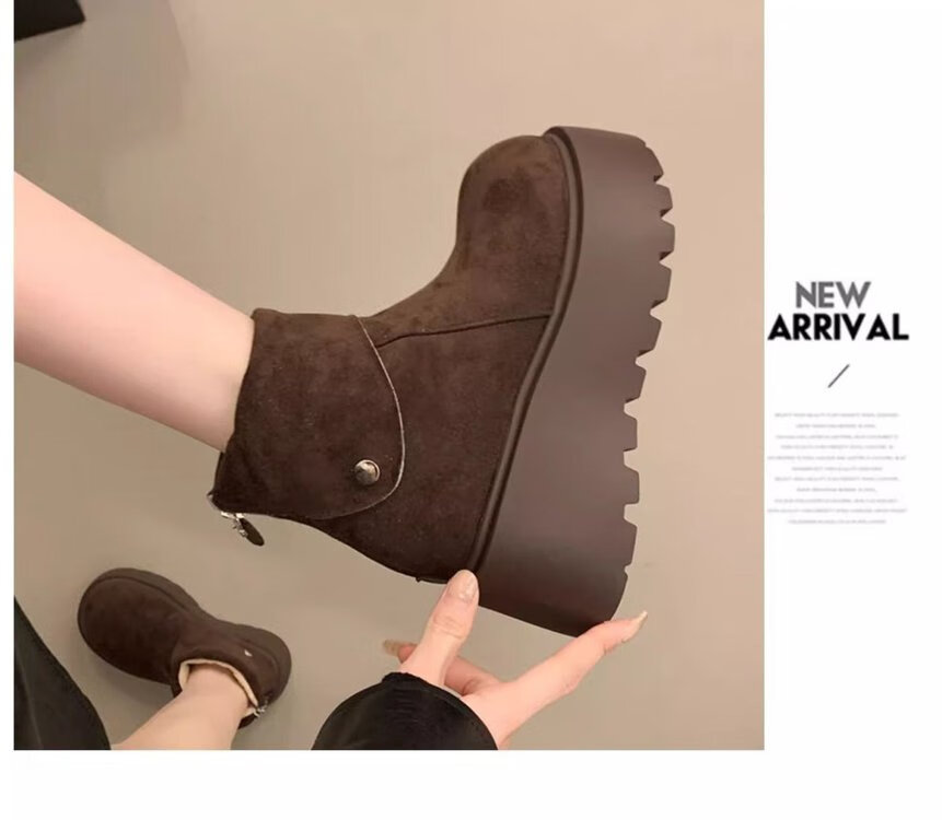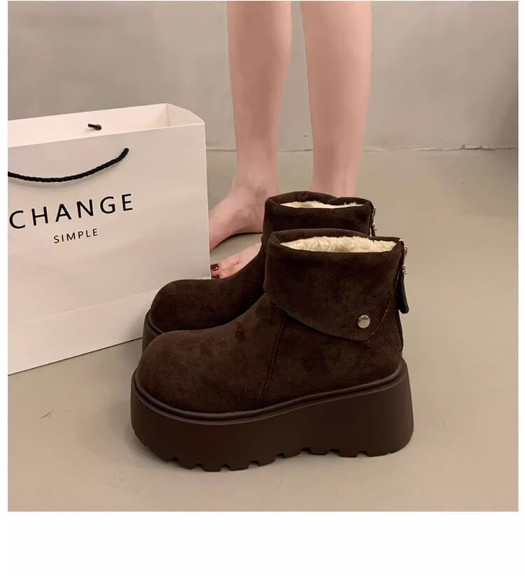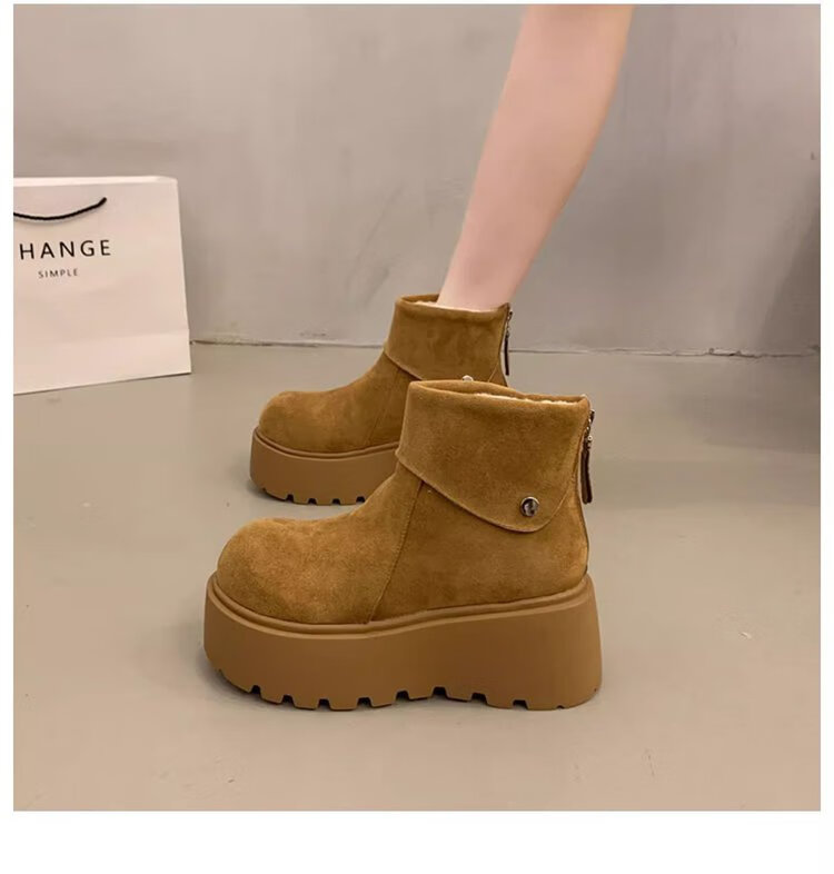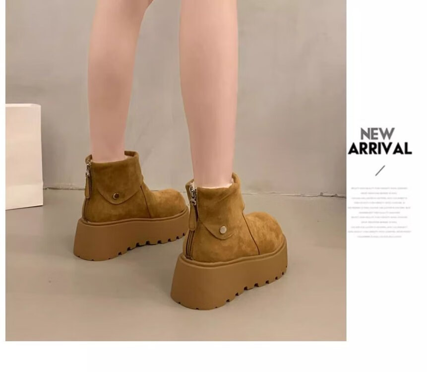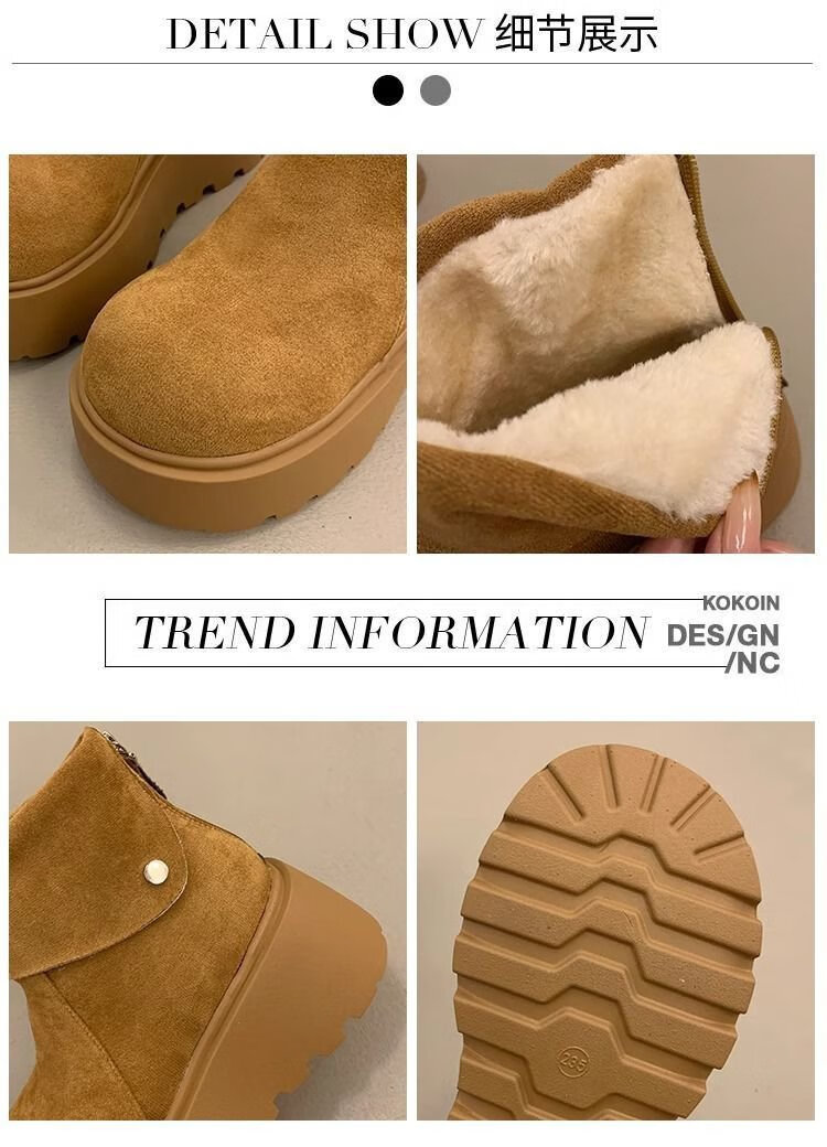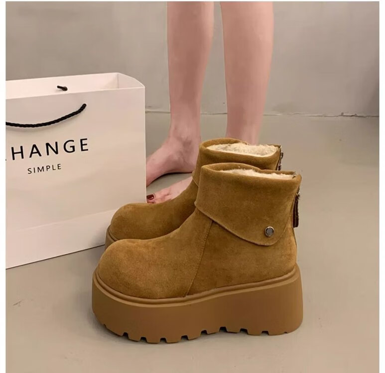 回力四季保暖增高厚底雪地靴女2025新款冬季勃肯鞋短靴女加绒加厚东北棉鞋 驼色 加棉 38