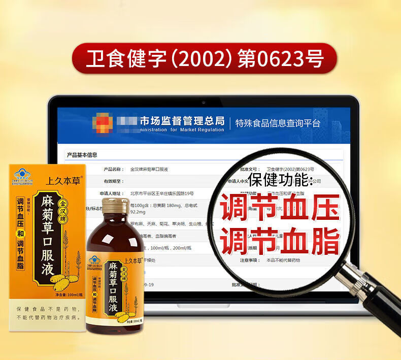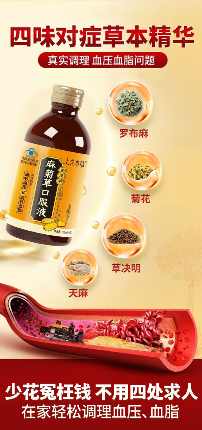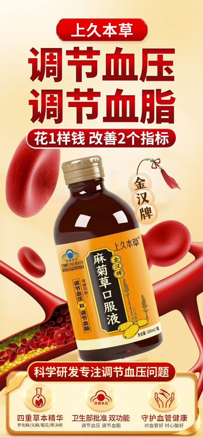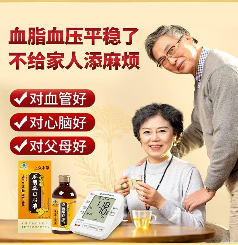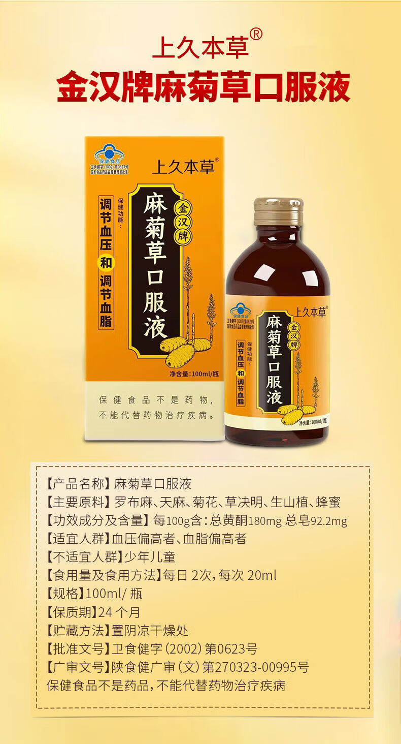 上久本草金汉牌麻菊草口服液调节血压调节血脂100ml/瓶保健品营养保健食品 【调理装】 100ml*2瓶