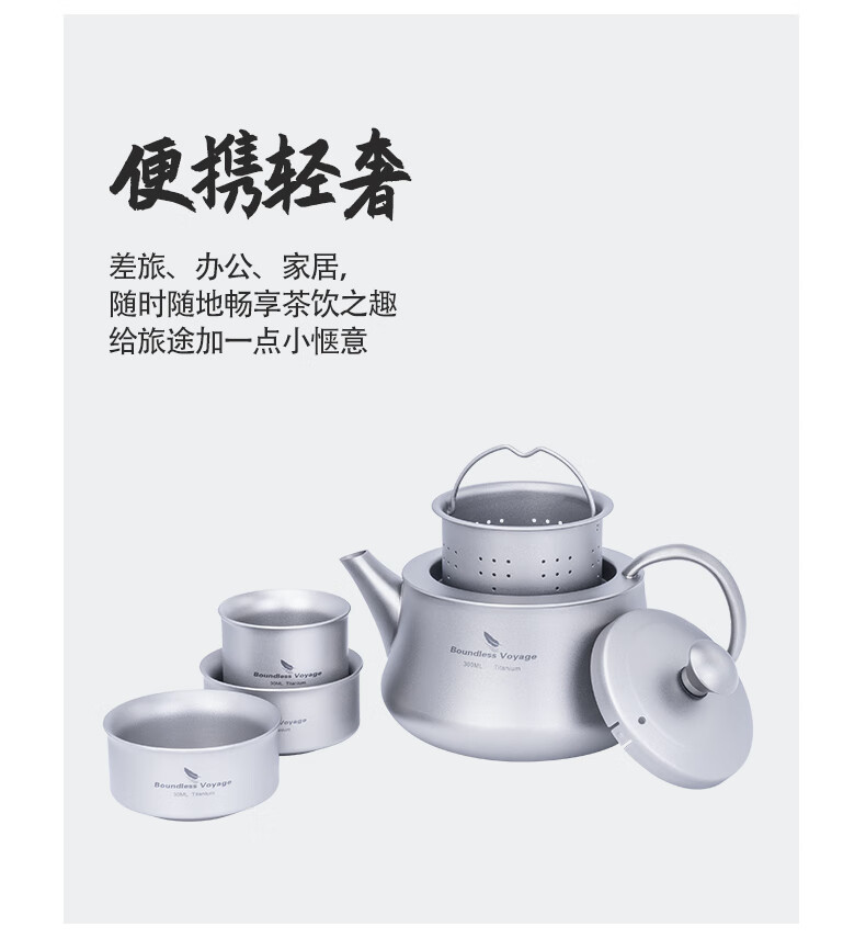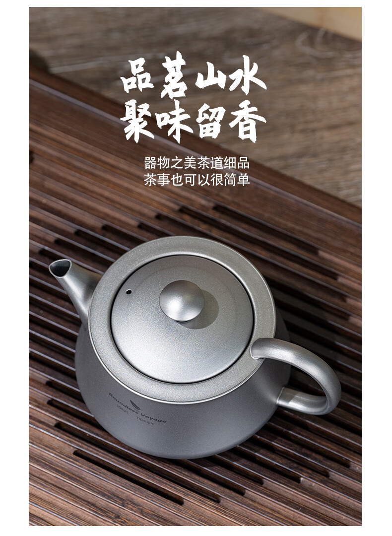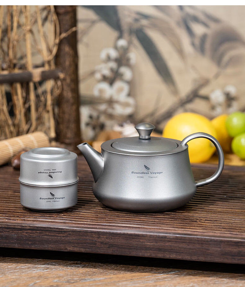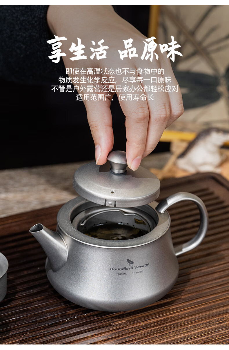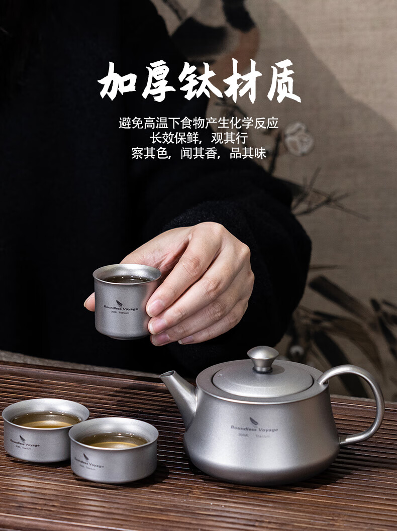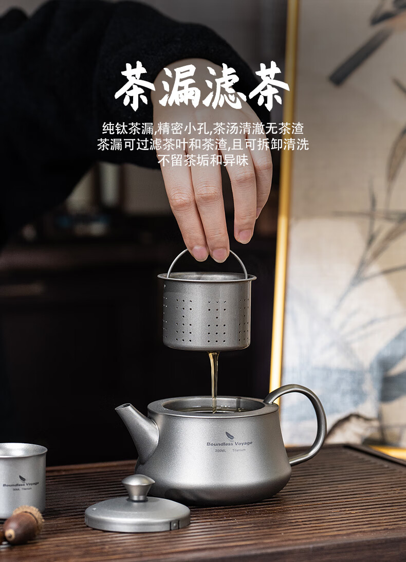 必唯纯钛户外茶壶300ml带滤网旅行茶具套装便携式泡茶专用露营 Ti3119D 300ML茶壶+3茶杯