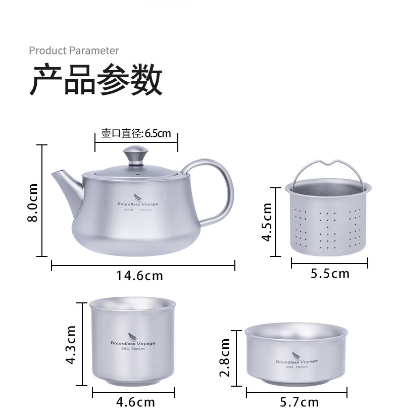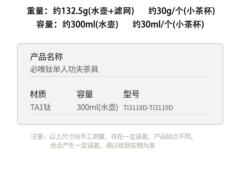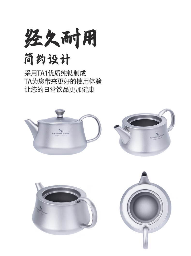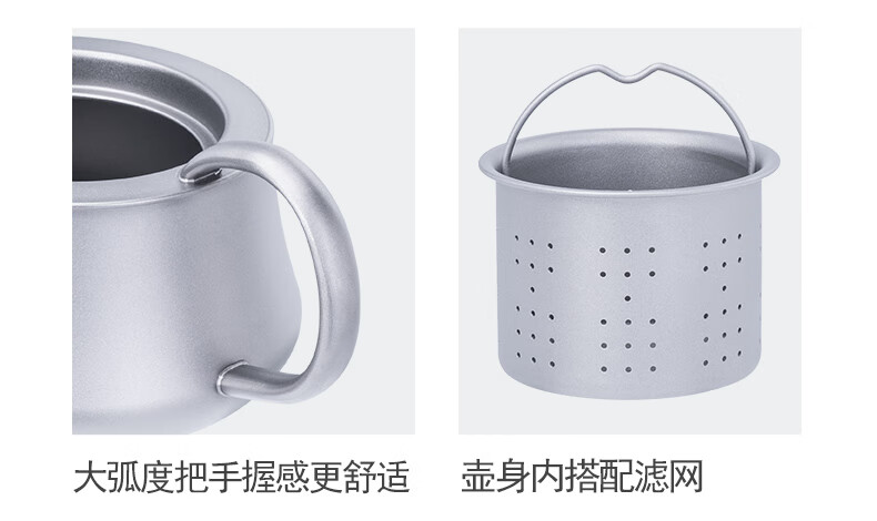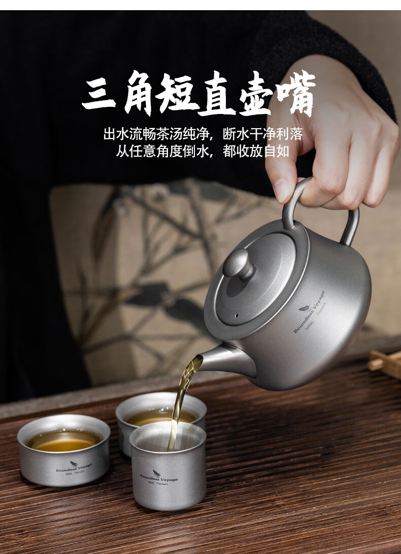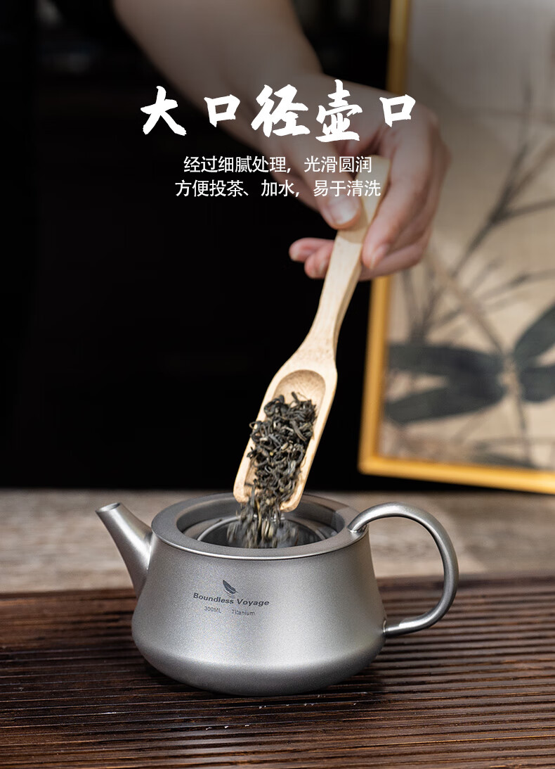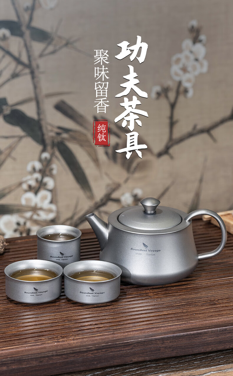 必唯纯钛户外茶壶300ml带滤网旅行茶具套装便携式泡茶专用露营 Ti3119D 300ML茶壶+3茶杯