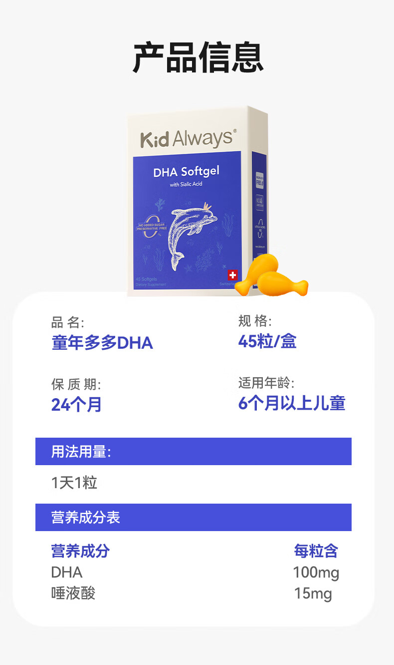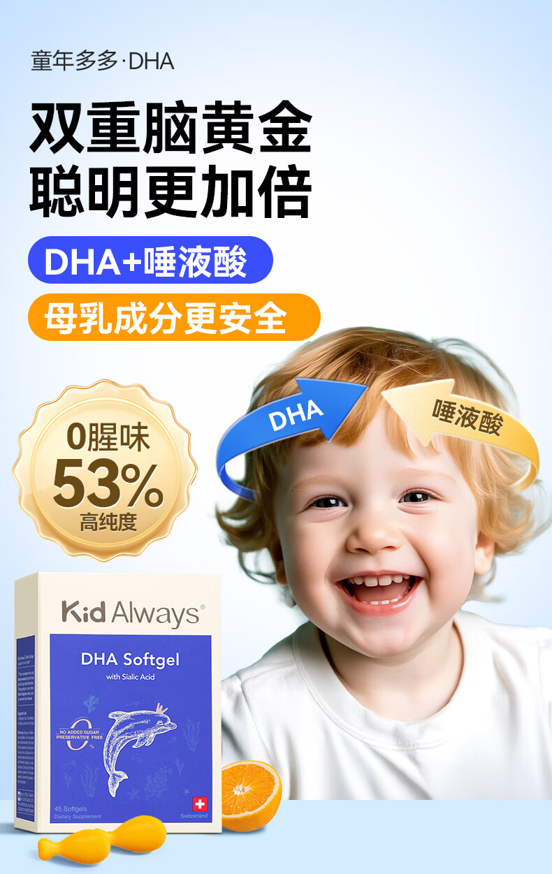 Kid Always童年多多儿童DHA海藻油软胶囊 学生婴幼儿宝宝补脑dha45粒/盒