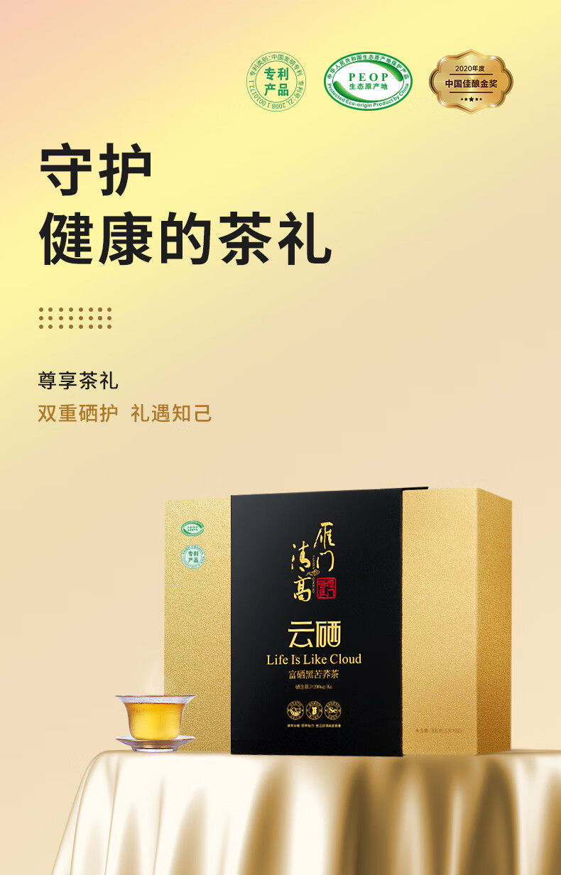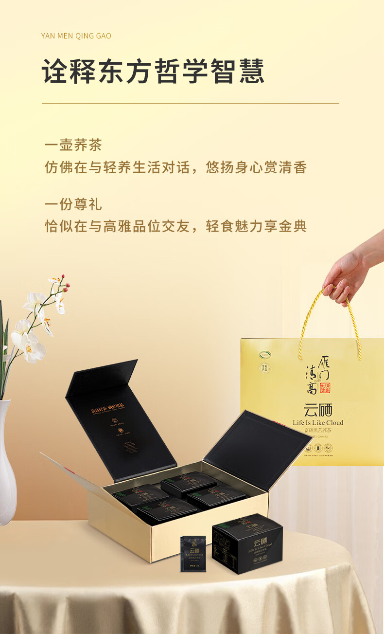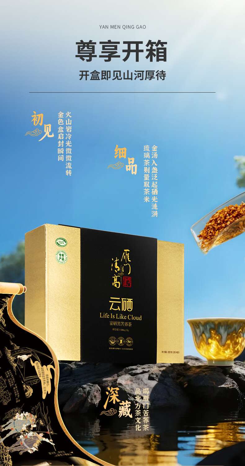 雁门清高富硒黑苦荞茶礼盒300g 养身茶叶商务礼盒苦荞茶山西 年货礼品礼盒