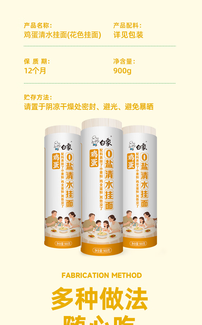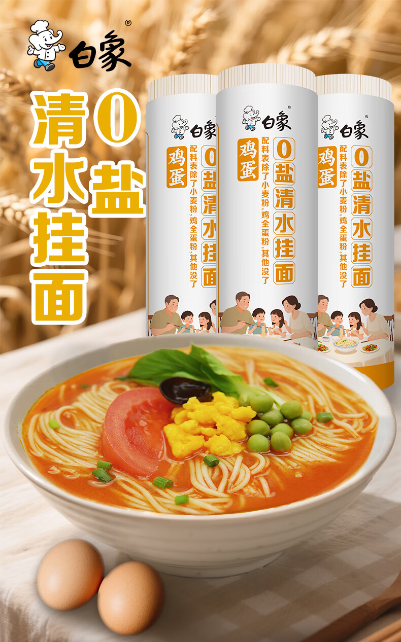 白象鸡蛋面0盐细面鸡蛋风味面条鸡蛋挂面900g*3卷