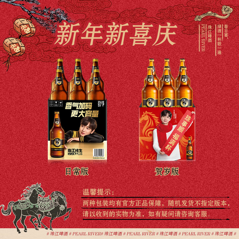 珠江啤酒(PEARL RIVER)9.7度 珠江纯生啤酒(1997)970mL*6瓶 整箱装 京东自营年货送礼