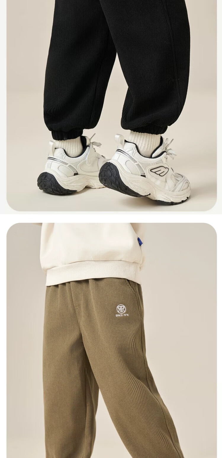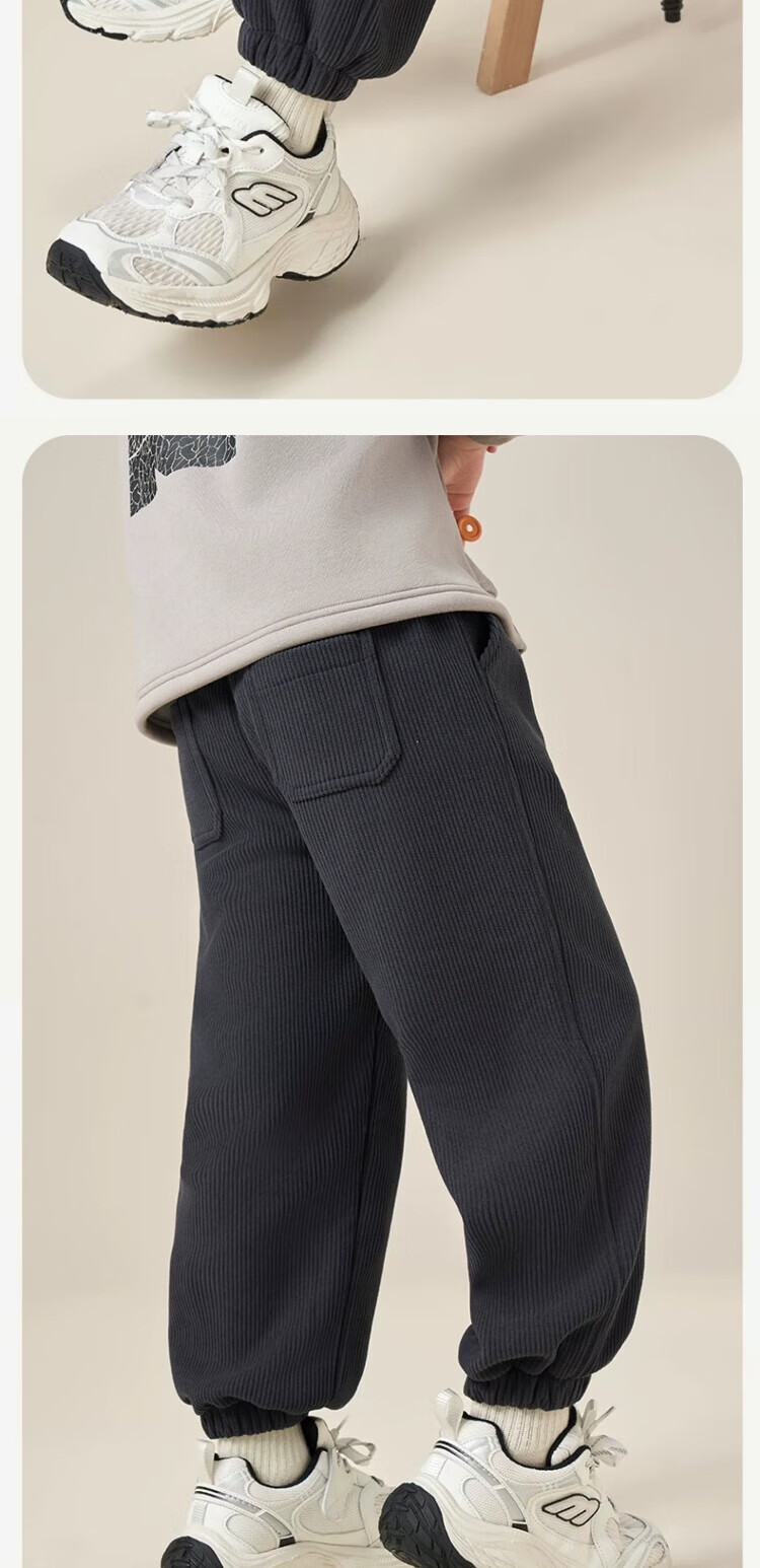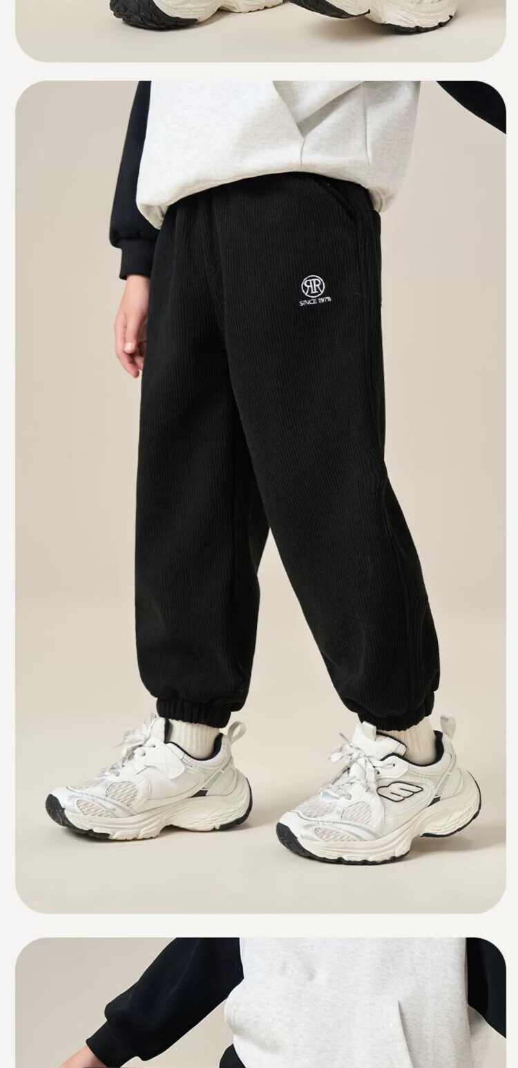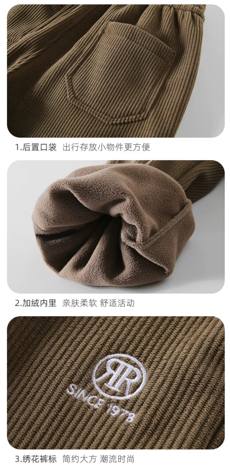 罗蒙男童加绒裤子冬装2025新款儿童灯芯绒一体绒洋气休闲保暖长裤 黑色 170