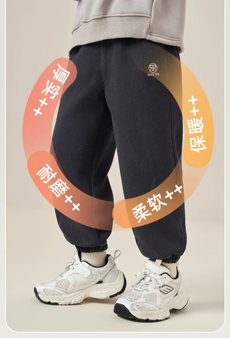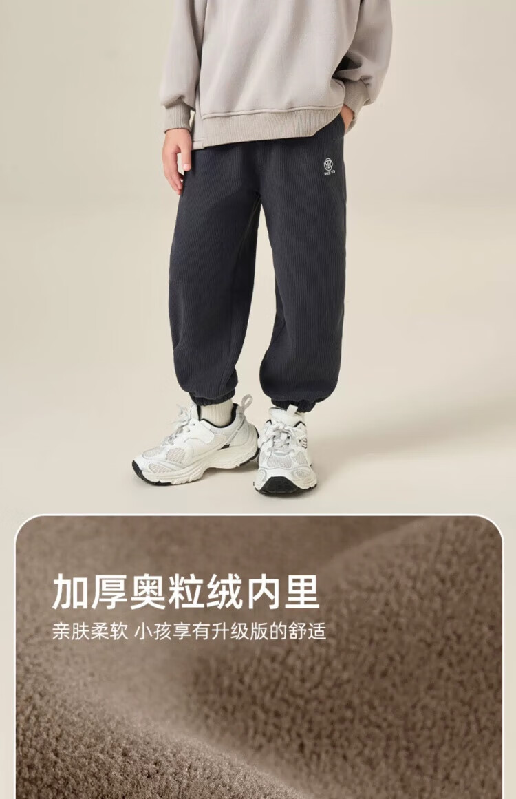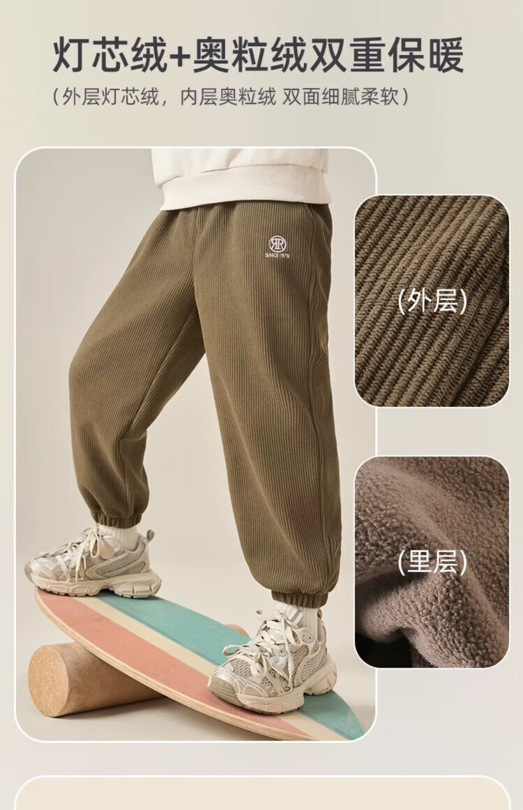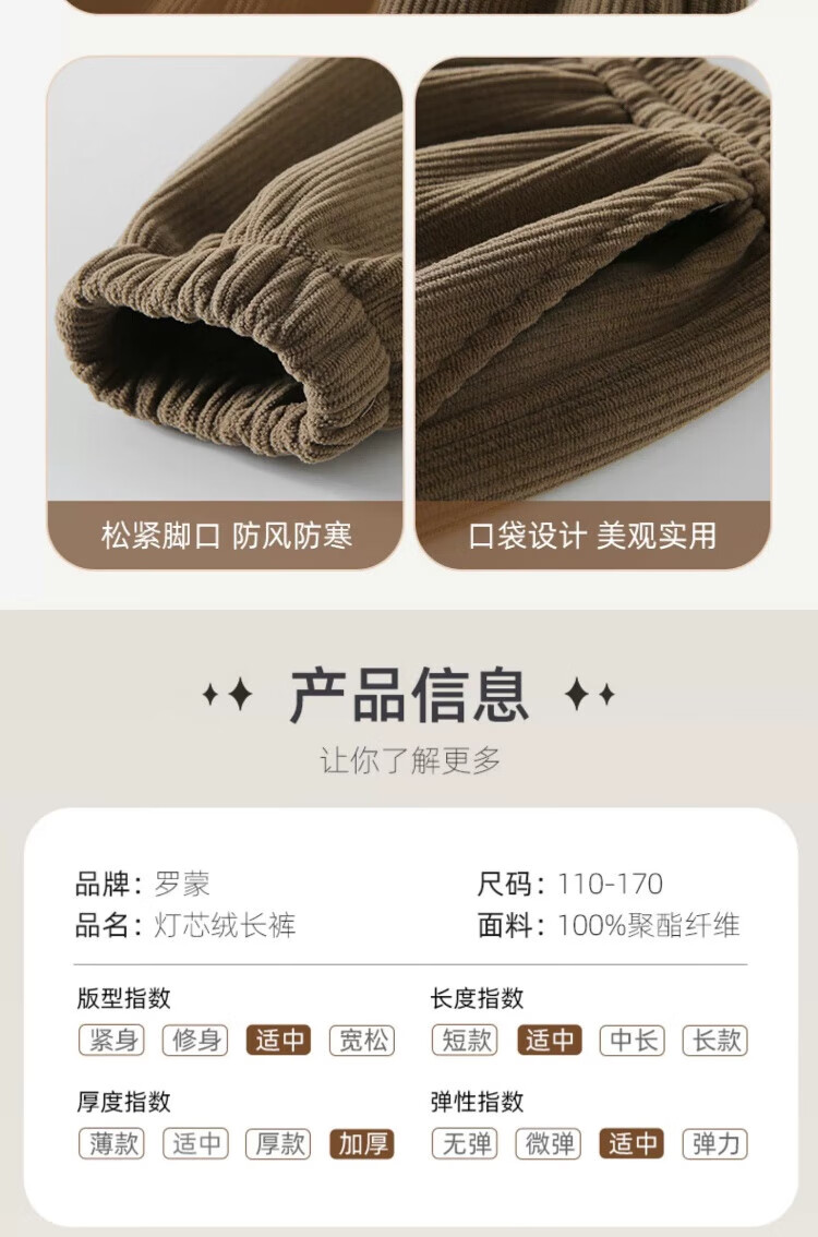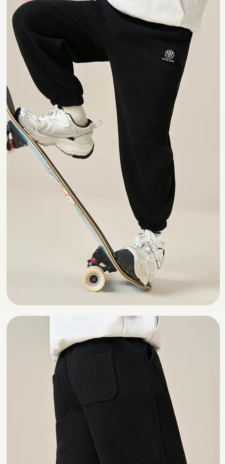罗蒙男童加绒裤子冬装2025新款儿童灯芯绒一体绒洋气休闲保暖长裤 黑色 170