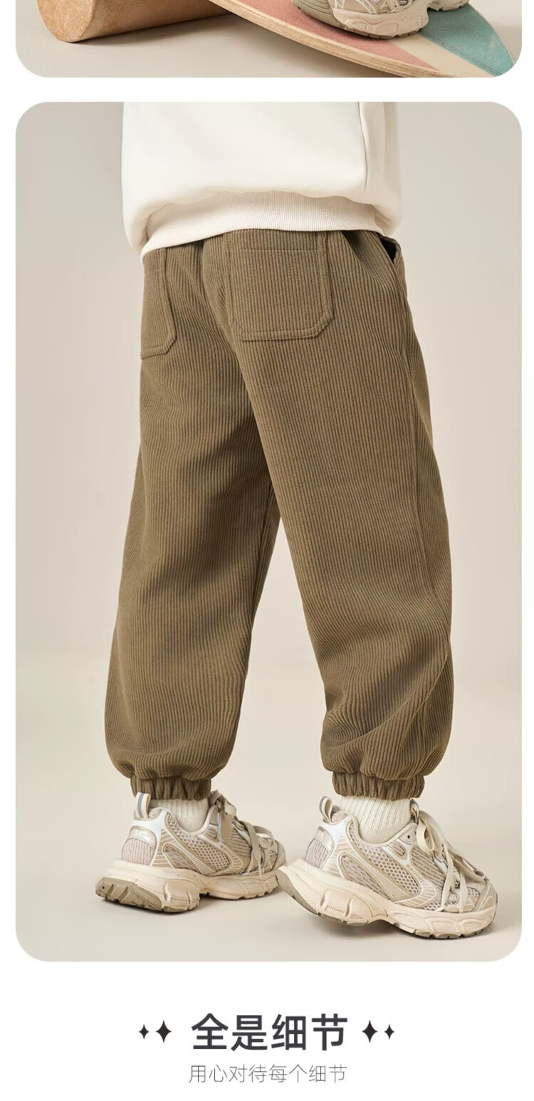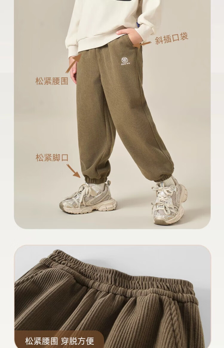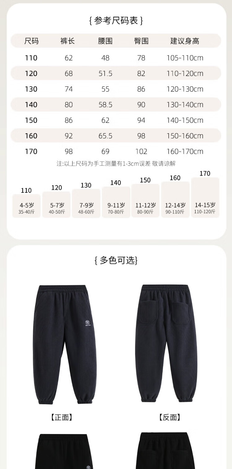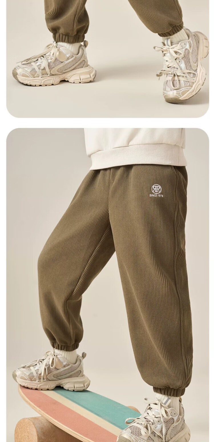 罗蒙男童加绒裤子冬装2025新款儿童灯芯绒一体绒洋气休闲保暖长裤 黑色 170
