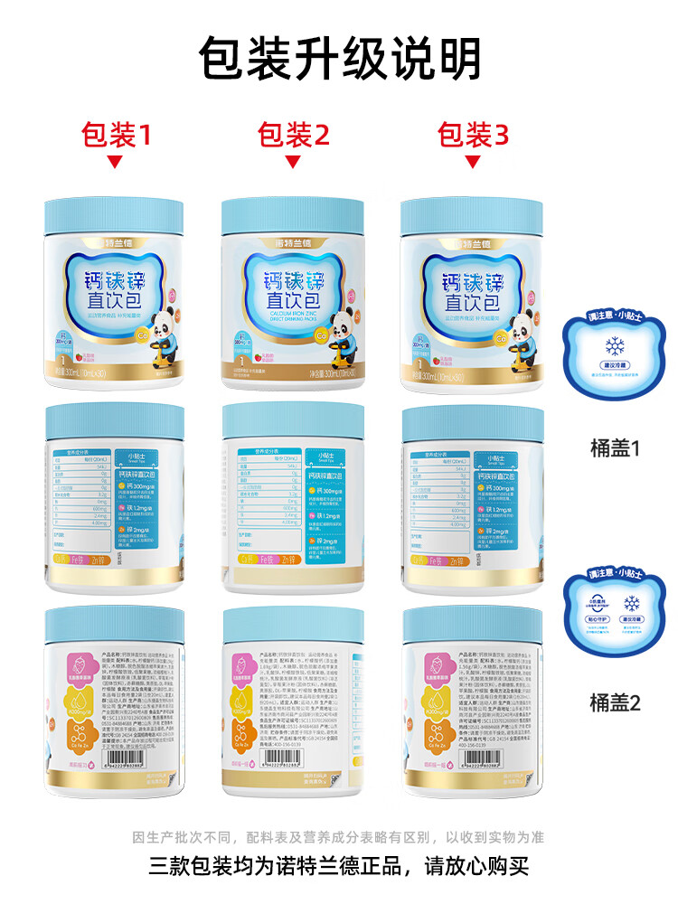 诺特兰德钙铁锌直饮包口服液体钙 有机钙柠檬酸钙 乳酸菌草莓味*3桶