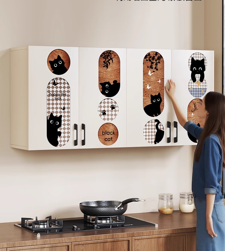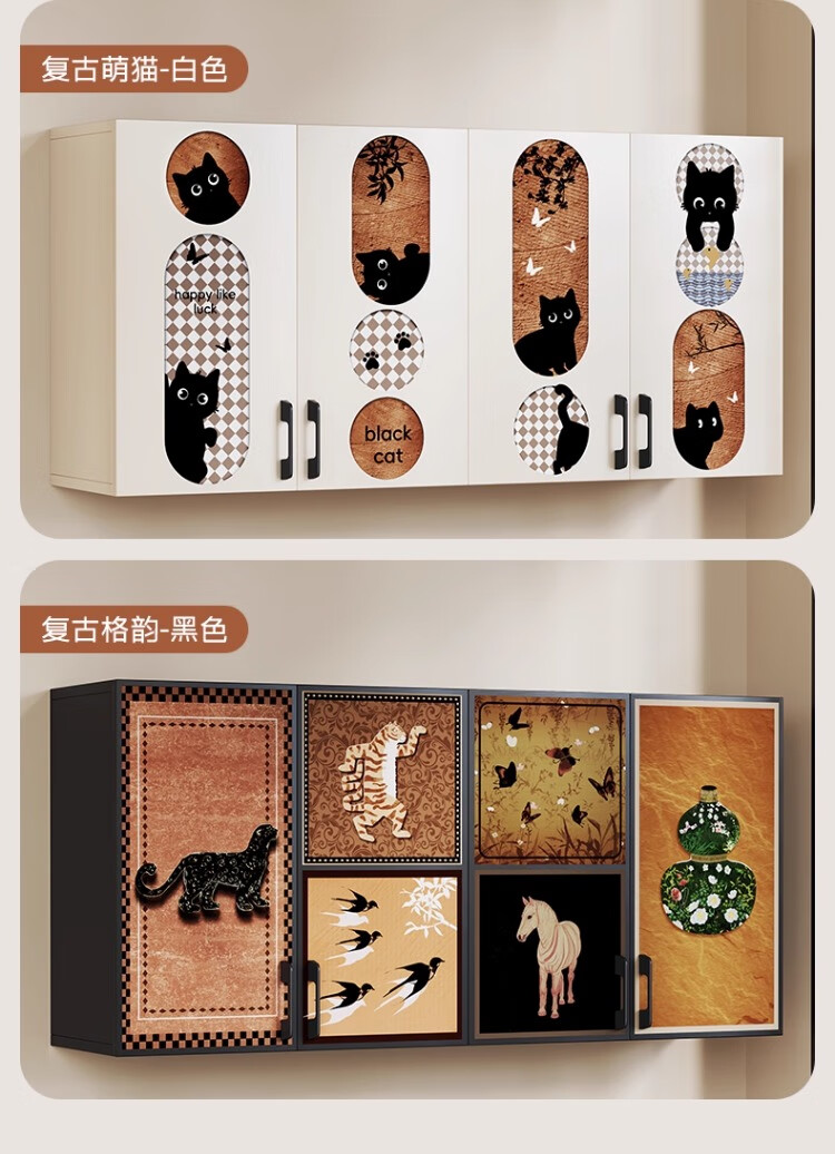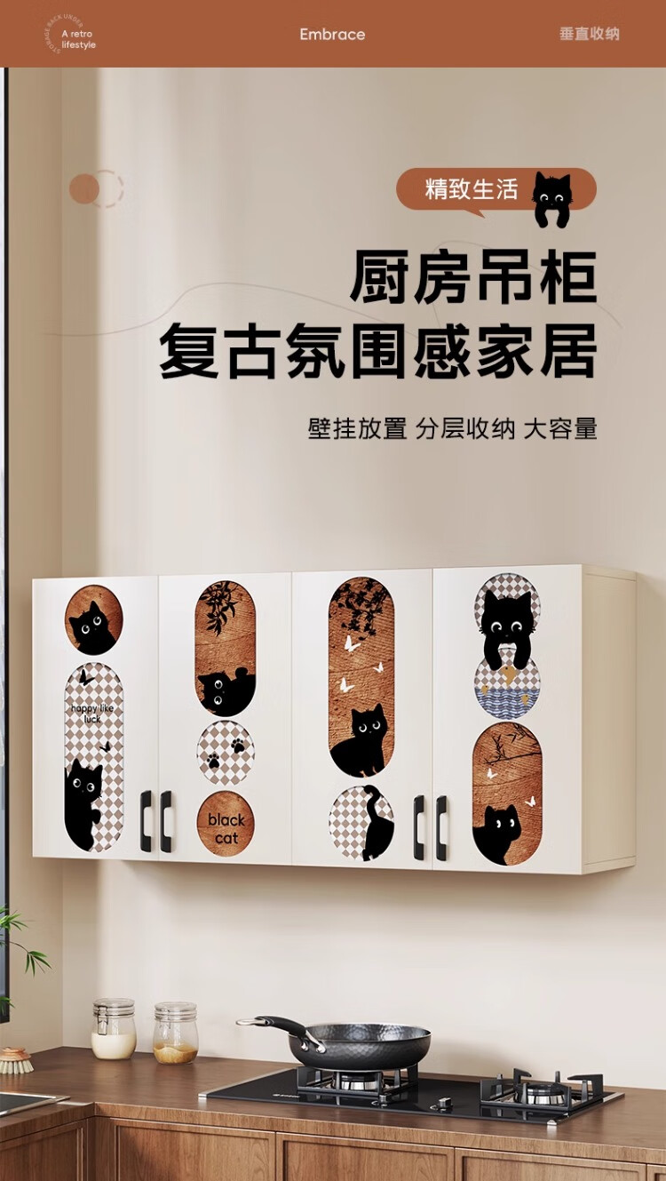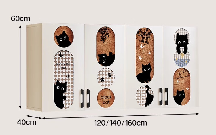 尔思家厨房多功能置物架墙上收纳柜货物架子家用货架调味料吊柜储物柜 复古萌猫白色160款
