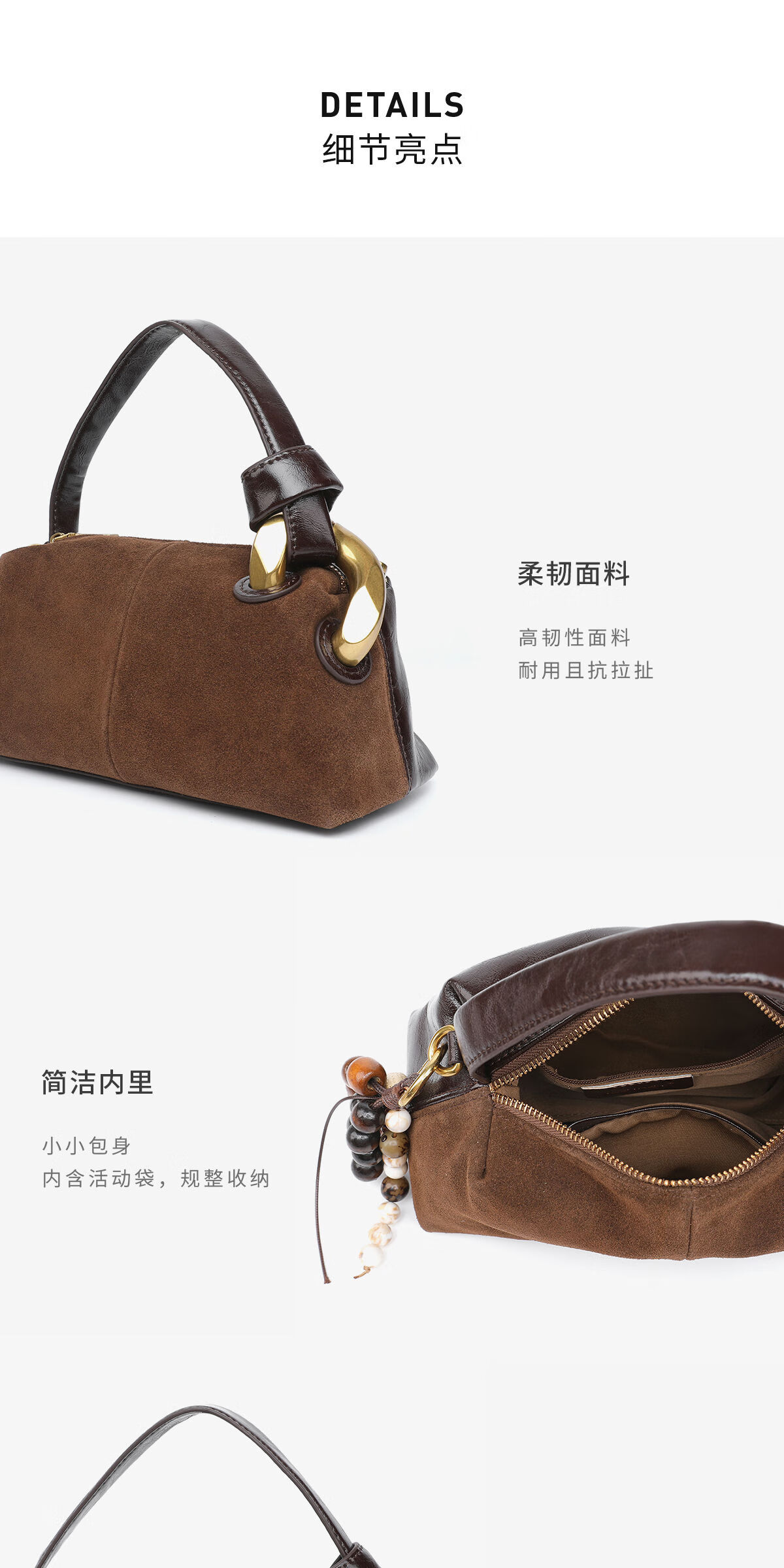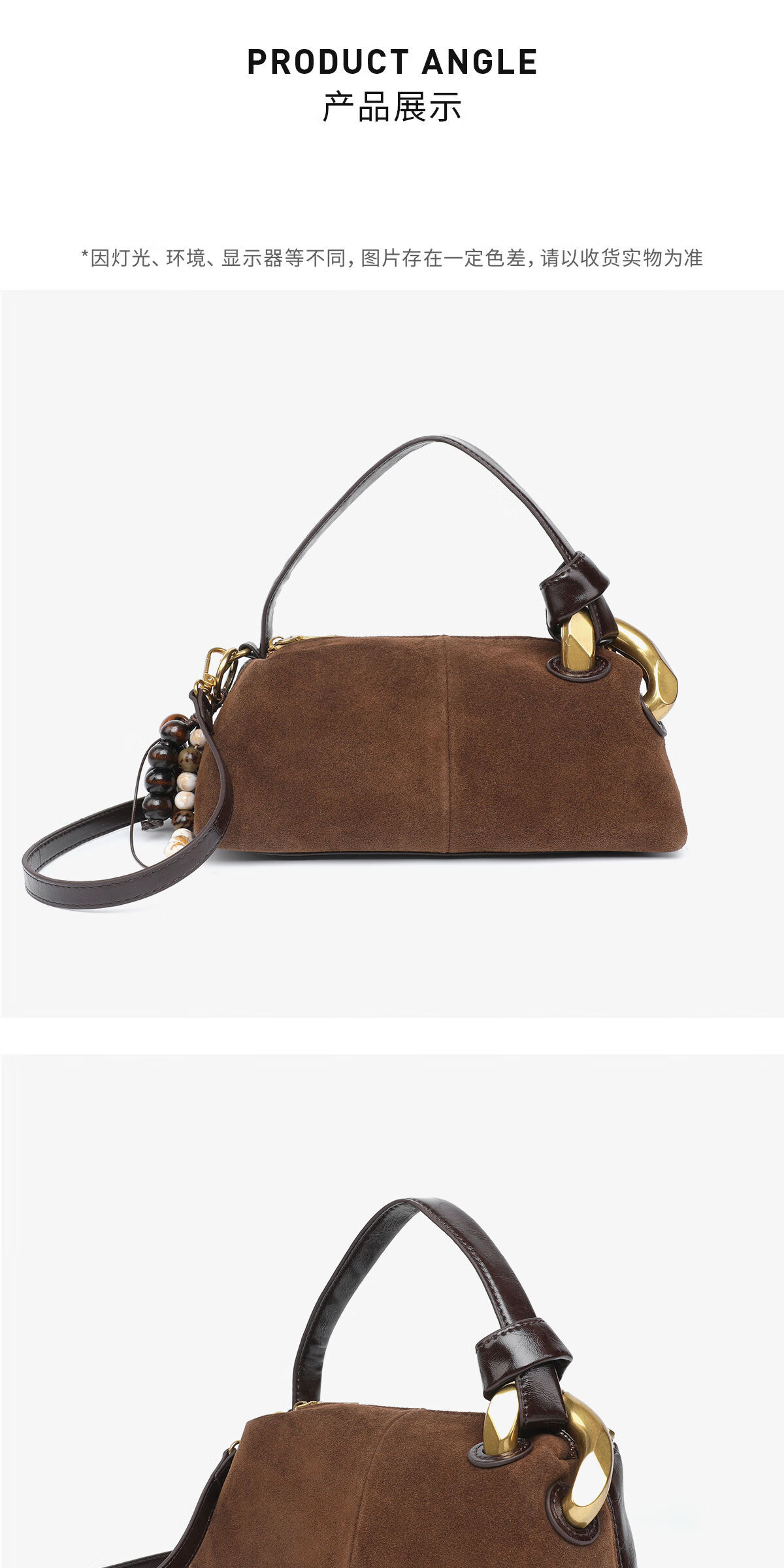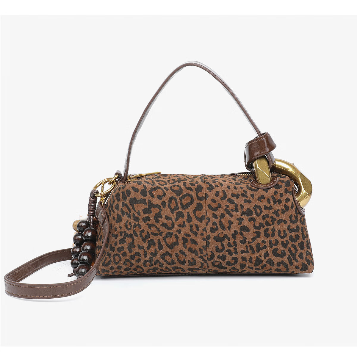 月芽儿时尚珠子挂饰磨砂皮单肩腋下包包大容量休闲洋气百搭手提包 摩卡69