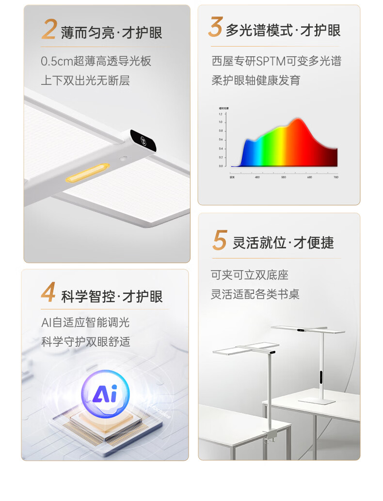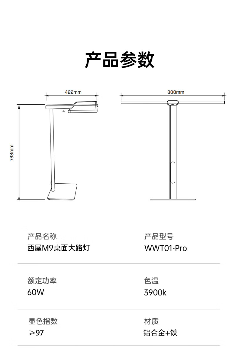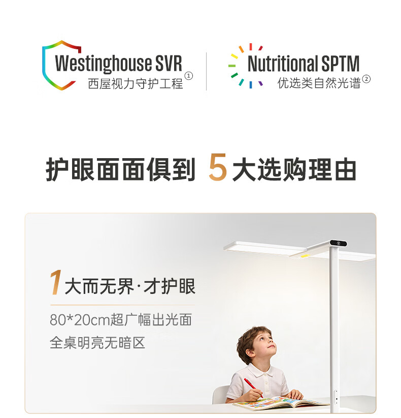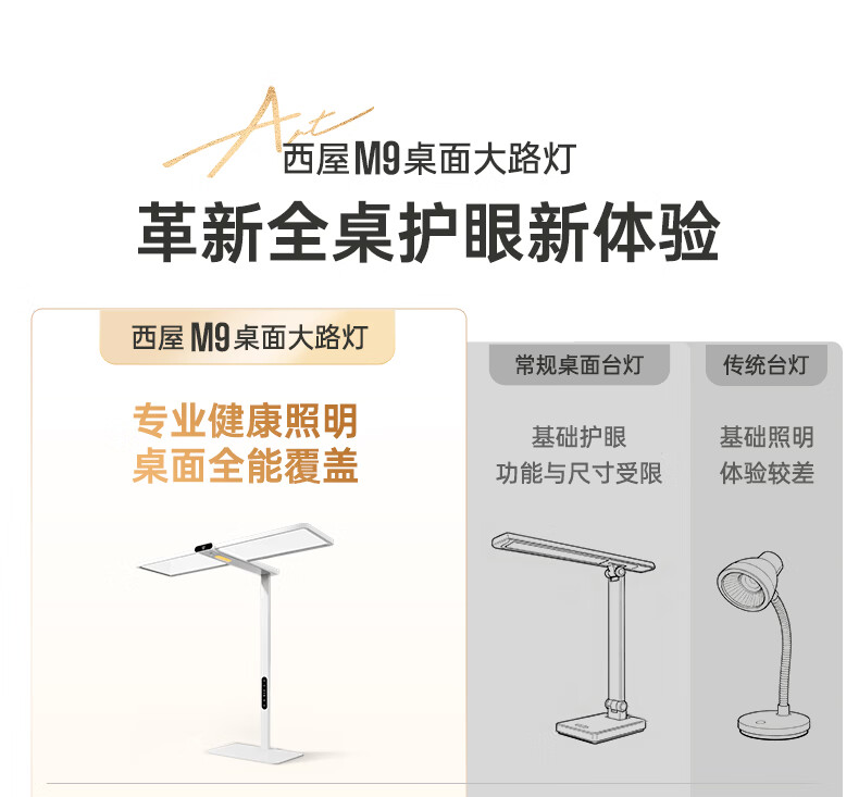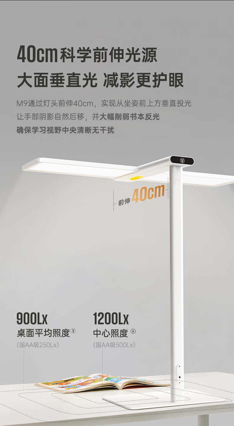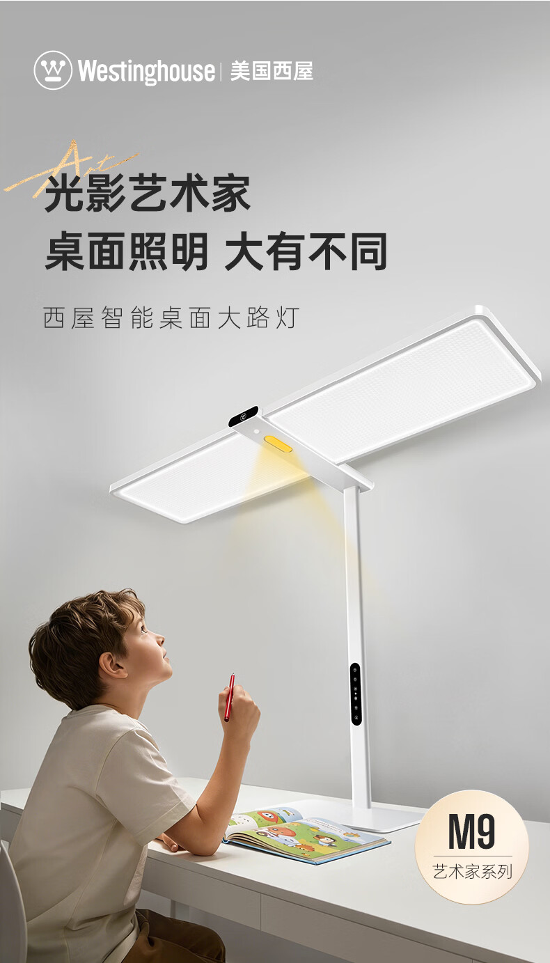 西屋(Westinghouse)桌面大路灯护眼台灯学习儿童学生书桌宿舍阅读灯全光谱护眼灯M9 M9pro台式夹式
