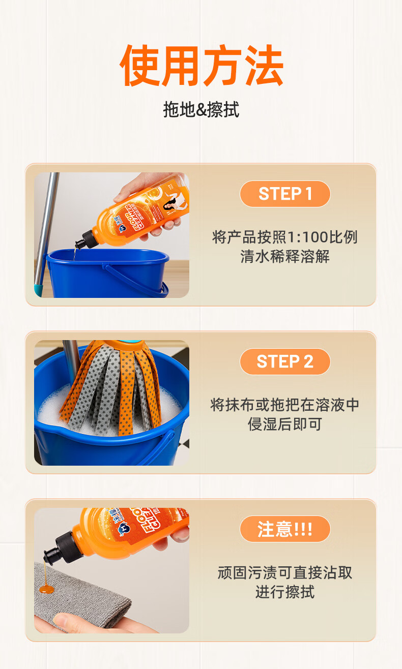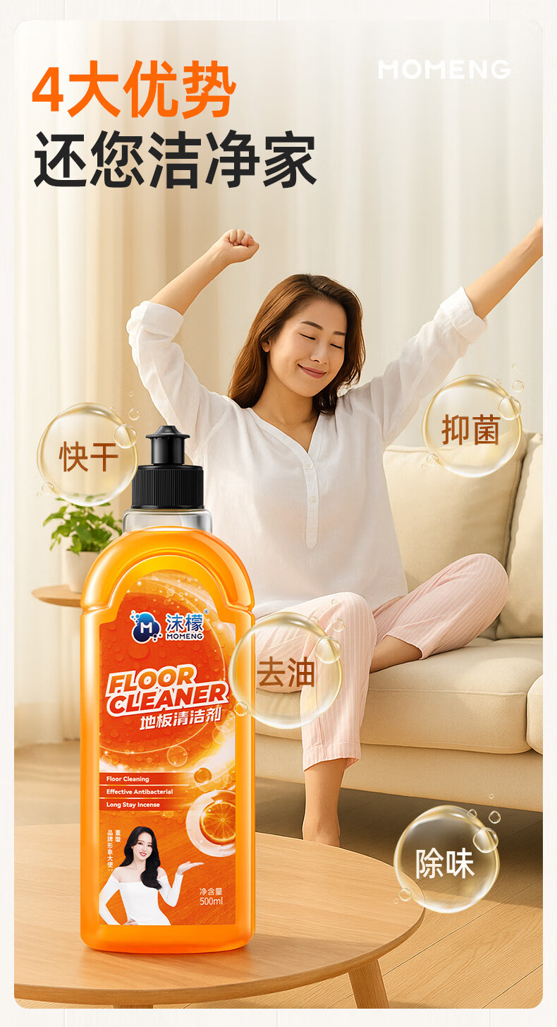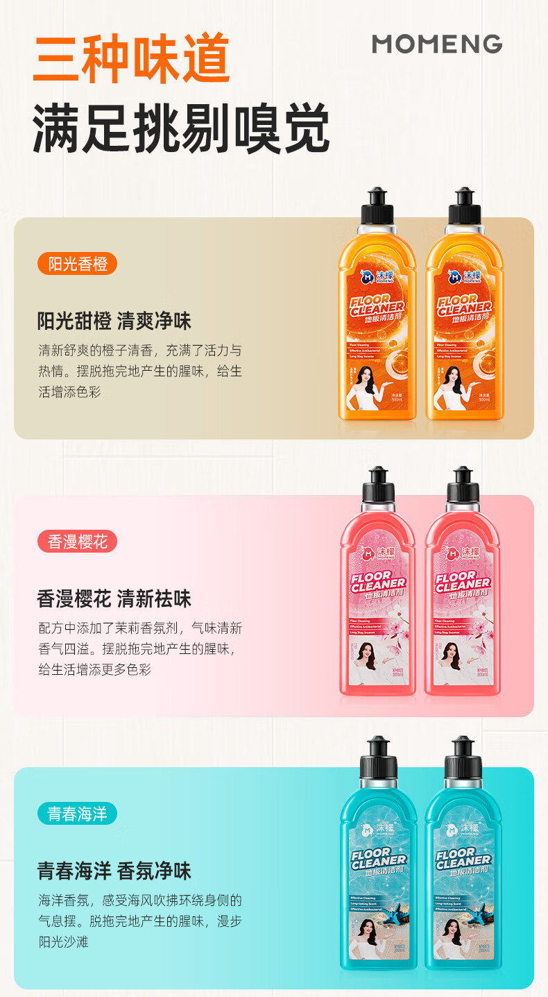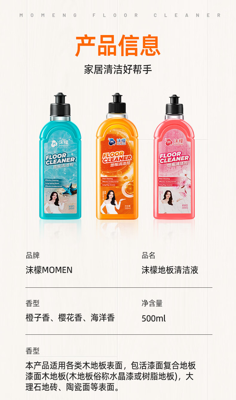 沫檬地板清洁剂3瓶 地板清洗剂拖地瓷砖地砖清洁剂扫地机洗地机去污剂