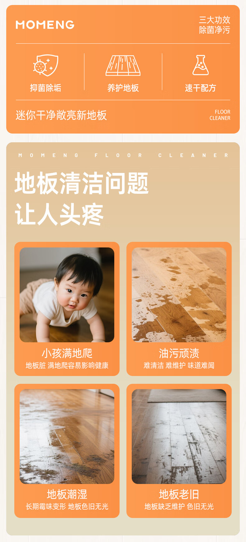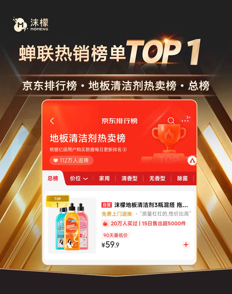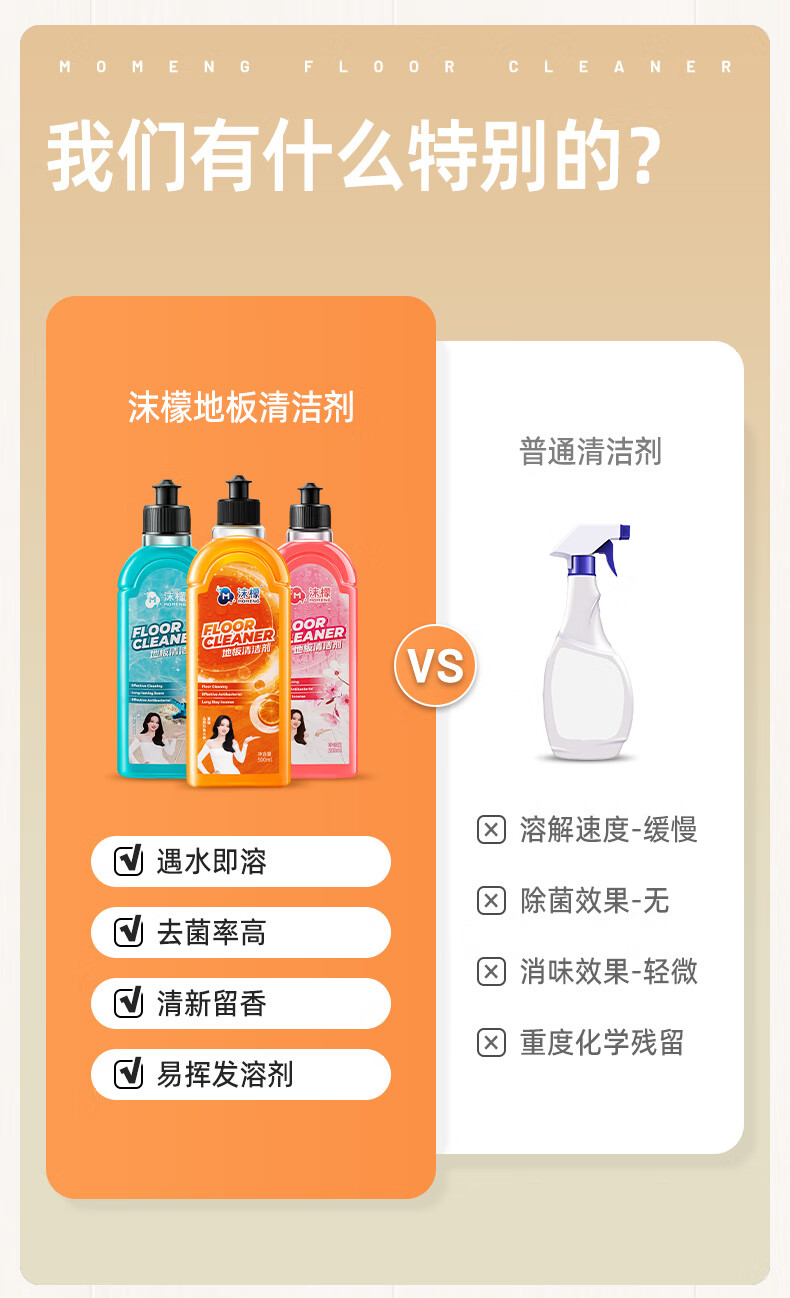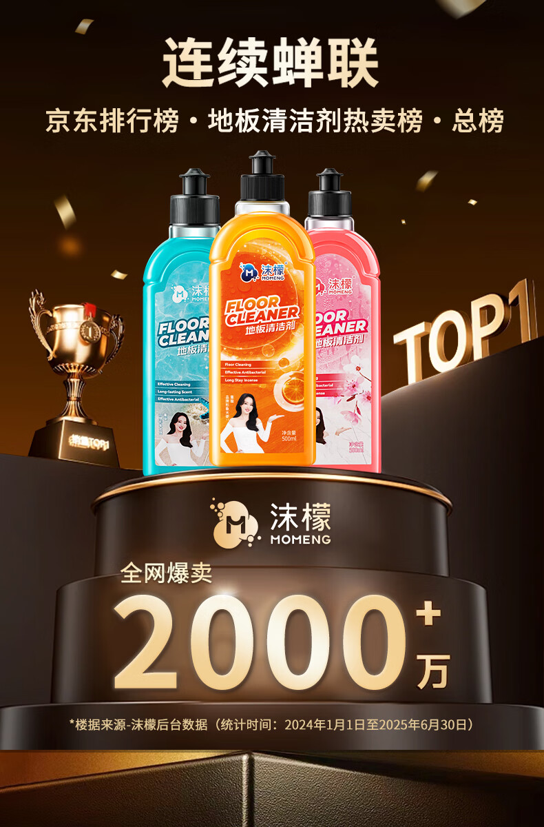 沫檬地板清洁剂3瓶 地板清洗剂拖地瓷砖地砖清洁剂扫地机洗地机去污剂