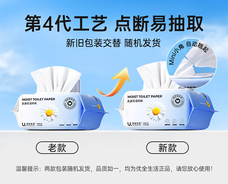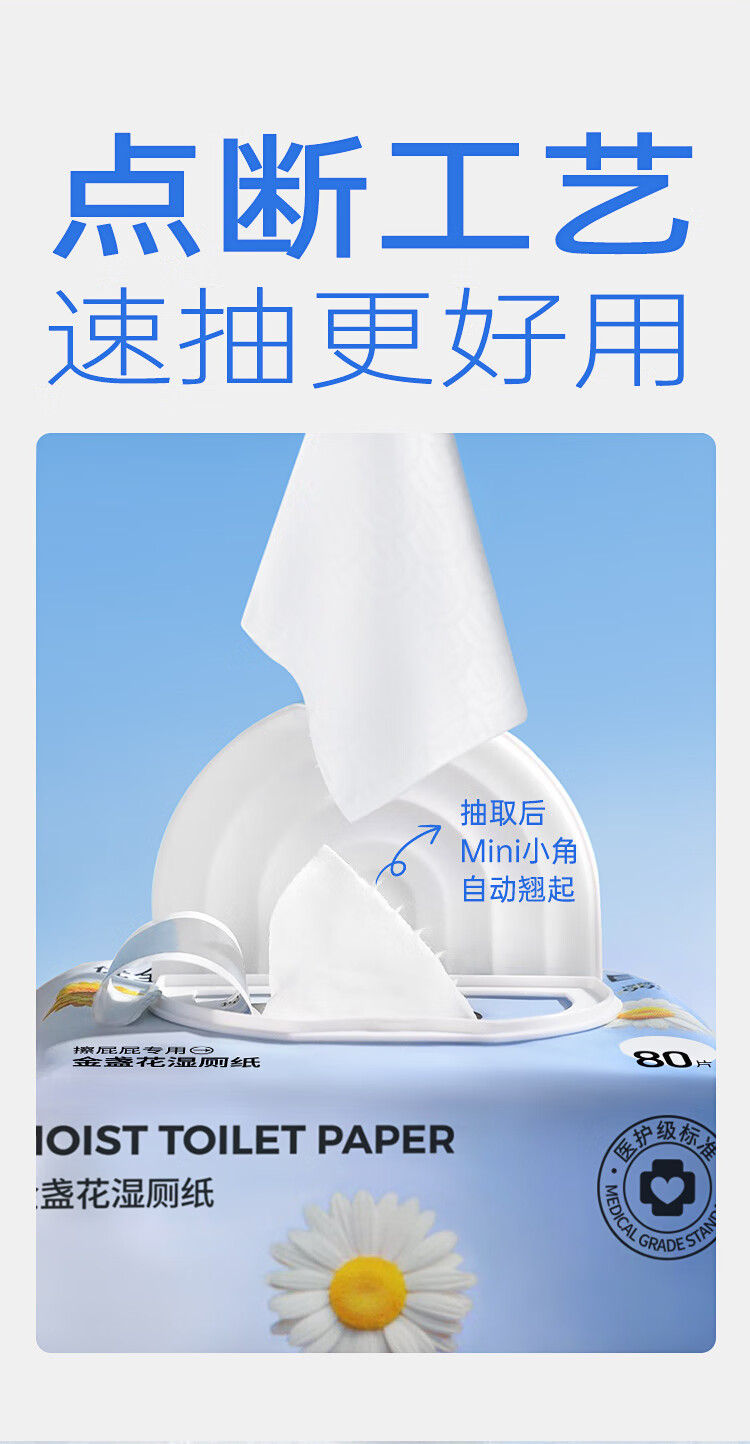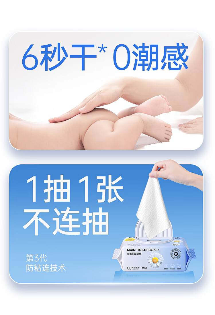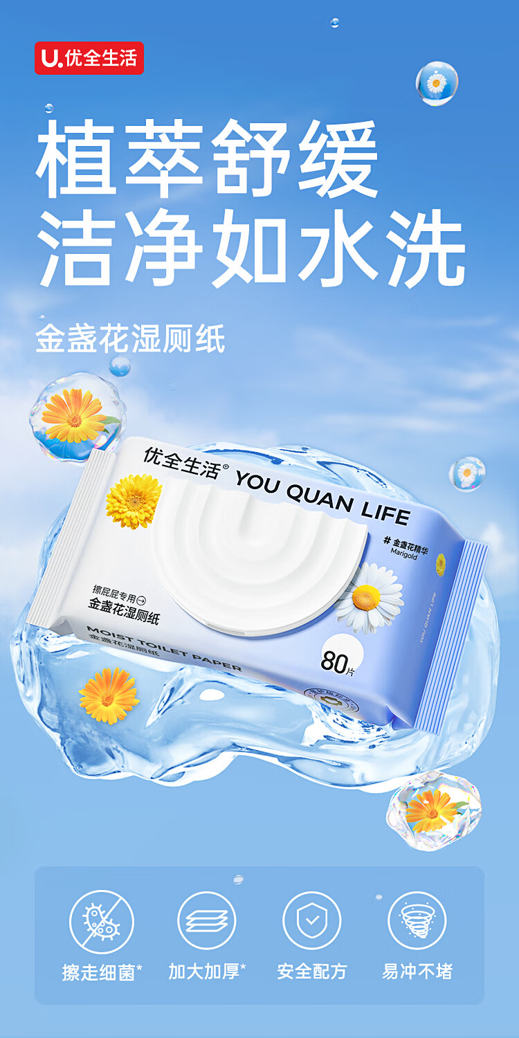 优全生活湿厕纸80抽*3包金盏花M码加厚清洁湿纸巾擦屁股男女如洁厕巾超值
