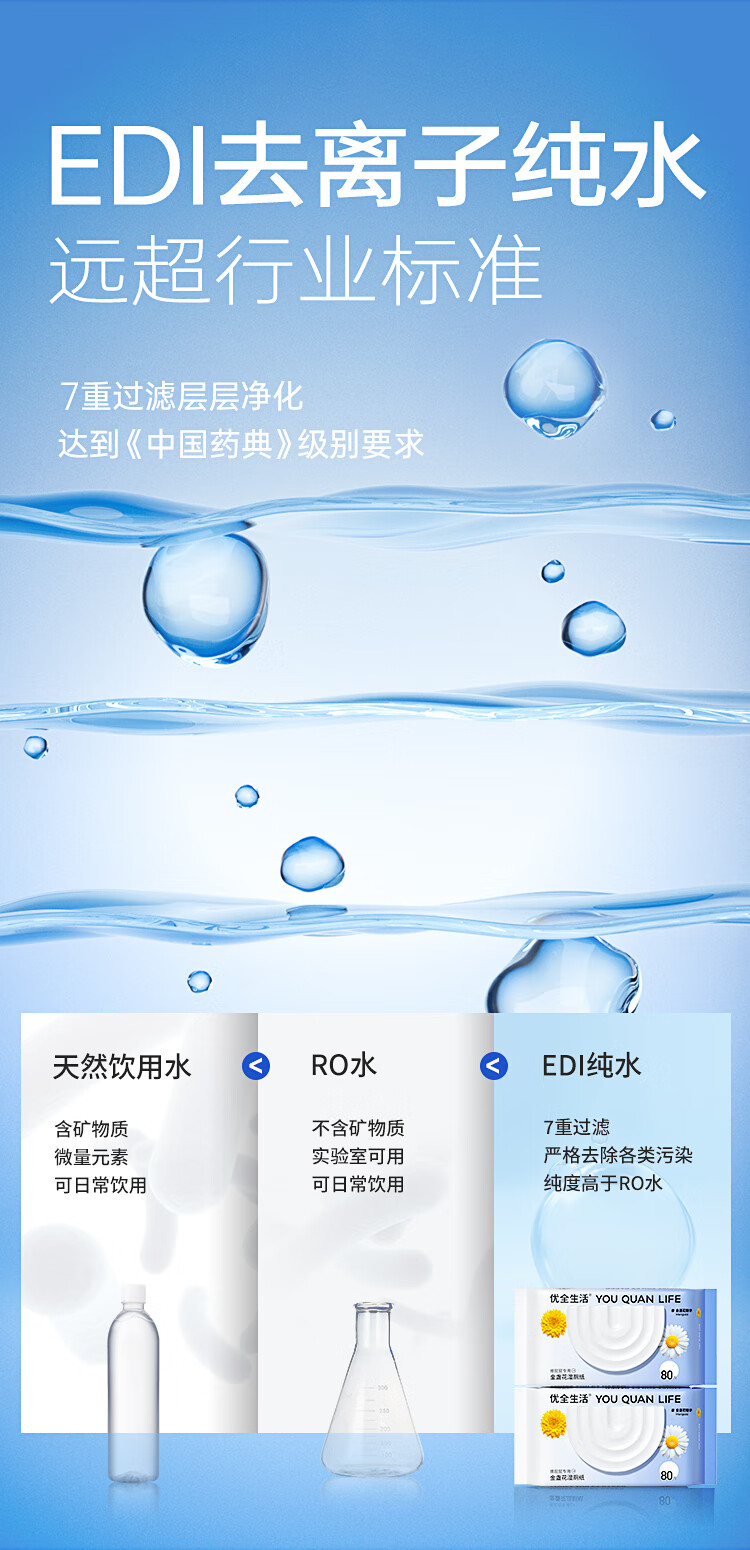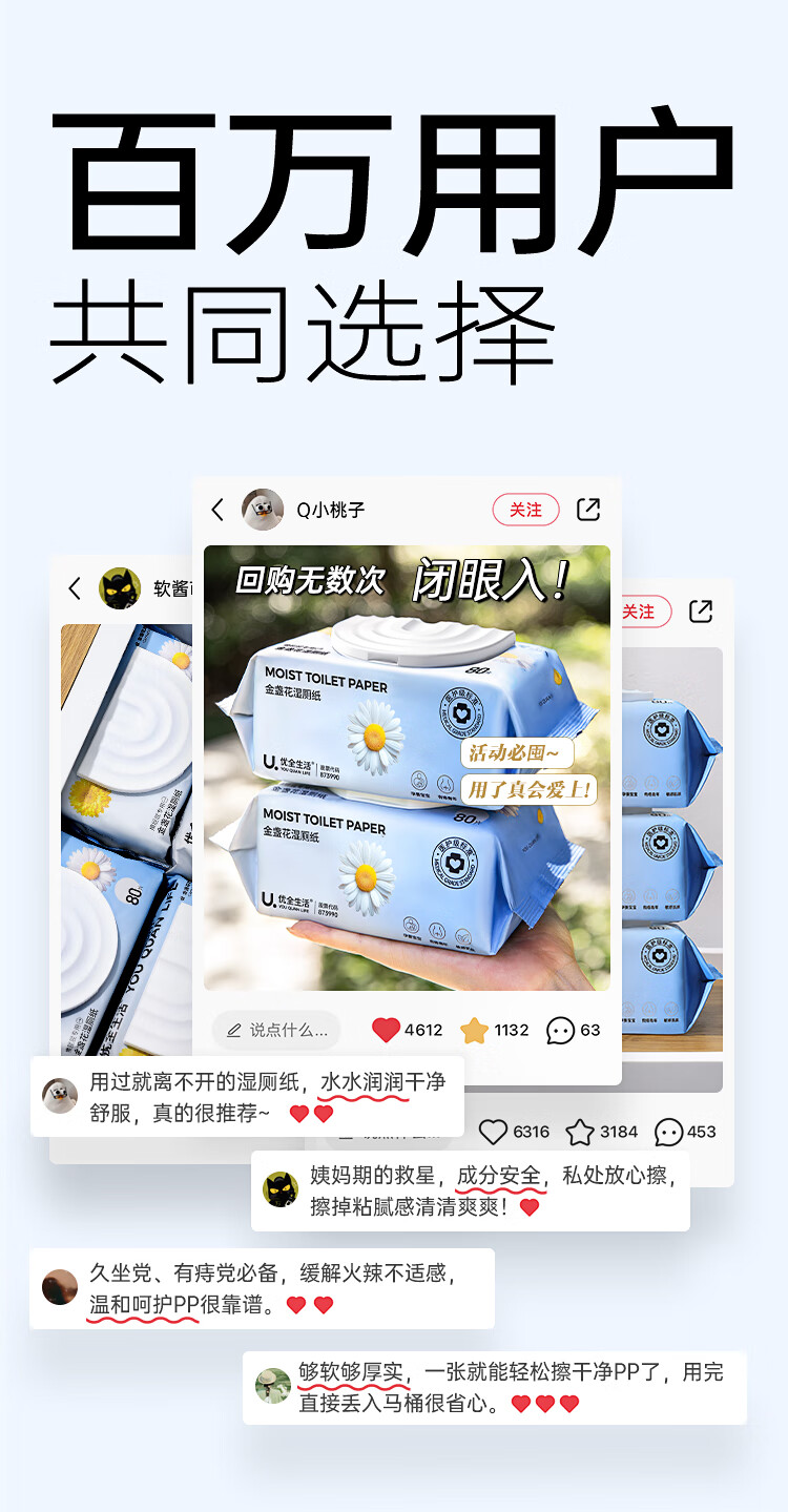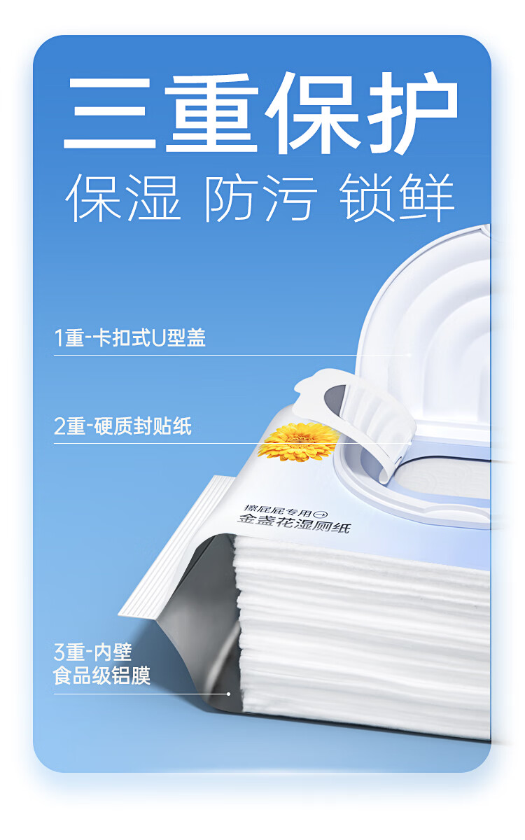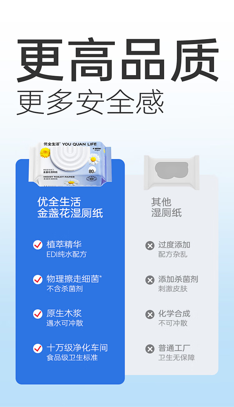 优全生活湿厕纸80抽*3包金盏花M码加厚清洁湿纸巾擦屁股男女如洁厕巾超值