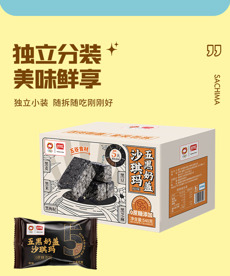 盼盼五黑沙琪玛 休闲零食面包糕点下午茶点心养生健康代餐 540g/盒