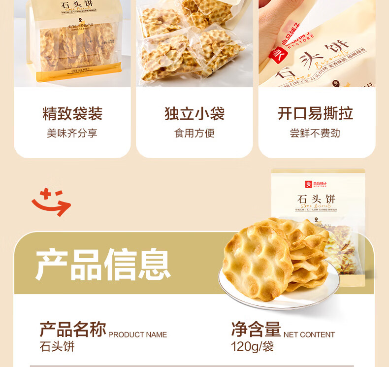 良品铺子石头饼120g烤馍非油炸老人山西特产饱腹糕点休闲小零食烤馍片
