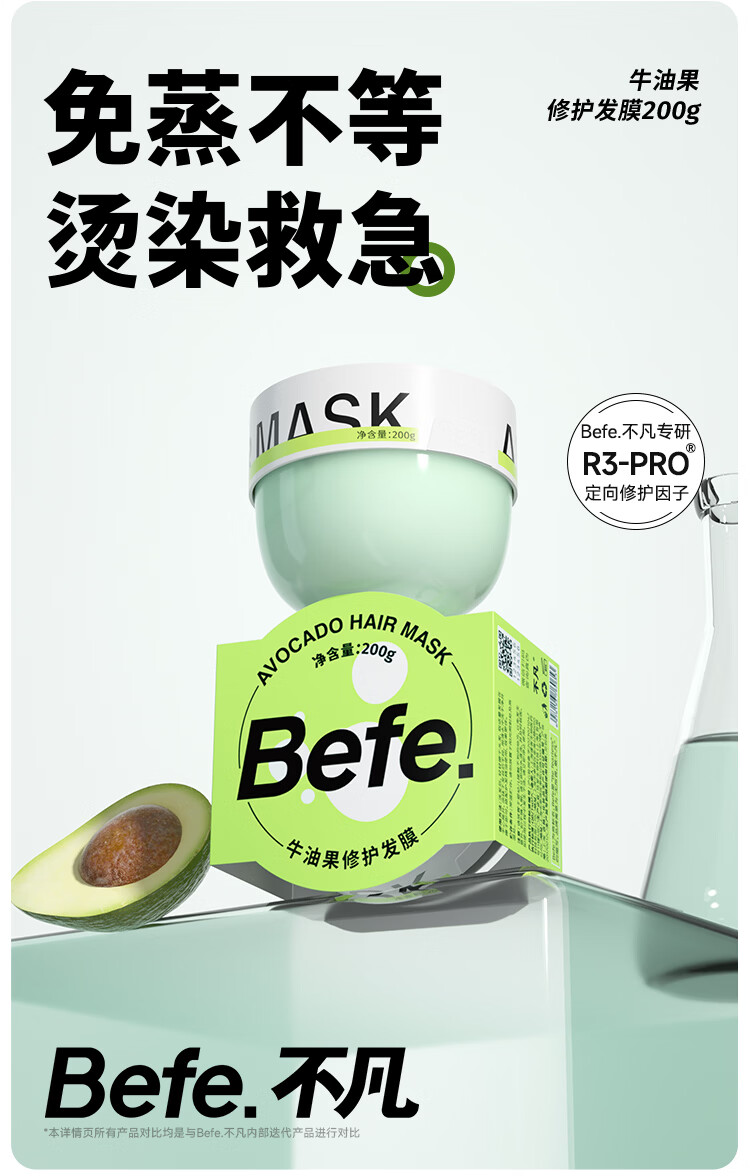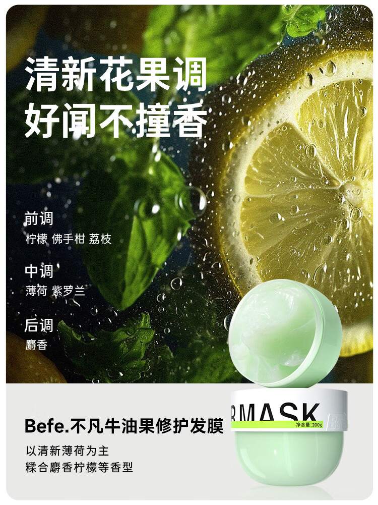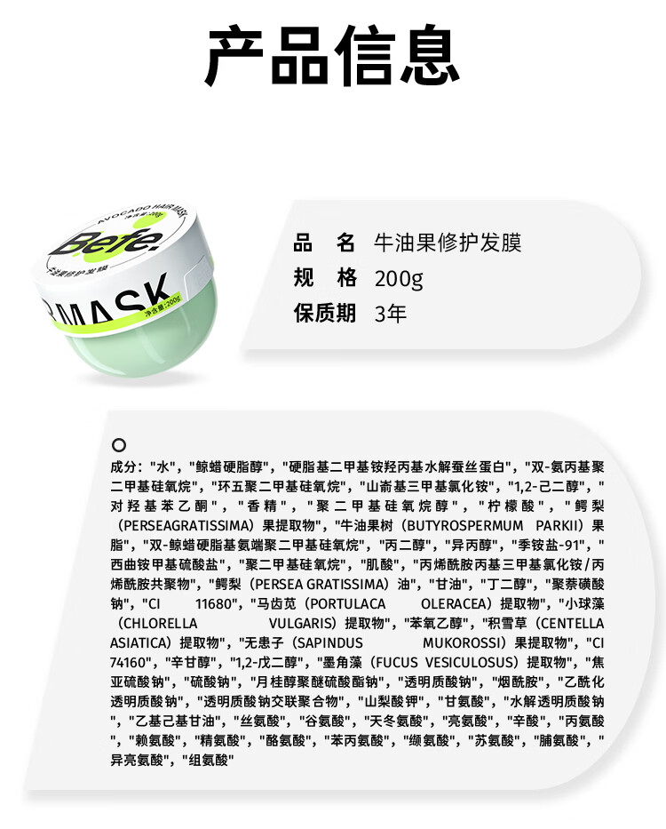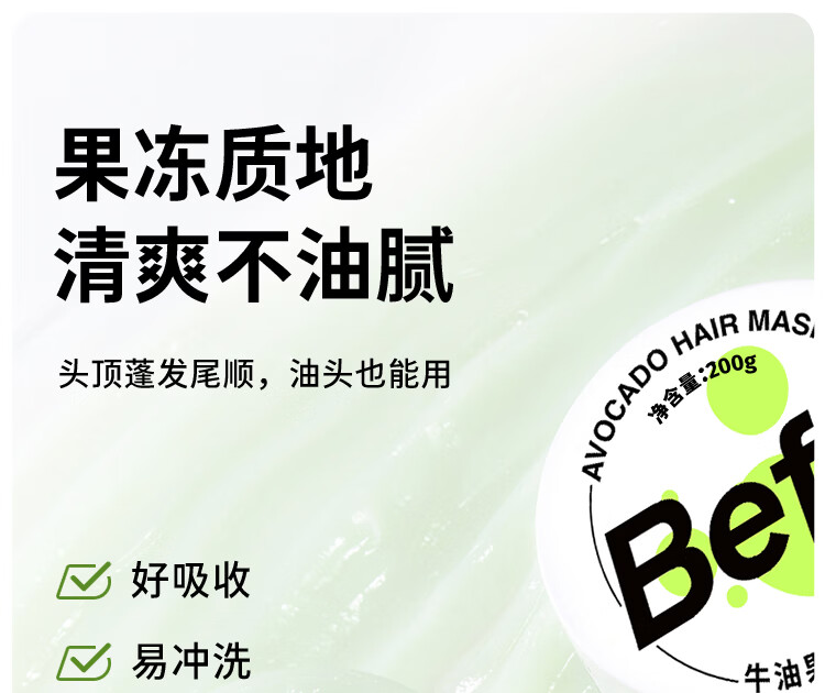 BeFe牛油果修护发膜200g 滋养护发京东自营保湿修护柔顺发丝抚平毛躁