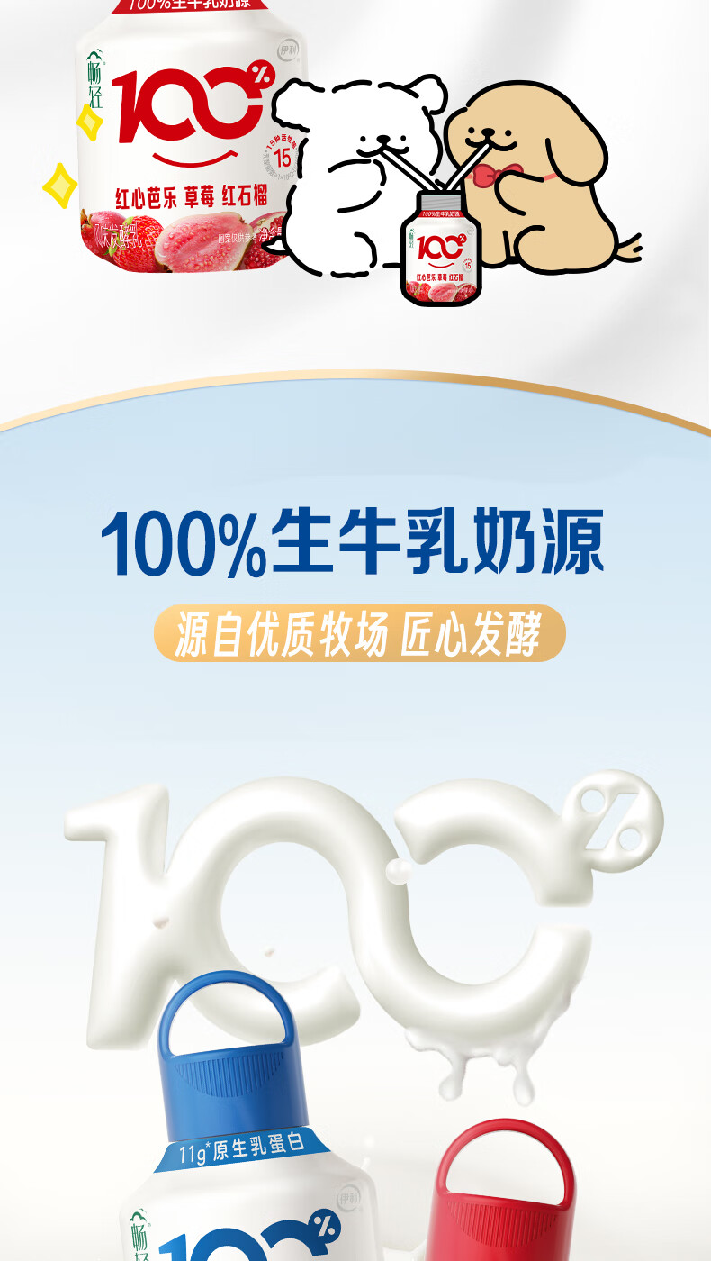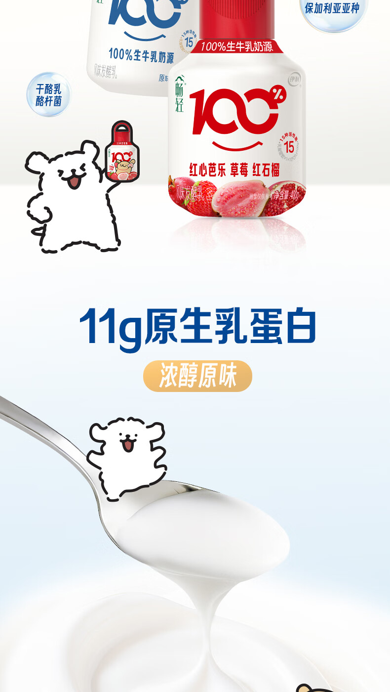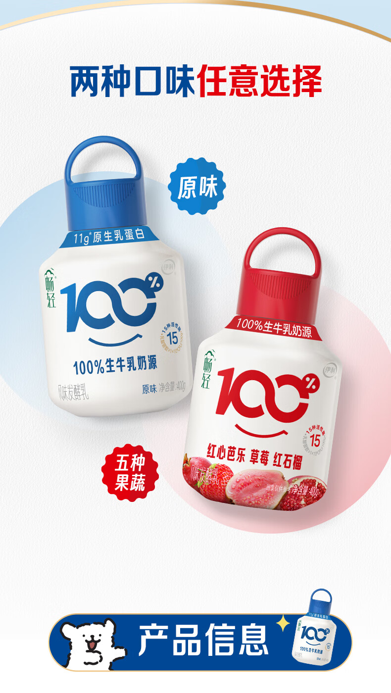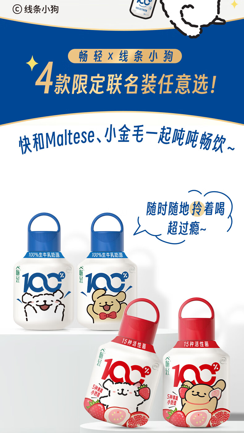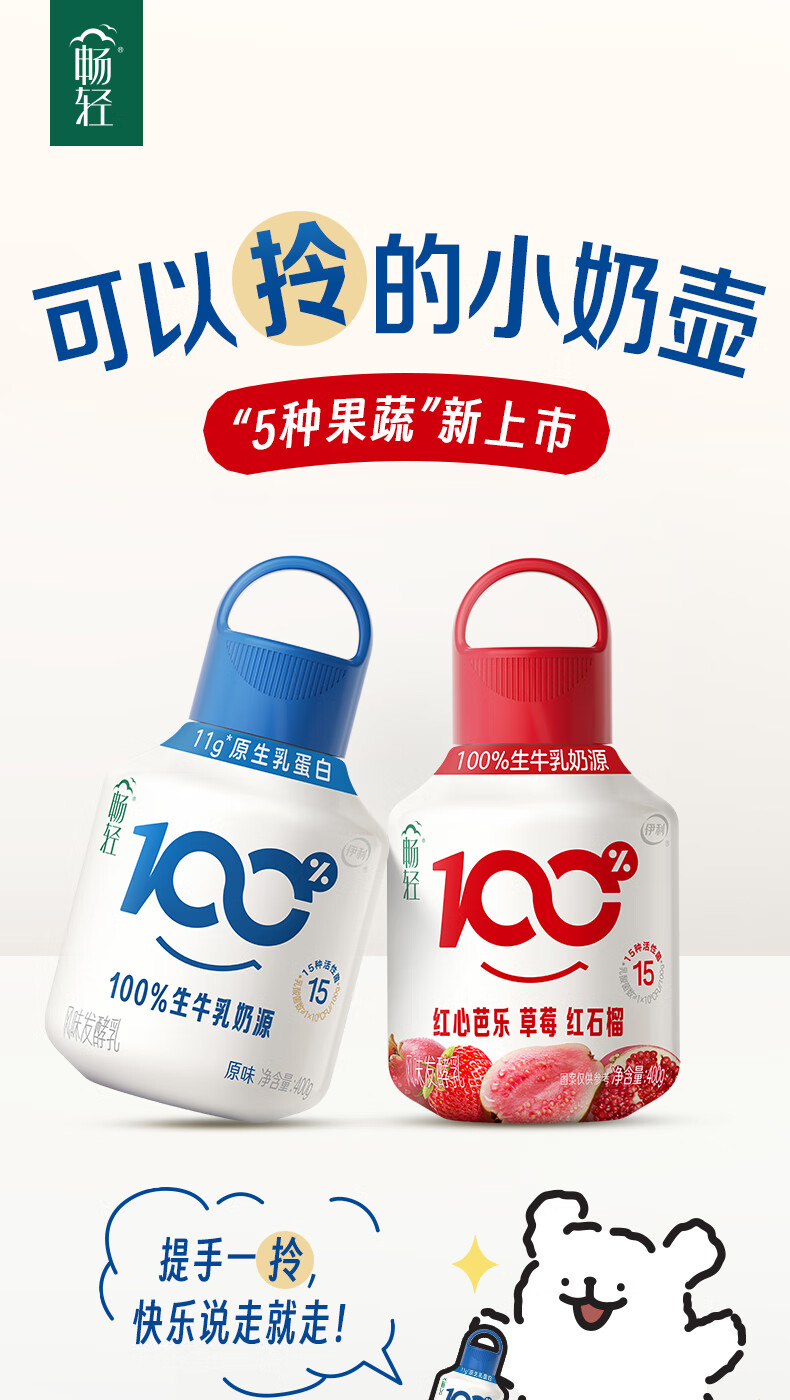伊利畅轻线条小狗小奶壶酸奶原味400g*5瓶+果蔬400g*5瓶 源头直发包邮