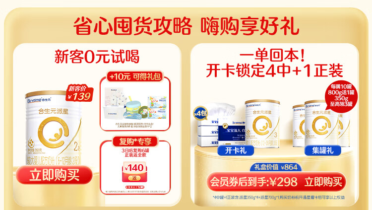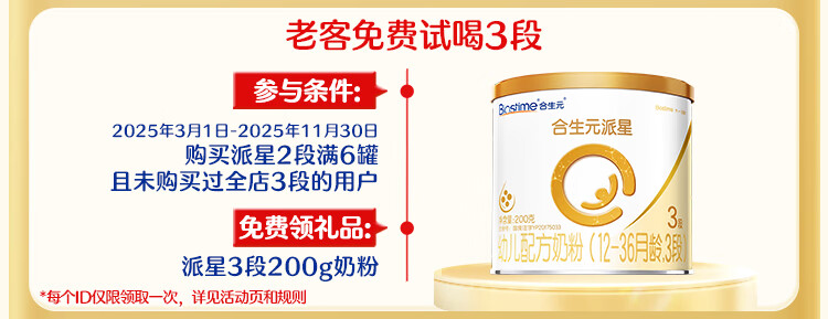 合生元(BIOSTIME)派星 较大婴儿配方奶粉 2段(6-12个月)新国标 800克*6罐