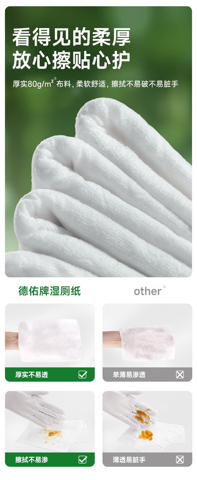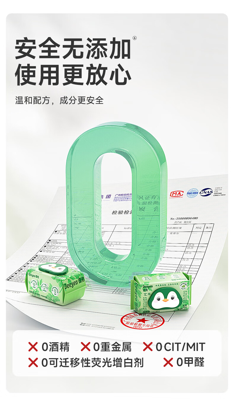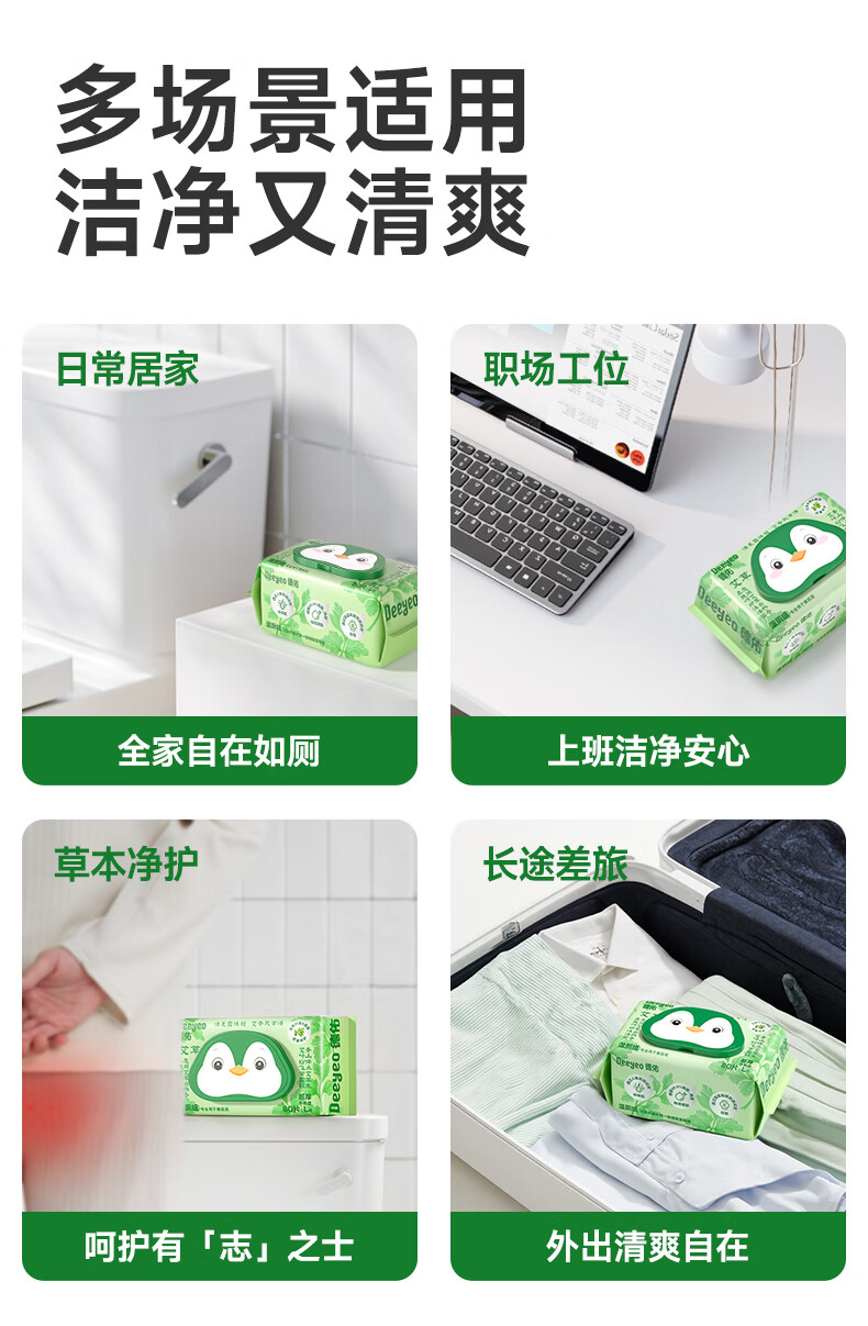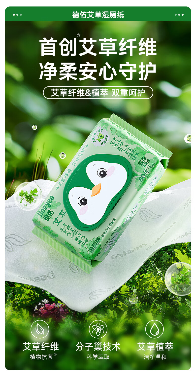 德佑艾草湿厕纸家庭装80抽*6包 私护洁厕如厕湿纸巾 植物抗菌可冲马桶