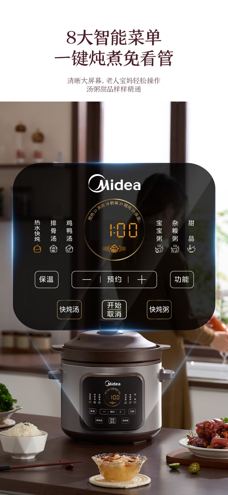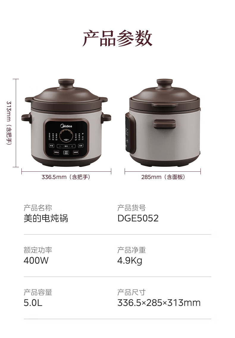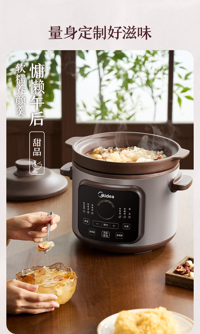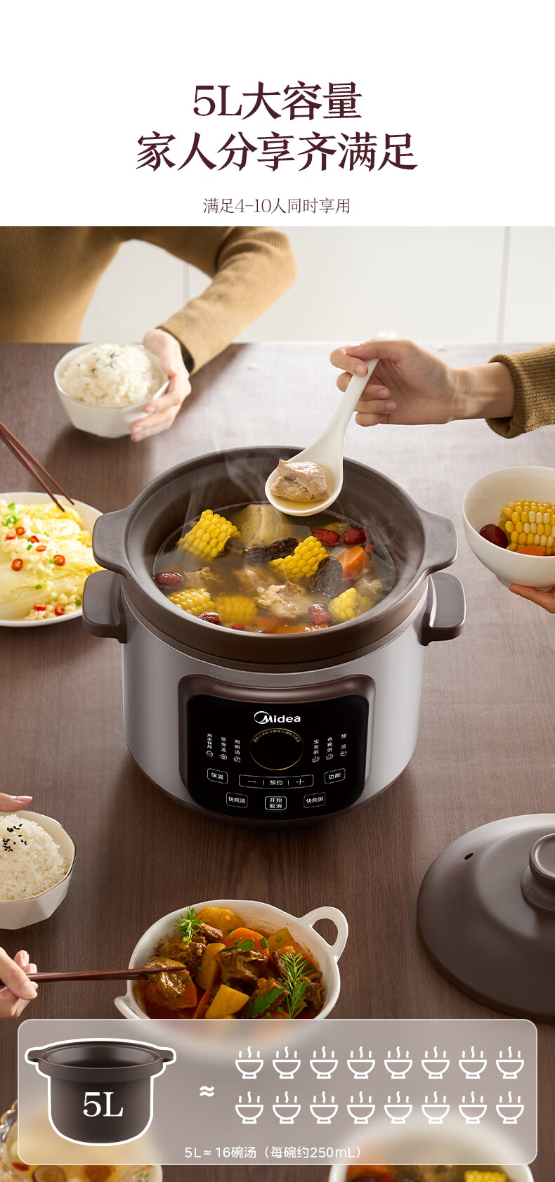 美的(Midea)电炖锅电砂锅电煮锅炖汤盅电炖盅煲汤煮粥紫陶胆炖锅电煮锅5L 60min快炖大火一体多功能锅 DGE5052