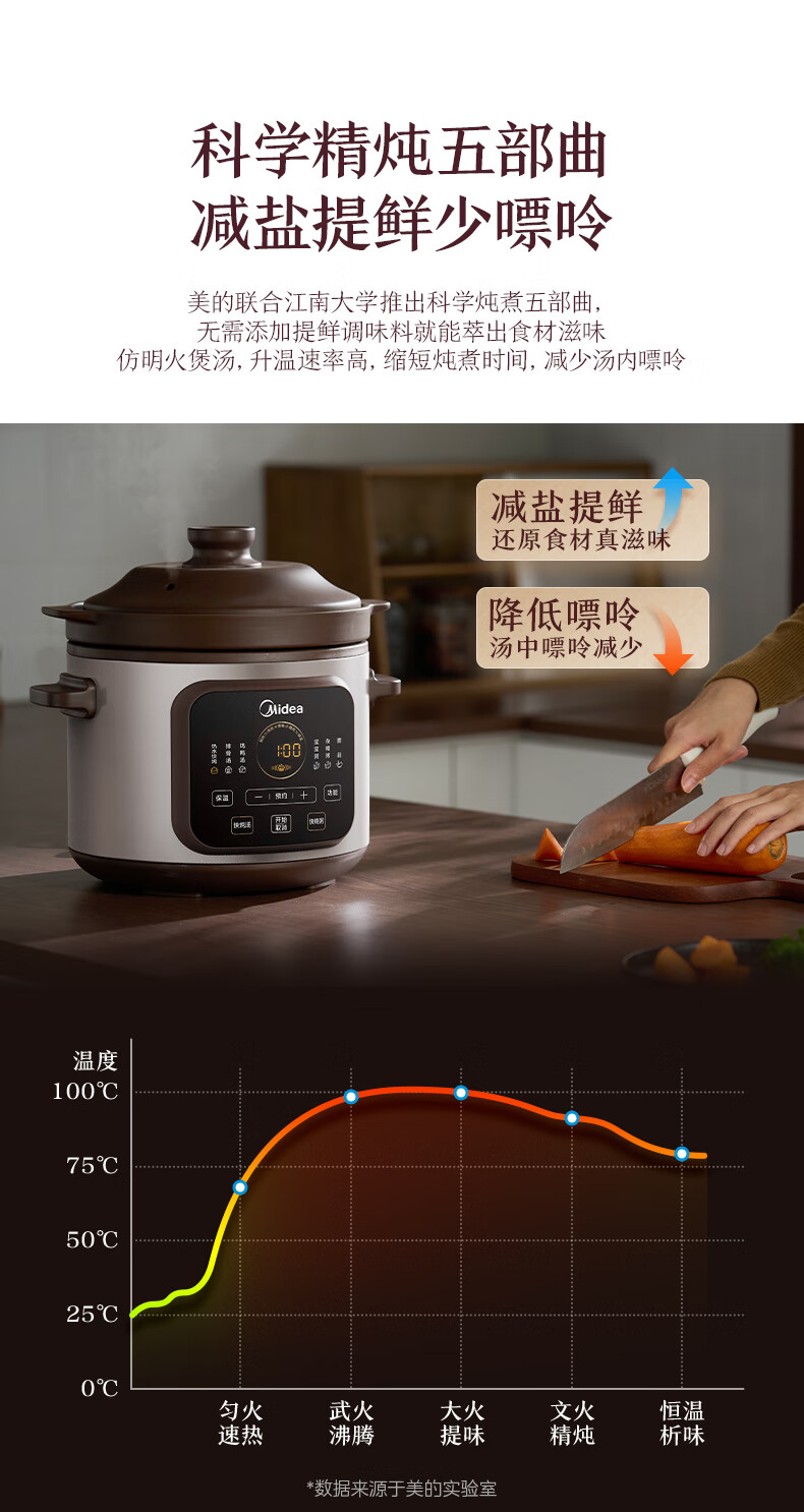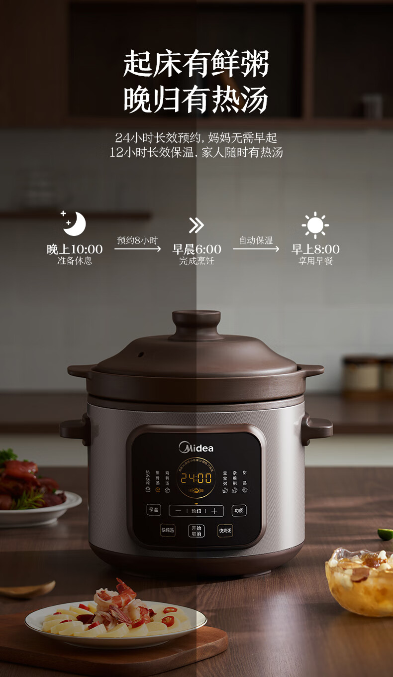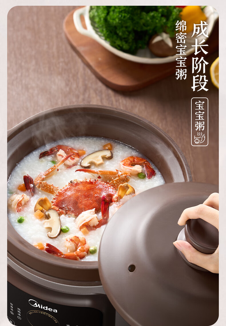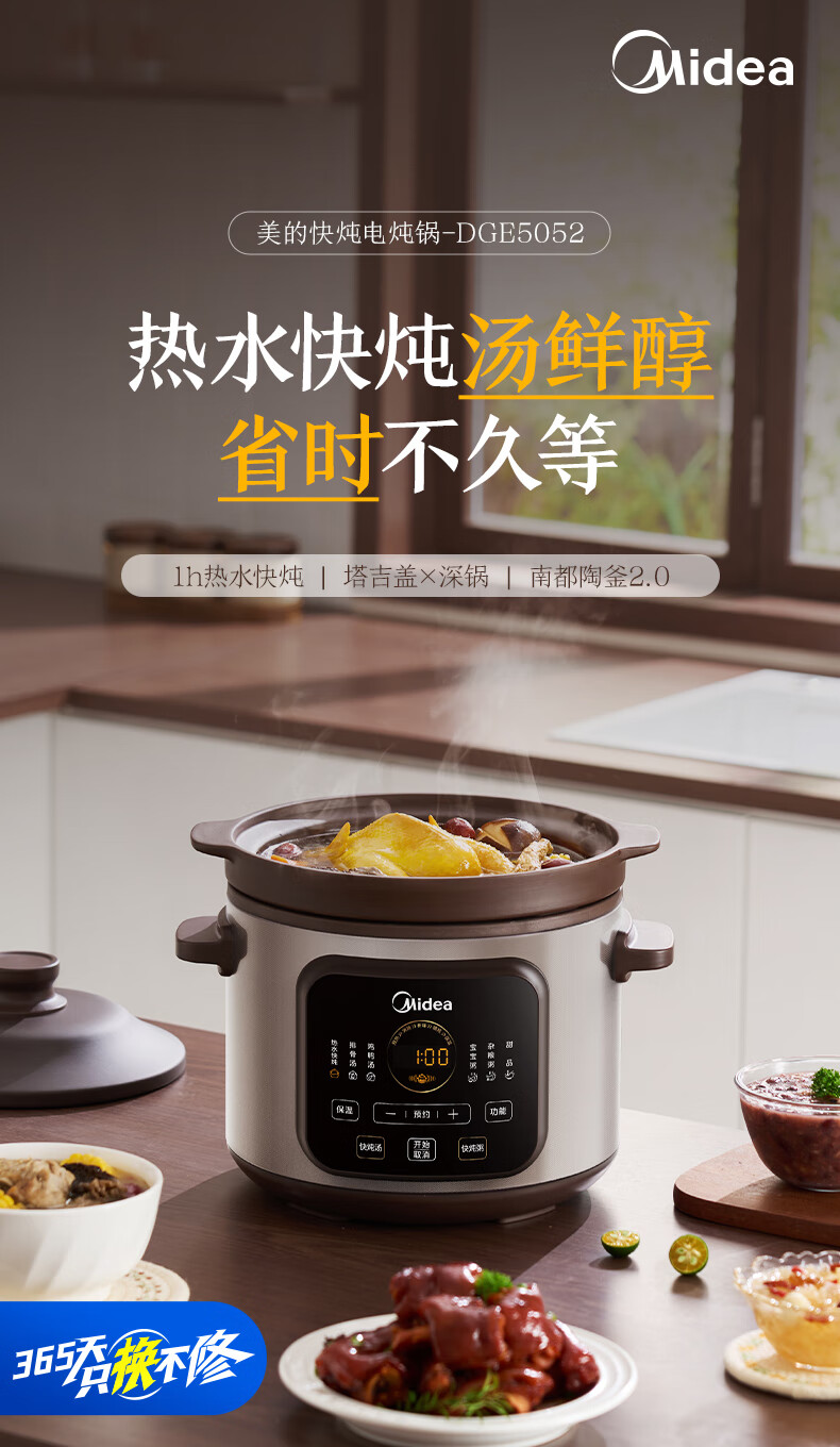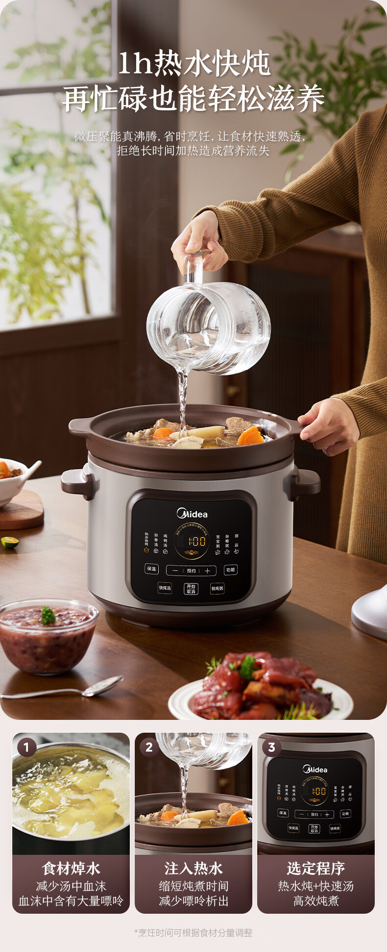 美的(Midea)电炖锅电砂锅电煮锅炖汤盅电炖盅煲汤煮粥紫陶胆炖锅电煮锅5L 60min快炖大火一体多功能锅 DGE5052