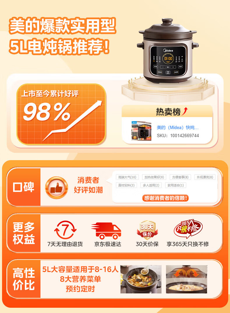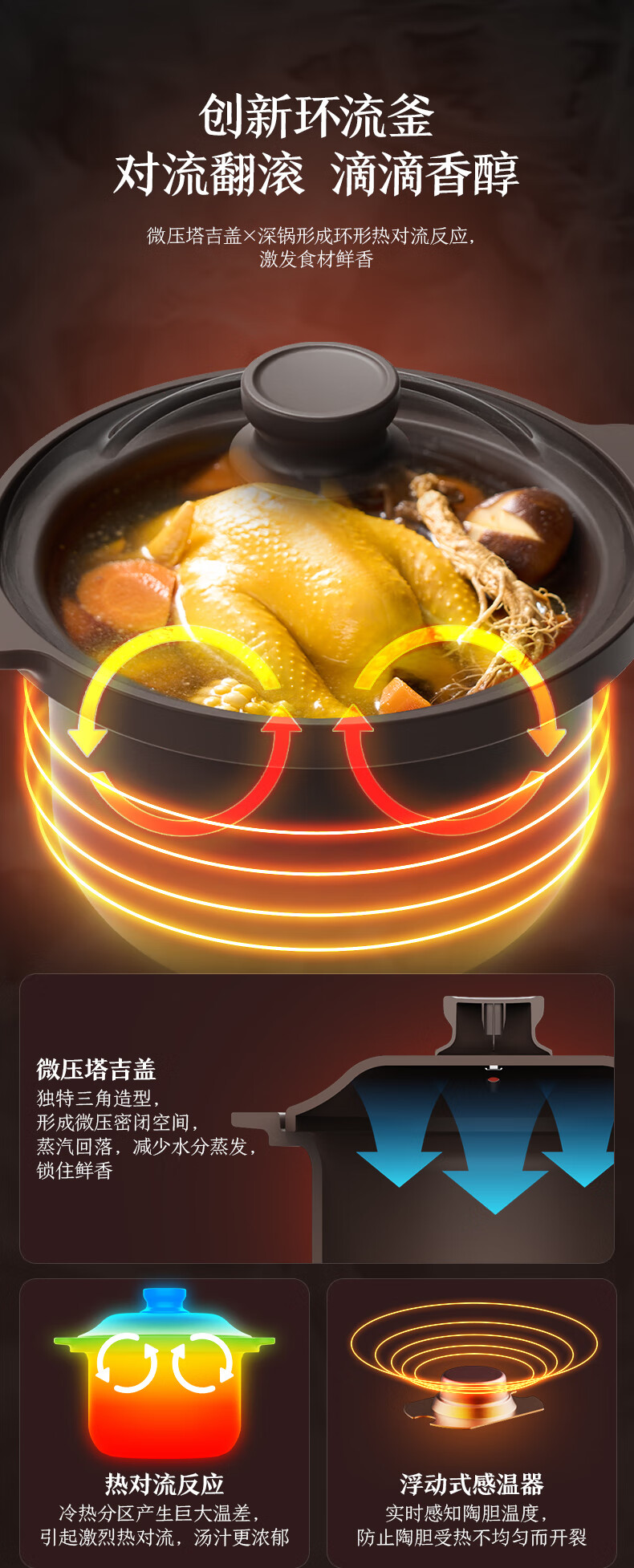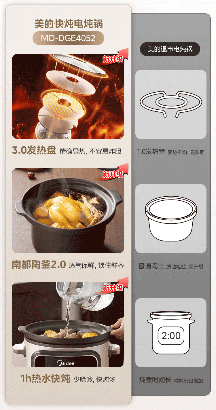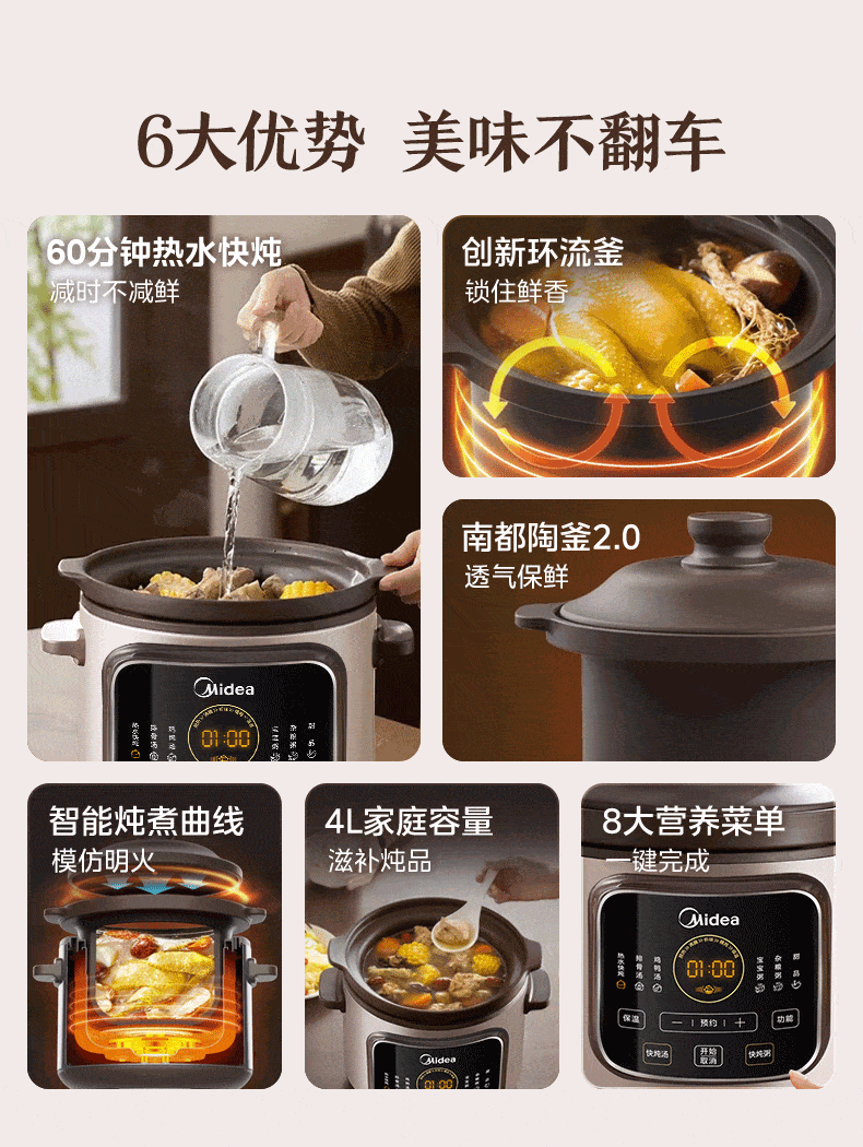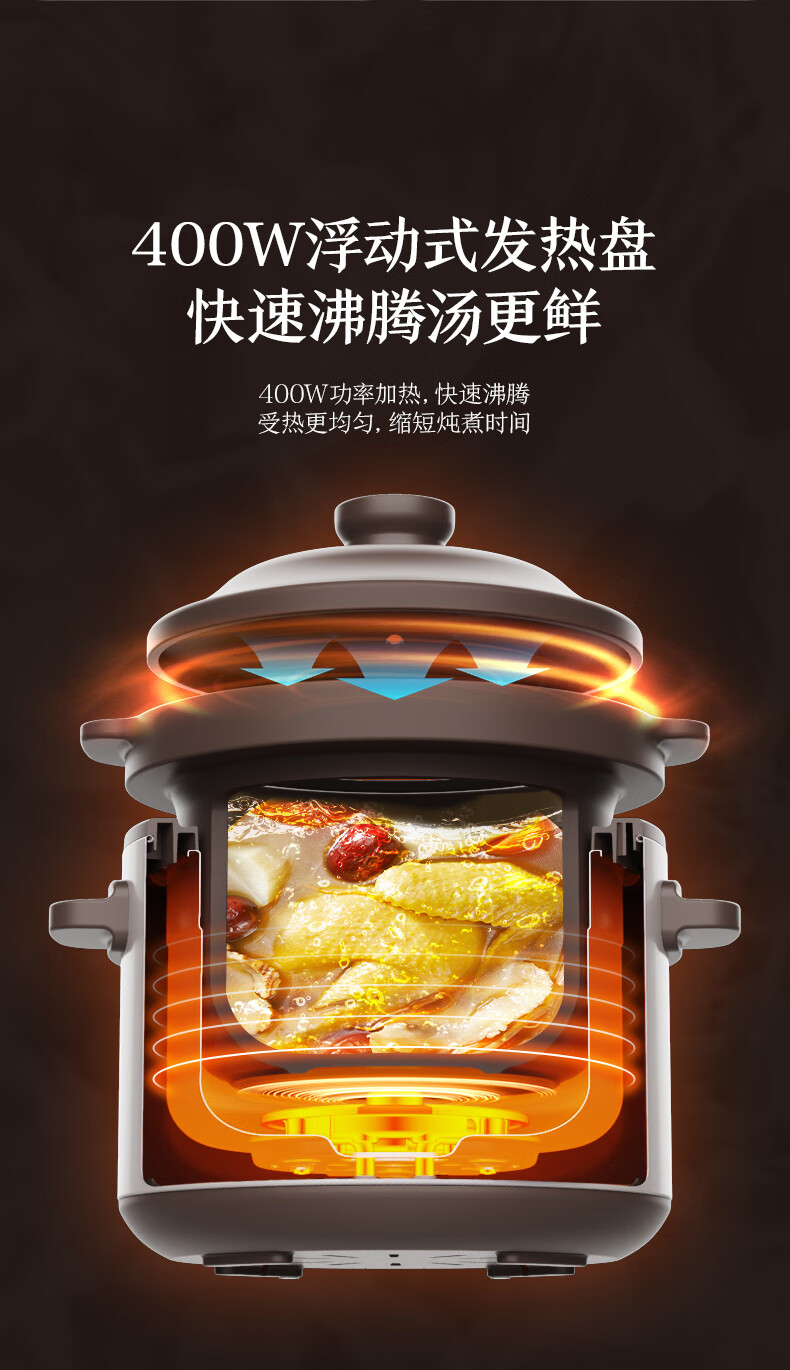 美的(Midea)电炖锅电砂锅电煮锅炖汤盅电炖盅煲汤煮粥紫陶胆炖锅电煮锅5L 60min快炖大火一体多功能锅 DGE5052