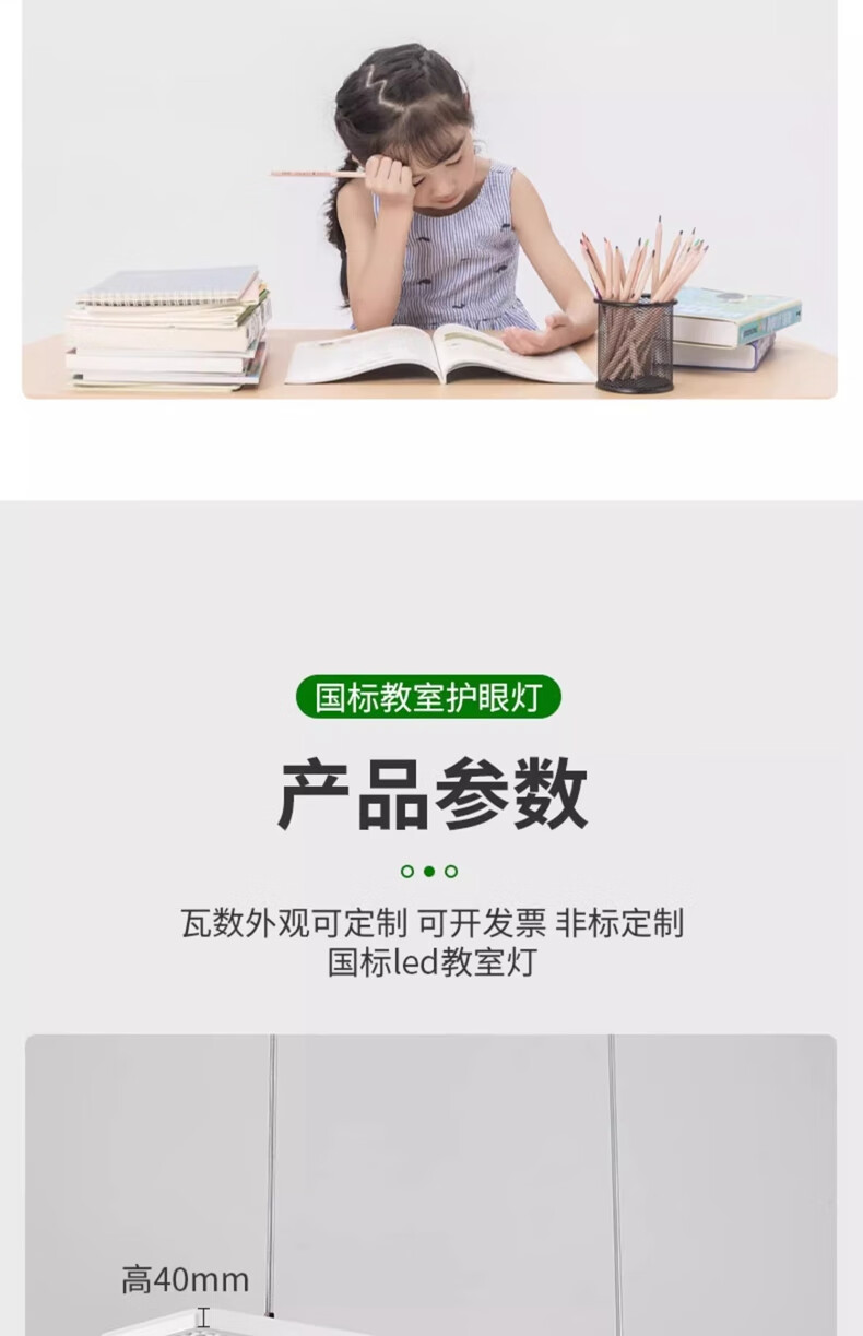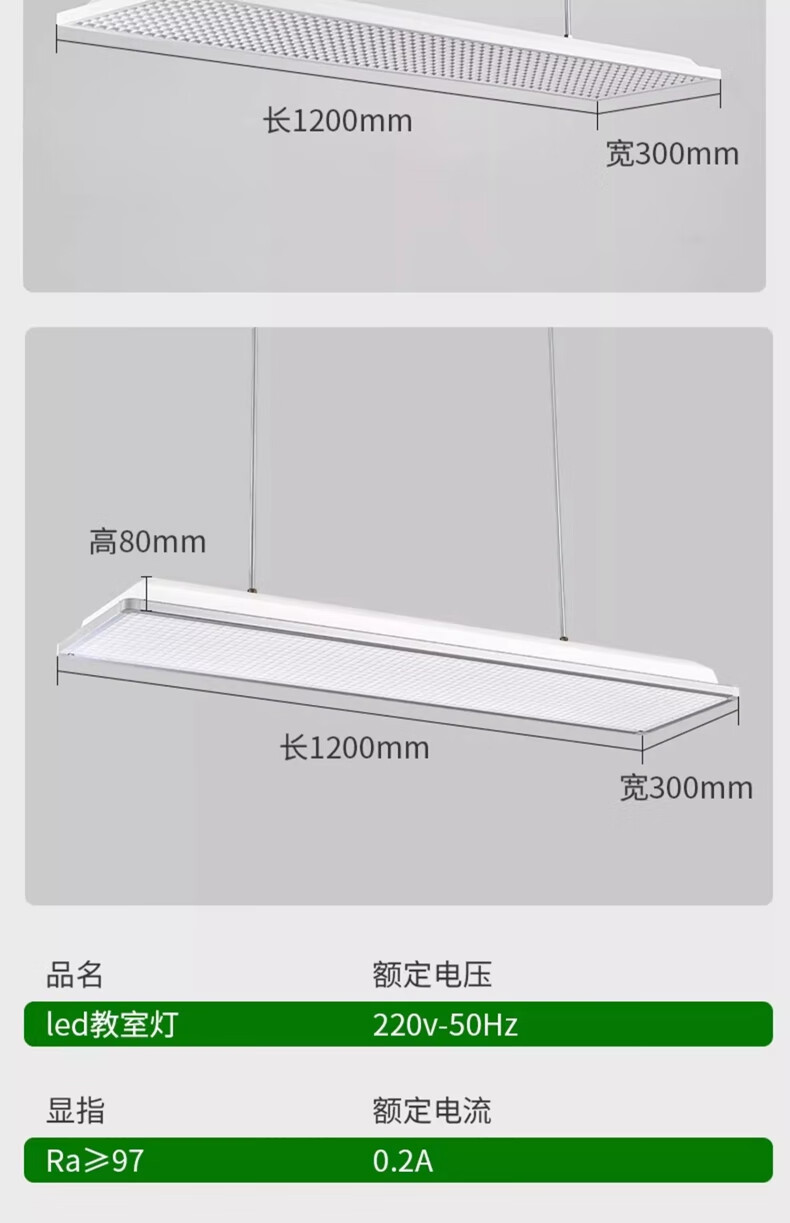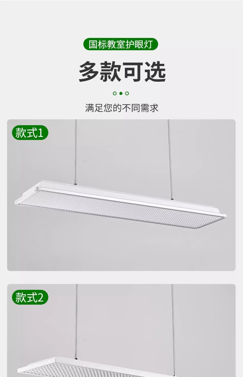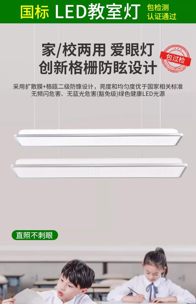 拉伯塔新国标led教室灯长条格栅照明灯学生护眼灯学校办公室防眩黑板灯 【包过检】国标-42W-教室照明准用 【1米吊杆】