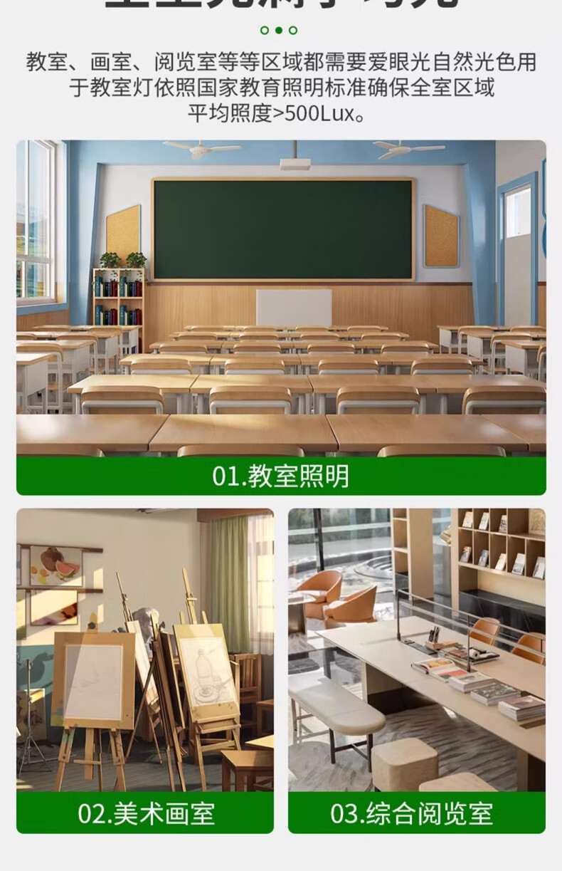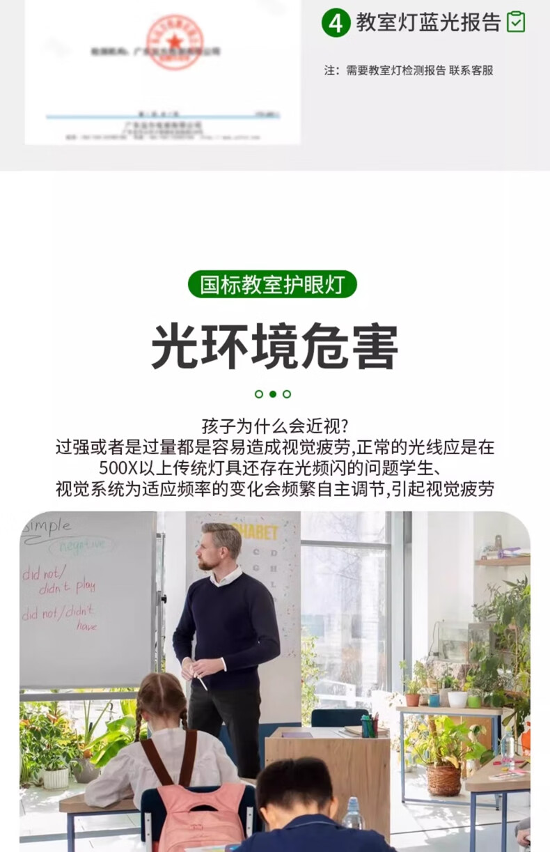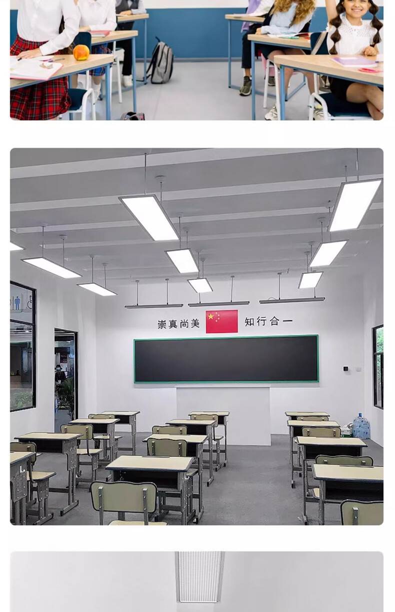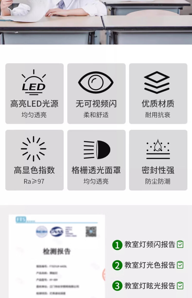 拉伯塔新国标led教室灯长条格栅照明灯学生护眼灯学校办公室防眩黑板灯 【包过检】国标-42W-教室照明准用 【1米吊杆】