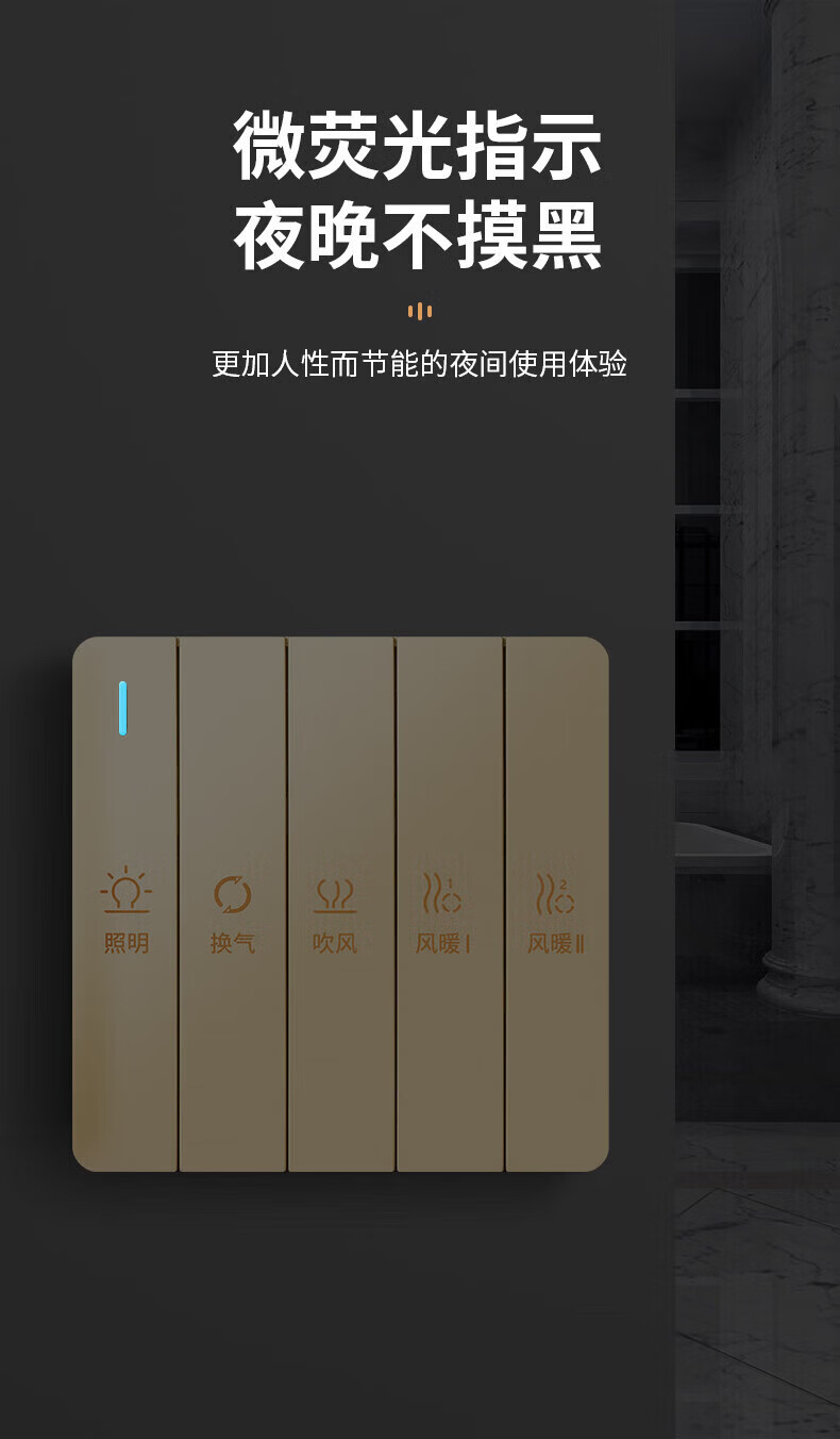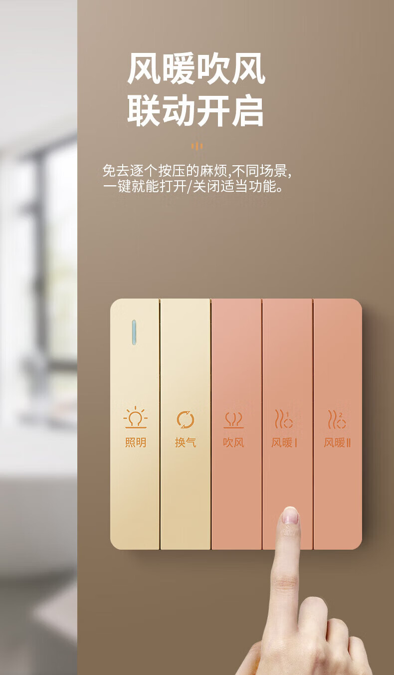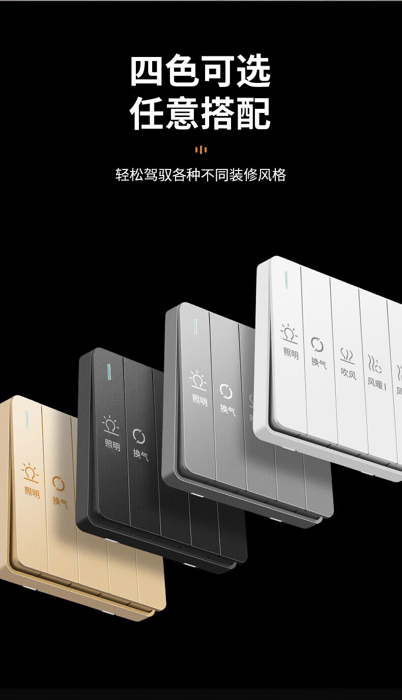 国际电工(FDD)超薄四合一浴霸开关家用浴室卫生间排气扇照明一体取暖暗装面板 雅白-琴键四开