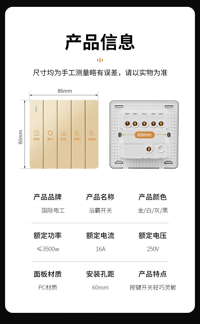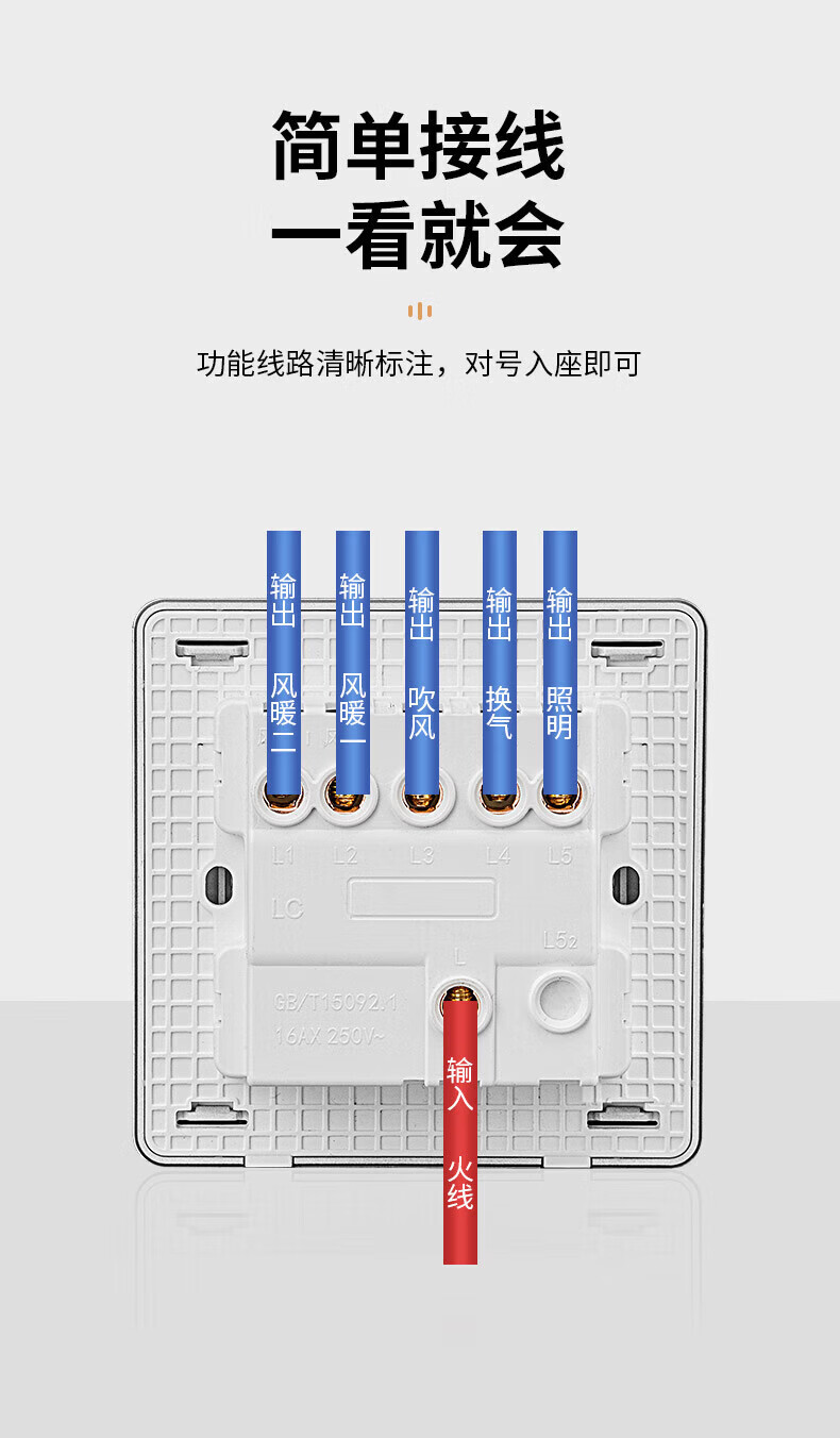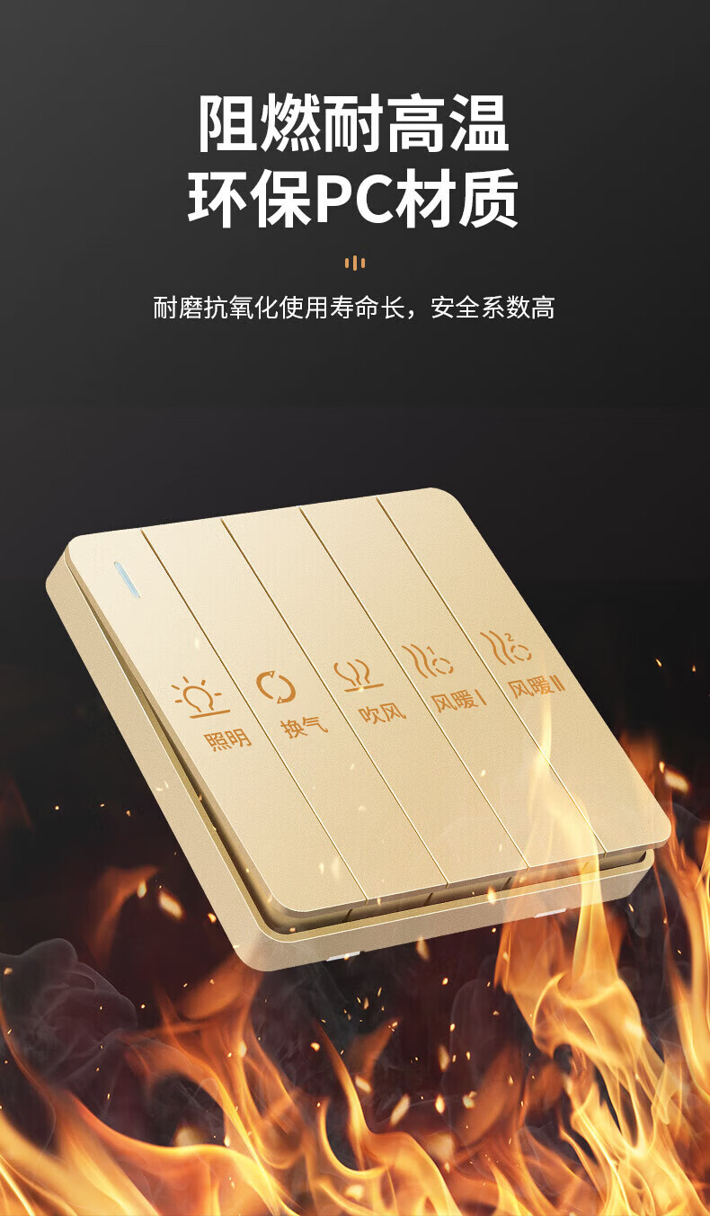 国际电工(FDD)超薄四合一浴霸开关家用浴室卫生间排气扇照明一体取暖暗装面板 雅白-琴键四开