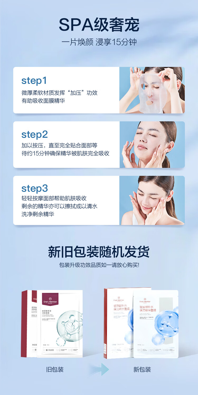 1号会员店(One's Member)玻尿酸补水面膜补水 保湿舒缓 1盒5片 百万销量