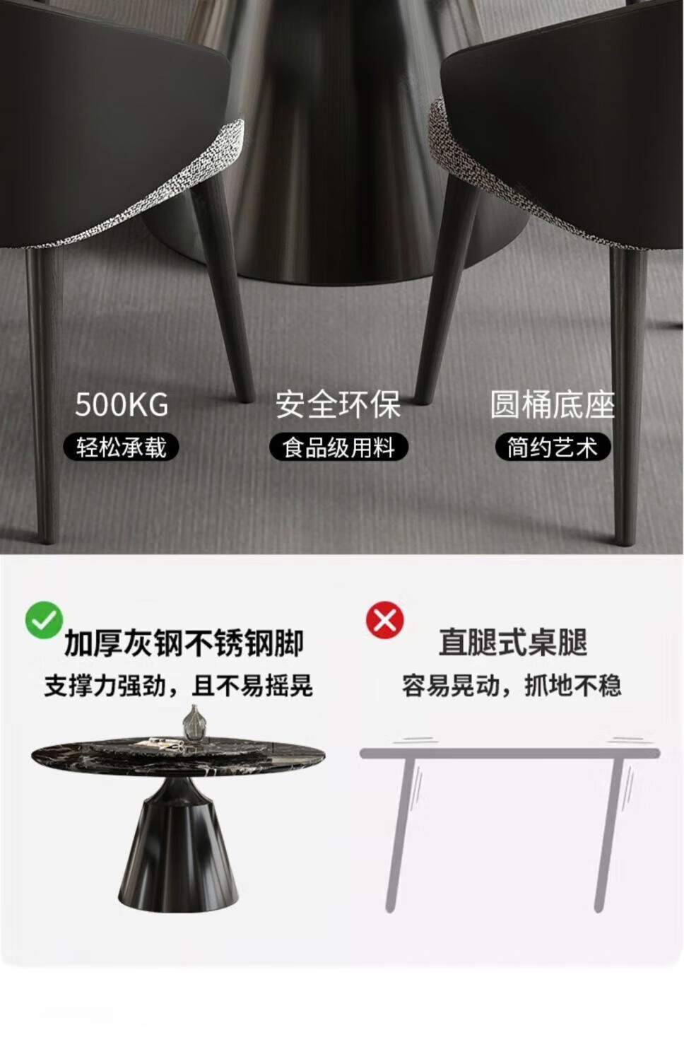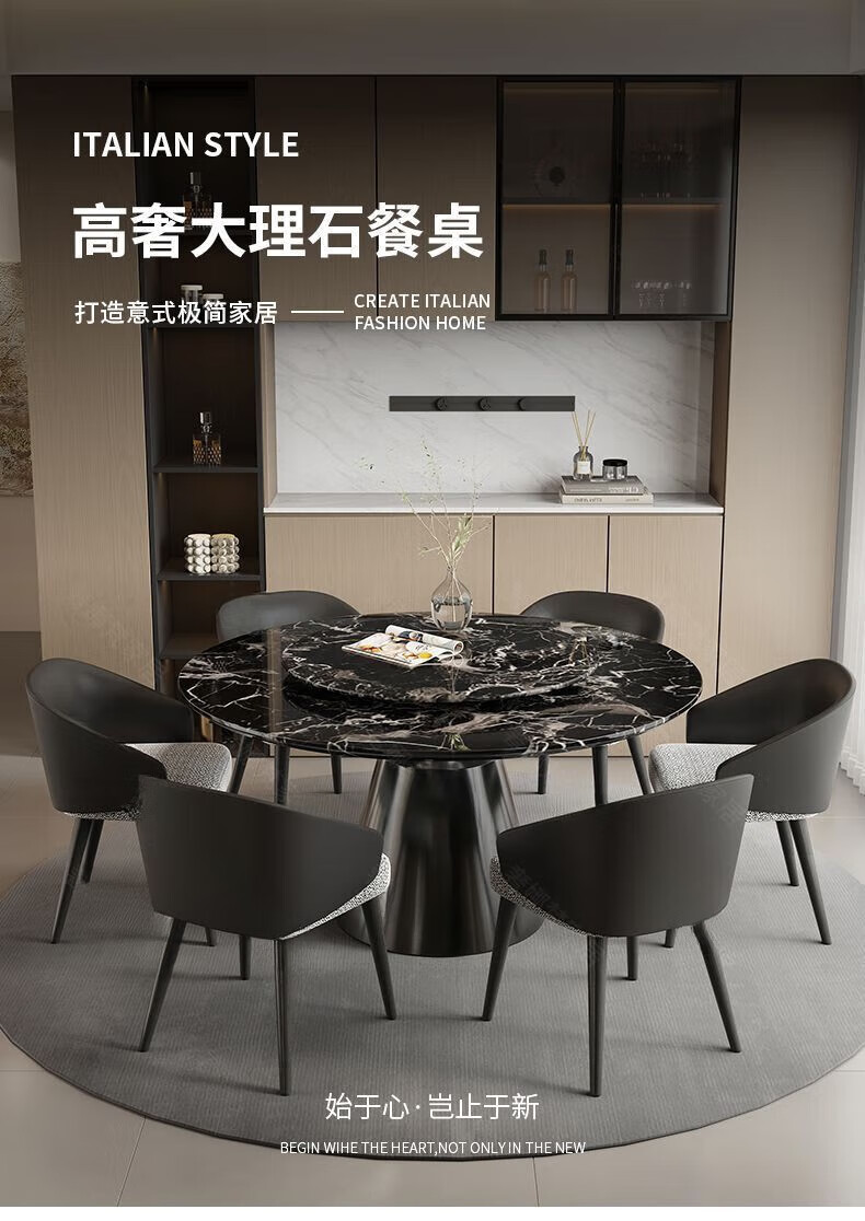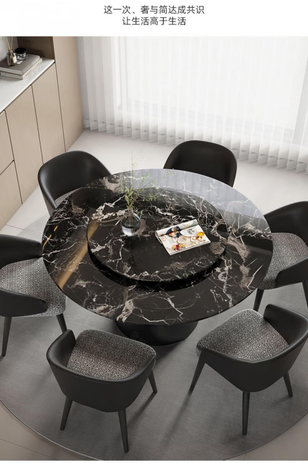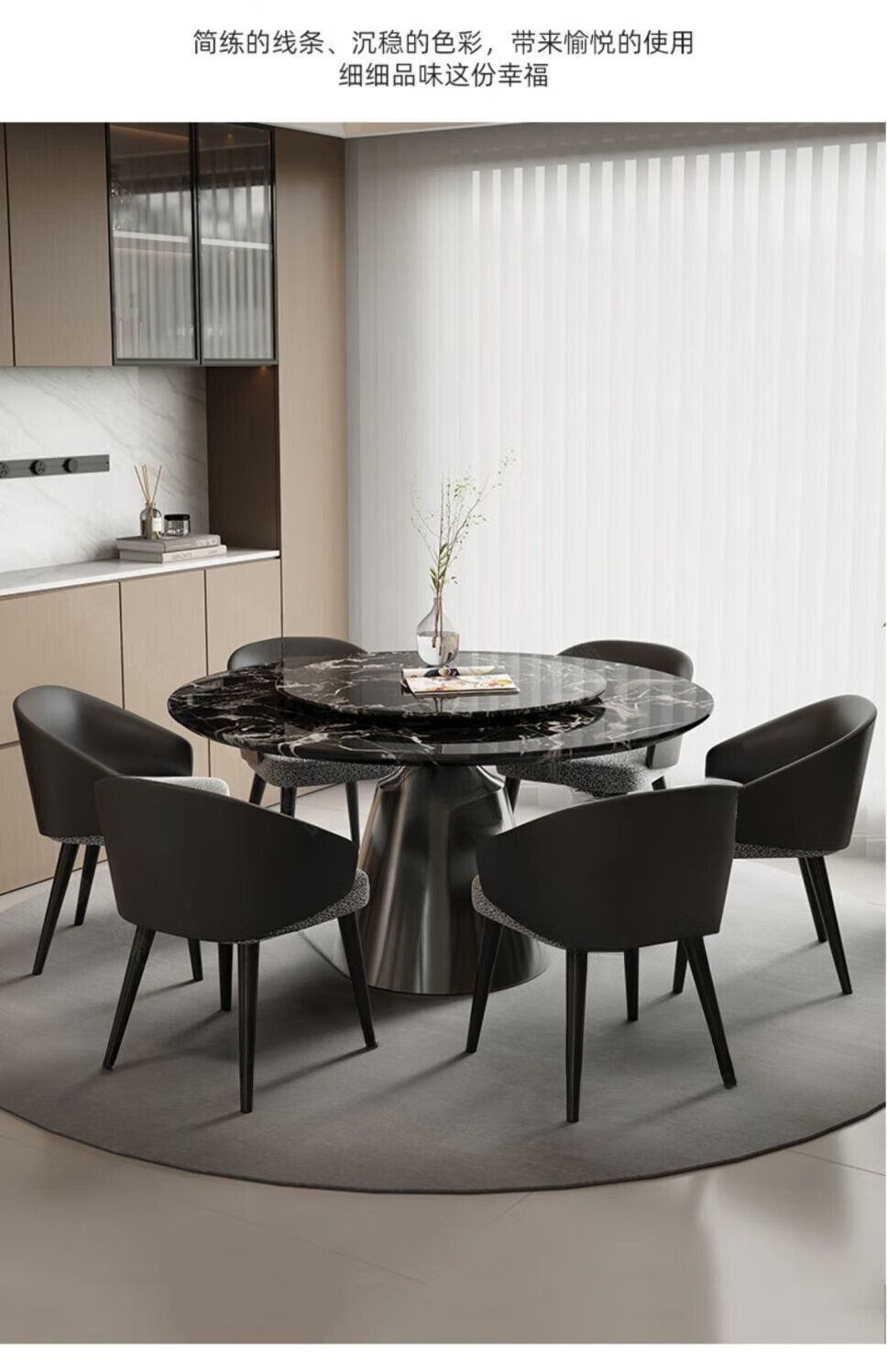 布欧格意式天然超晶石轻奢餐桌椅组合圆桌简约大理石餐桌家用饭桌带转盘 1.2米70CM转盘+4罗森椅