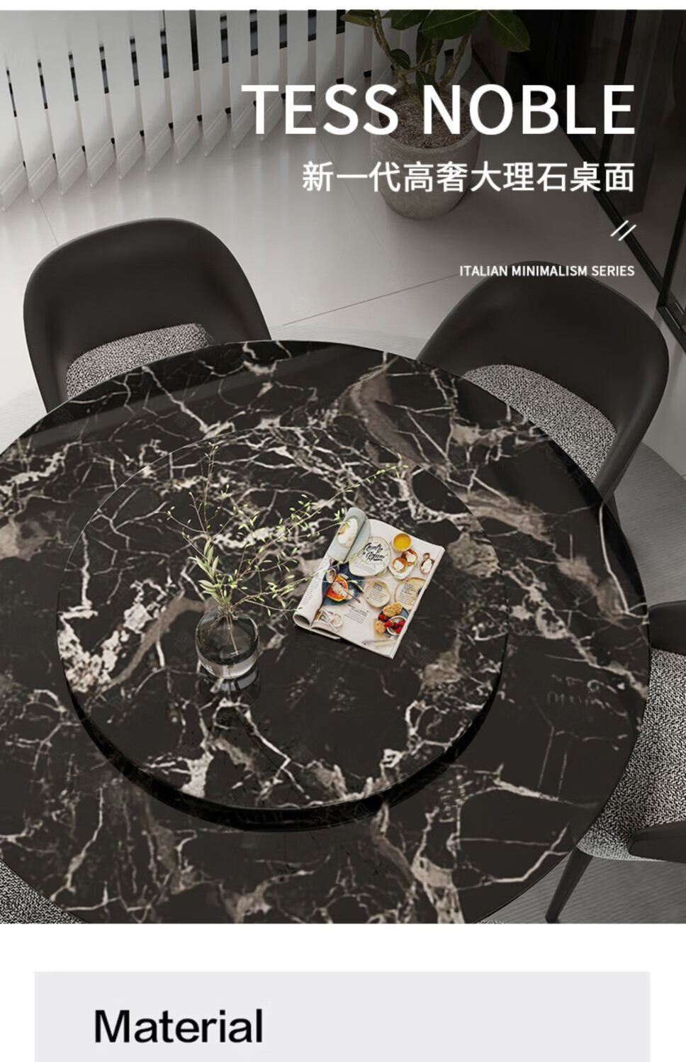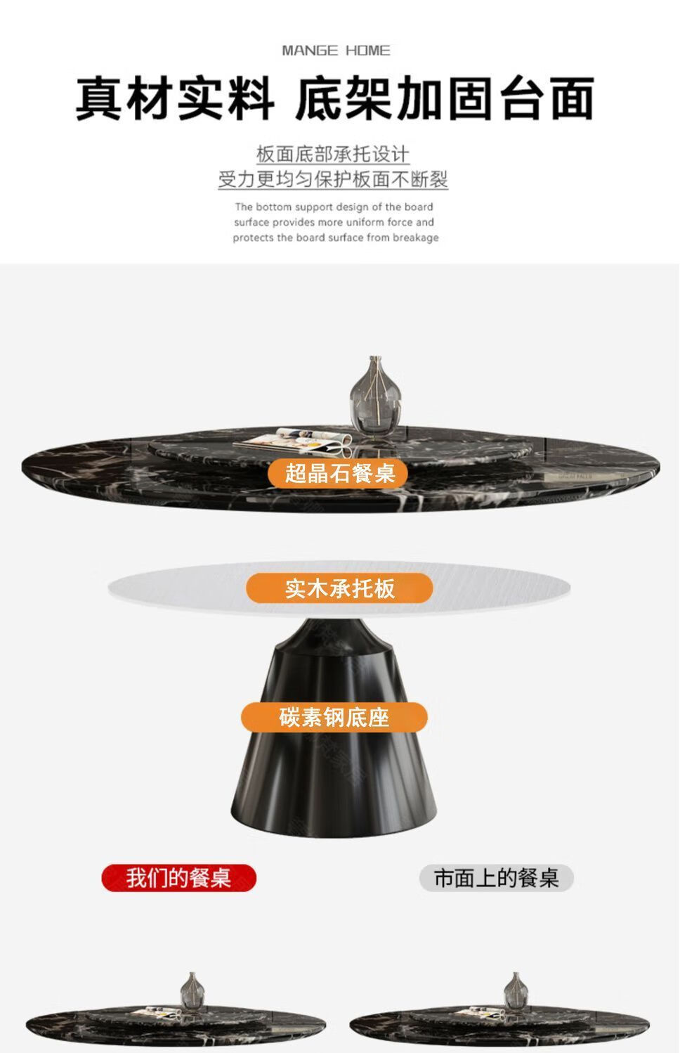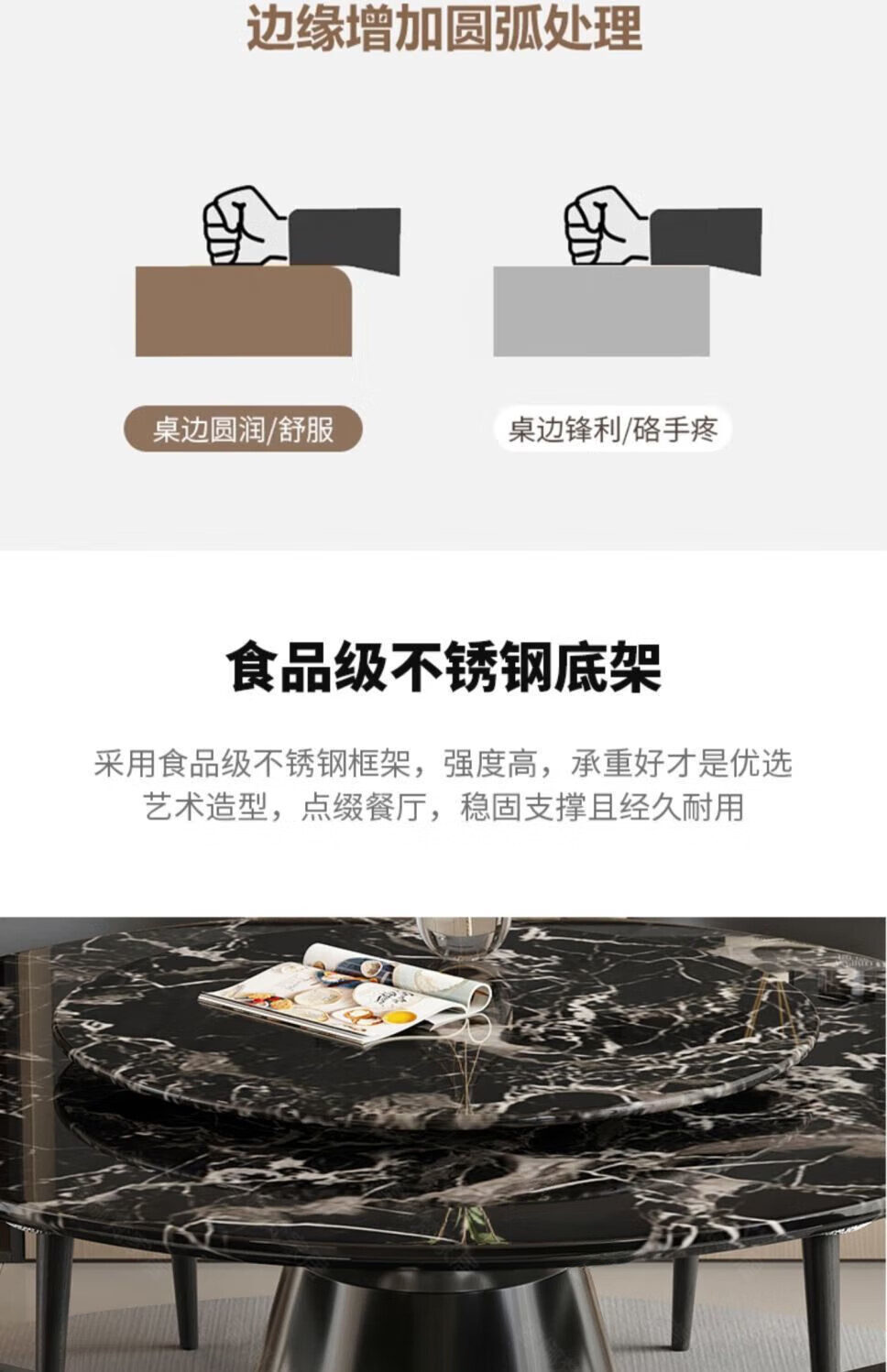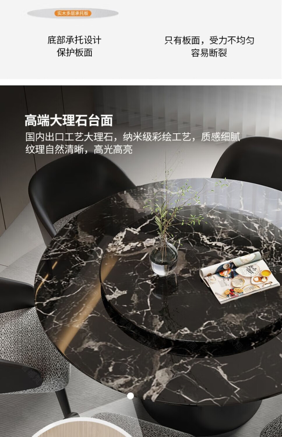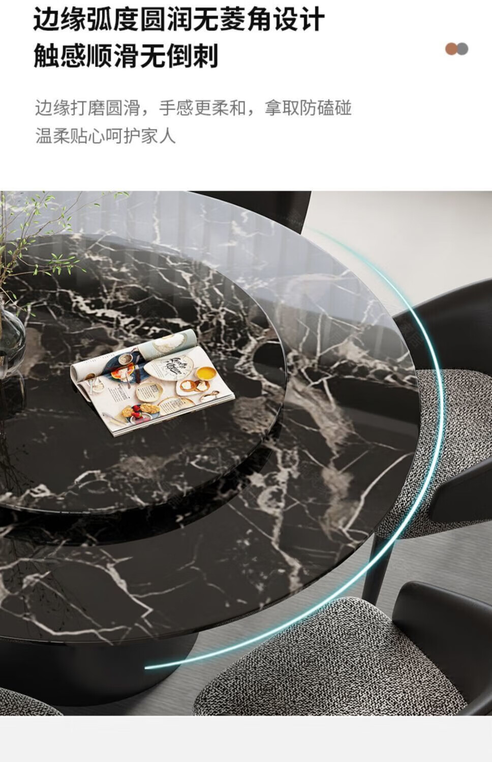 布欧格意式天然超晶石轻奢餐桌椅组合圆桌简约大理石餐桌家用饭桌带转盘 1.2米70CM转盘+4罗森椅