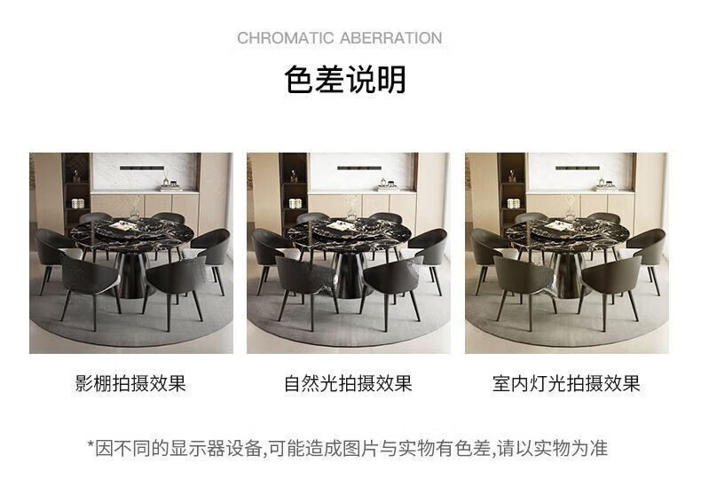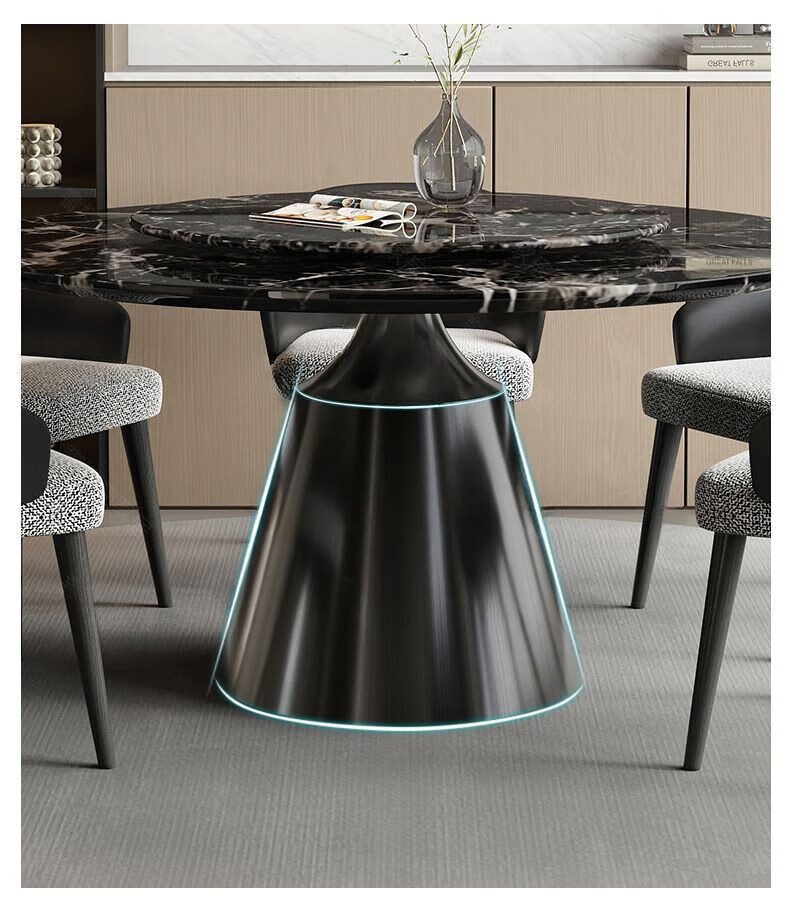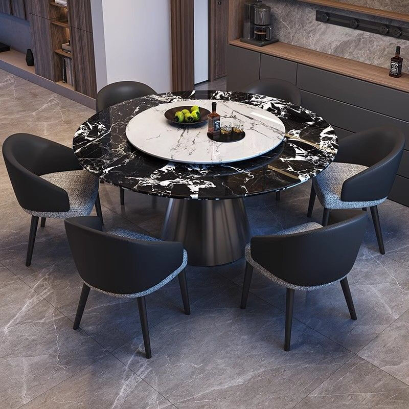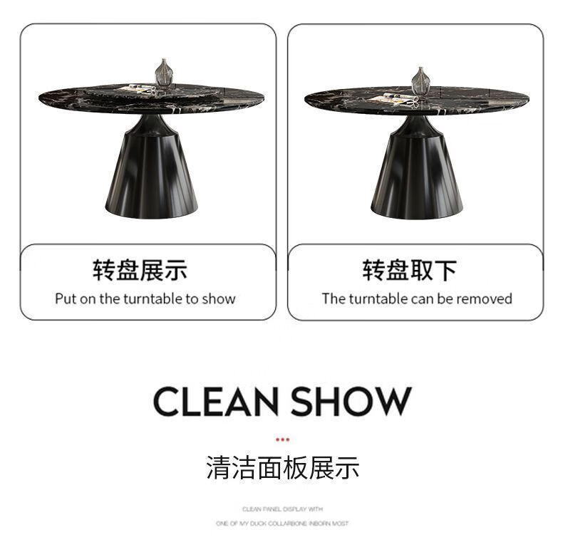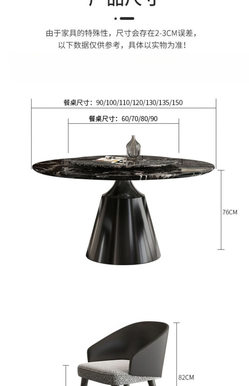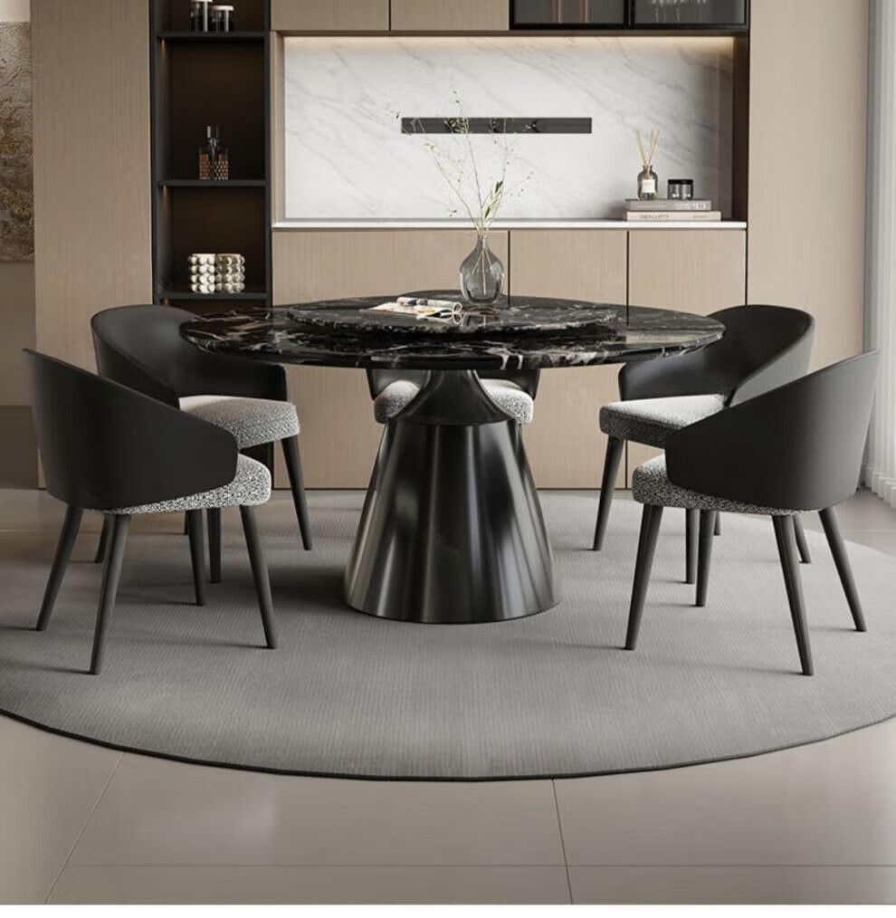 布欧格意式天然超晶石轻奢餐桌椅组合圆桌简约大理石餐桌家用饭桌带转盘 1.2米70CM转盘+4罗森椅