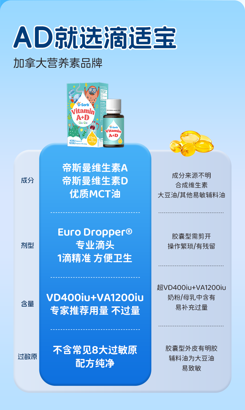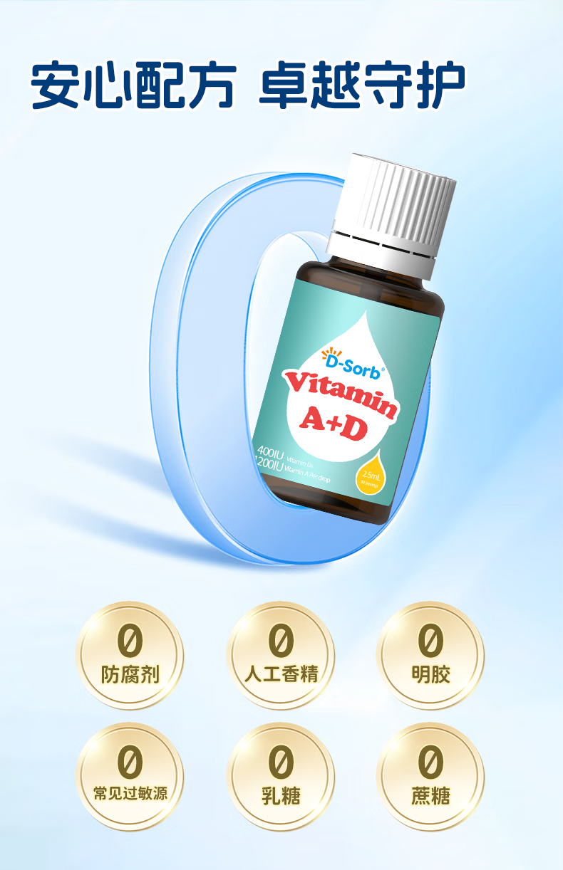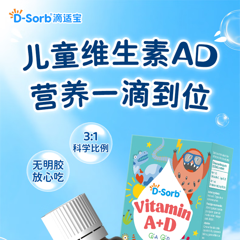 D-Sorb滴适宝维生素AD滴剂儿童维生素ad滴剂ADvd3滴剂加拿大原装进口 维生素AD滴剂1瓶装 2.5ml*1瓶